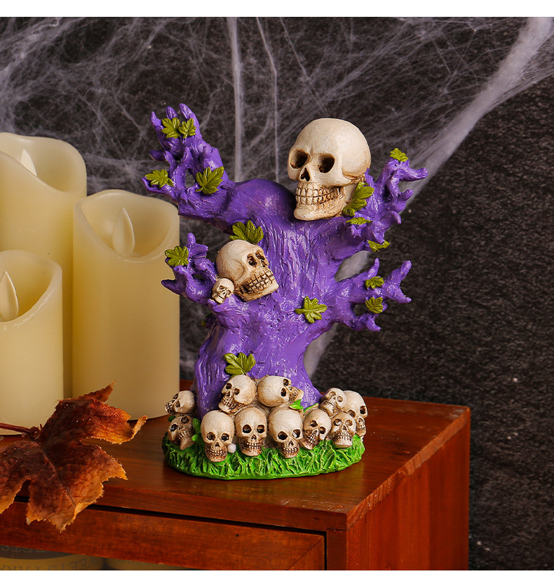 跨境万圣节树精绿南瓜怪摆件桌面派对搞怪头骨树恐怖氛围布置装饰