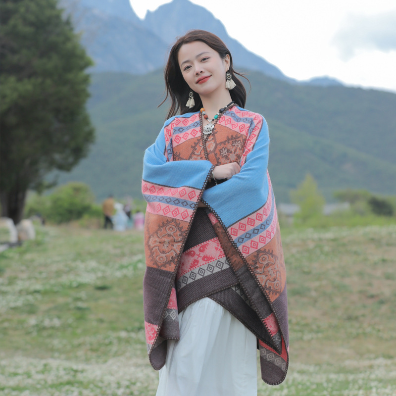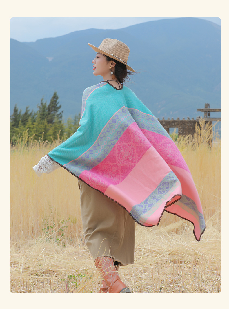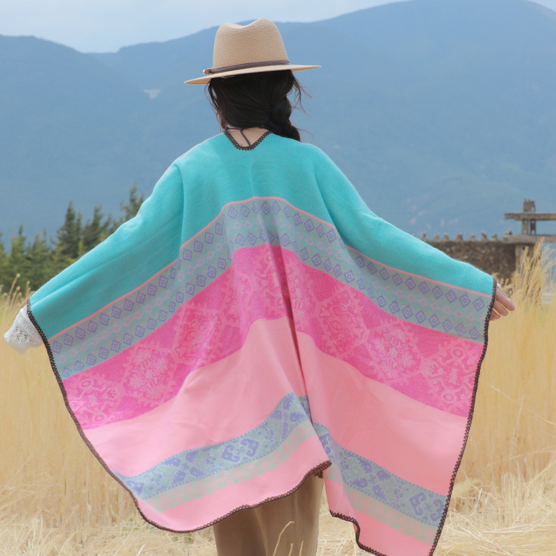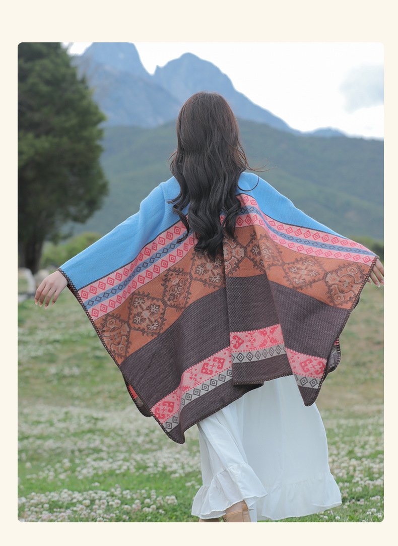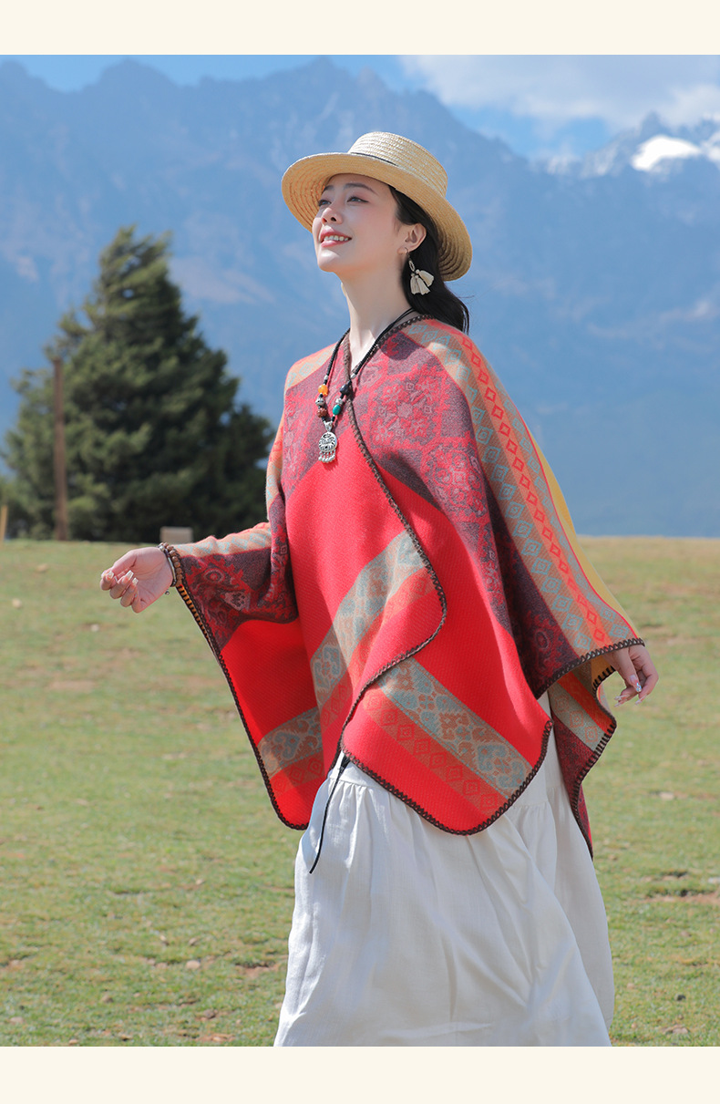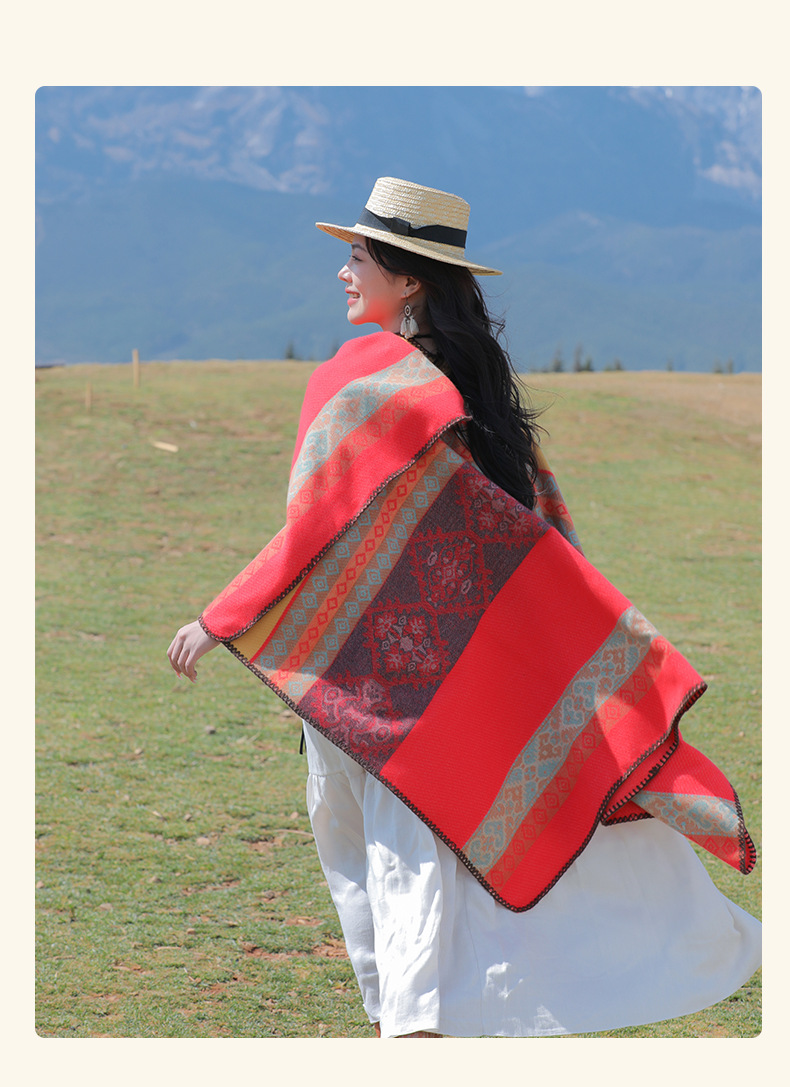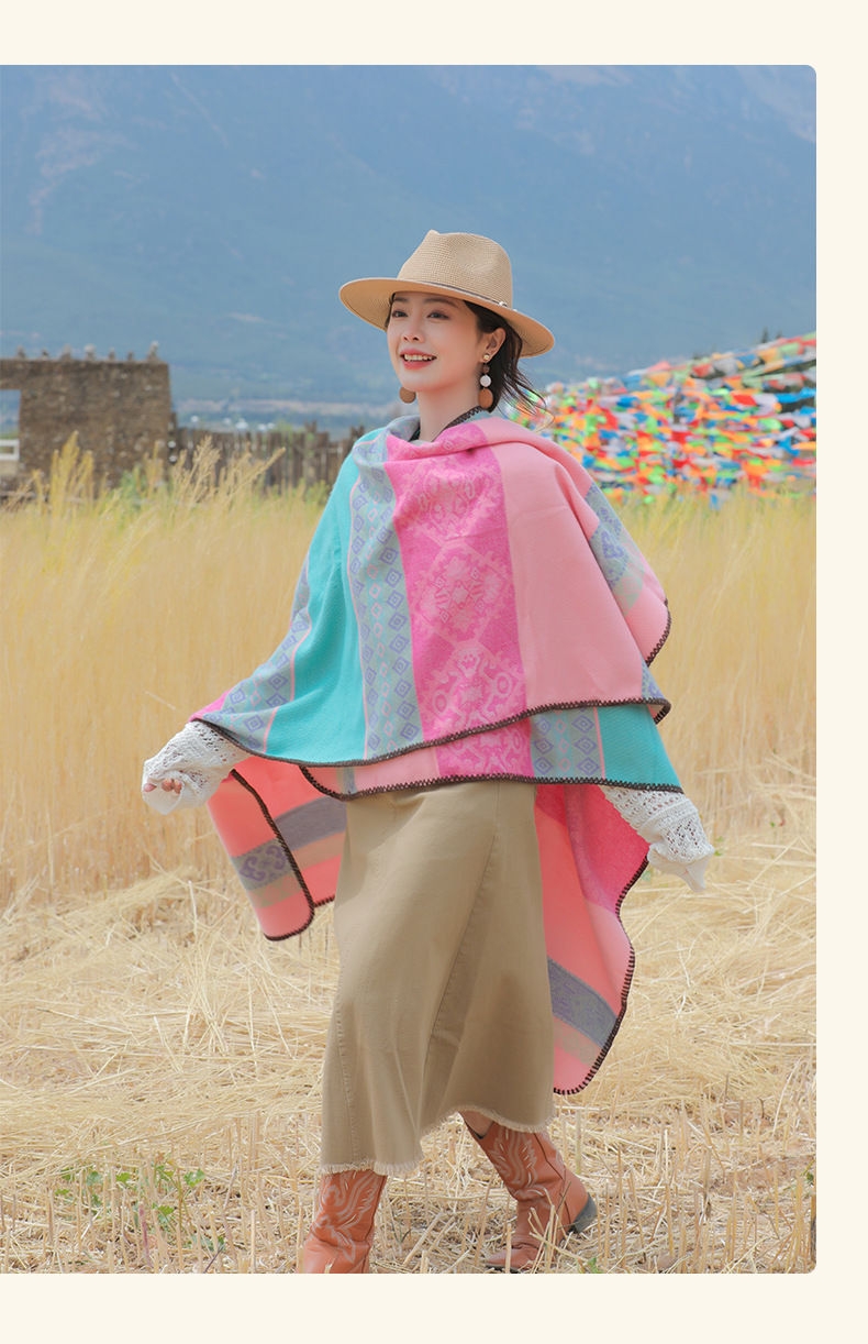 条纹保暖披肩披风尼泊尔新疆西藏沙漠斗篷拍照加厚秋冬围巾 English | 投诉