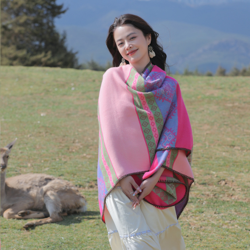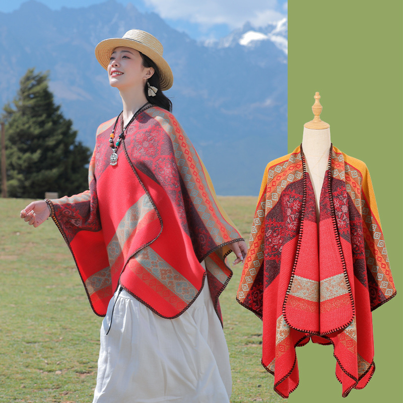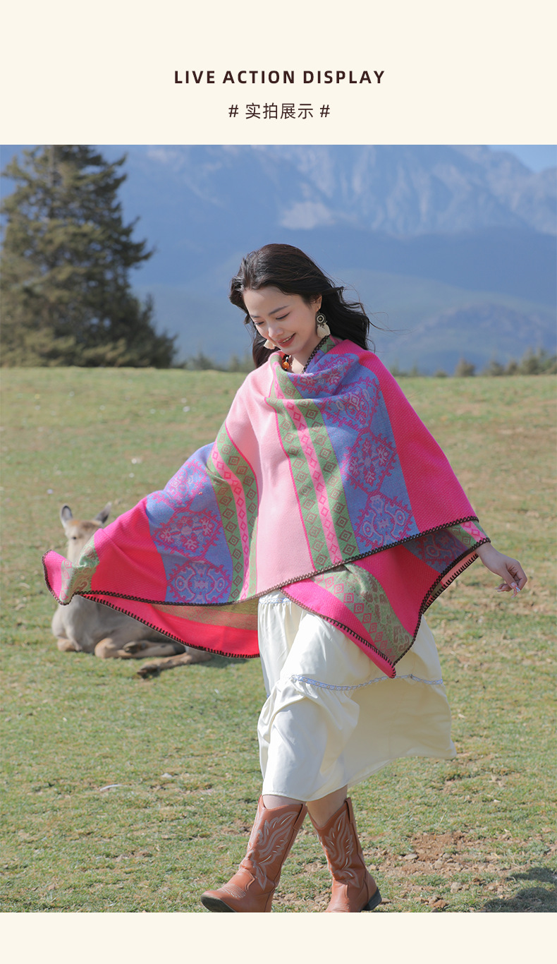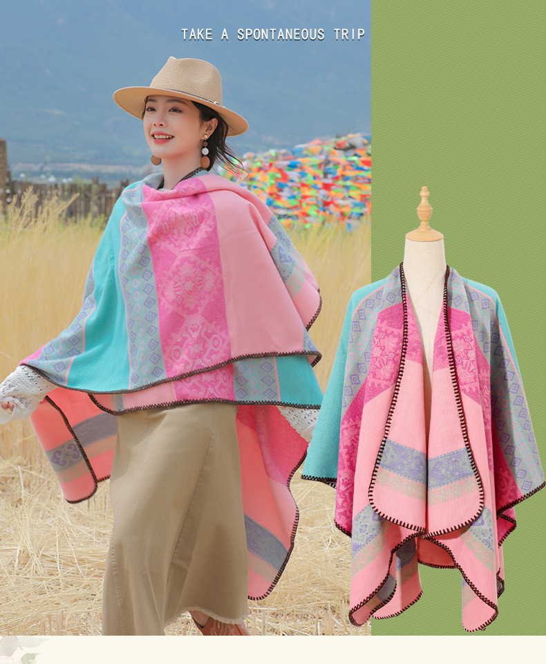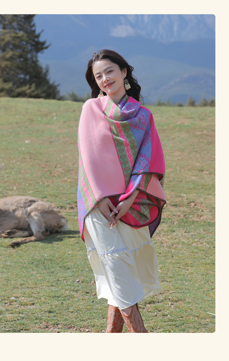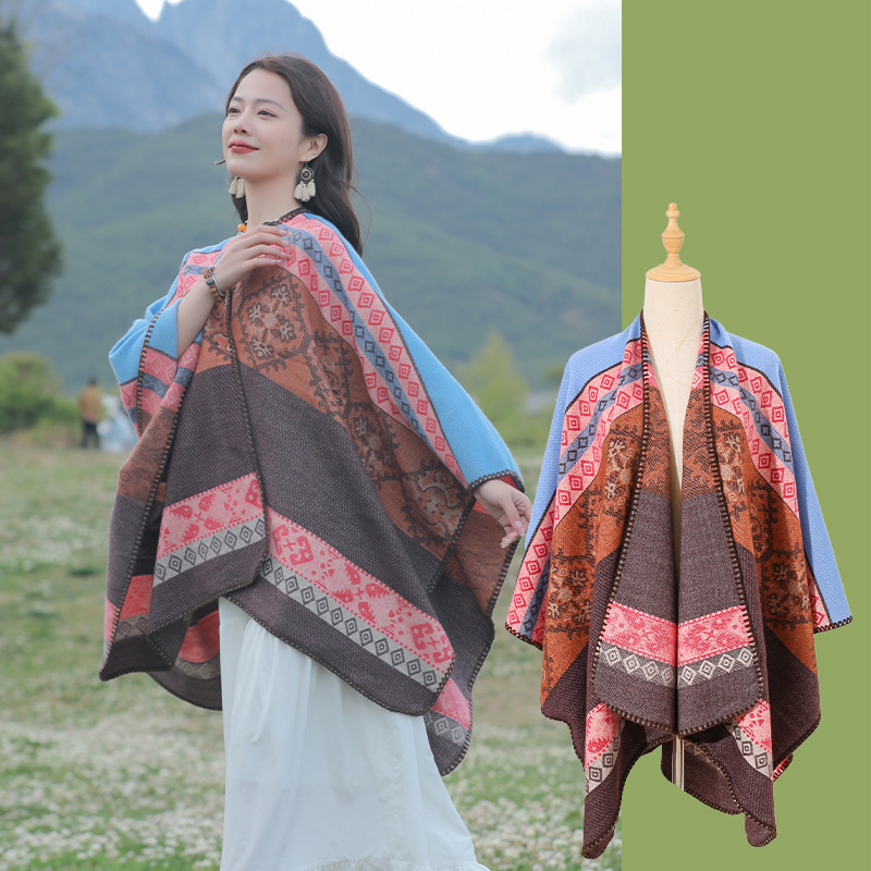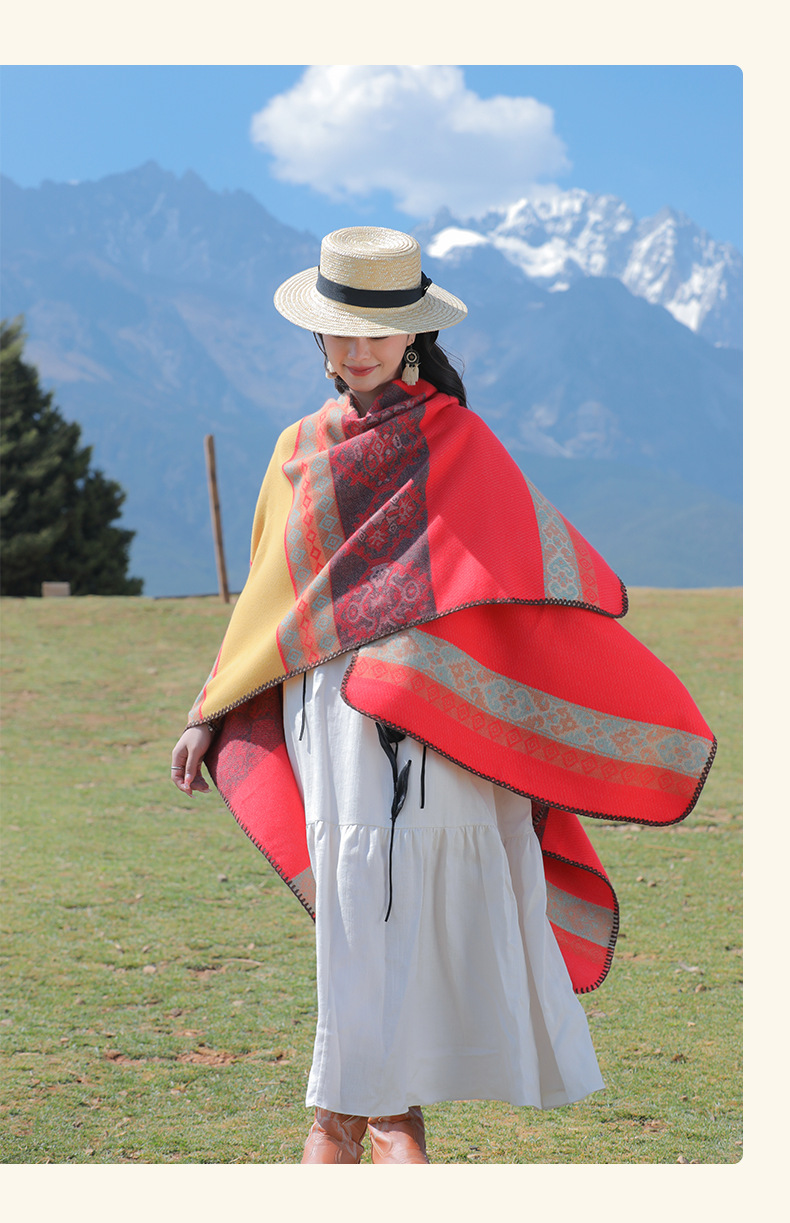 条纹保暖披肩披风尼泊尔新疆西藏沙漠斗篷拍照加厚秋冬围巾 English | 投诉
