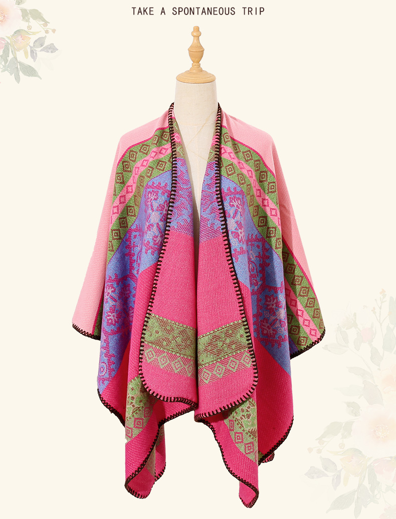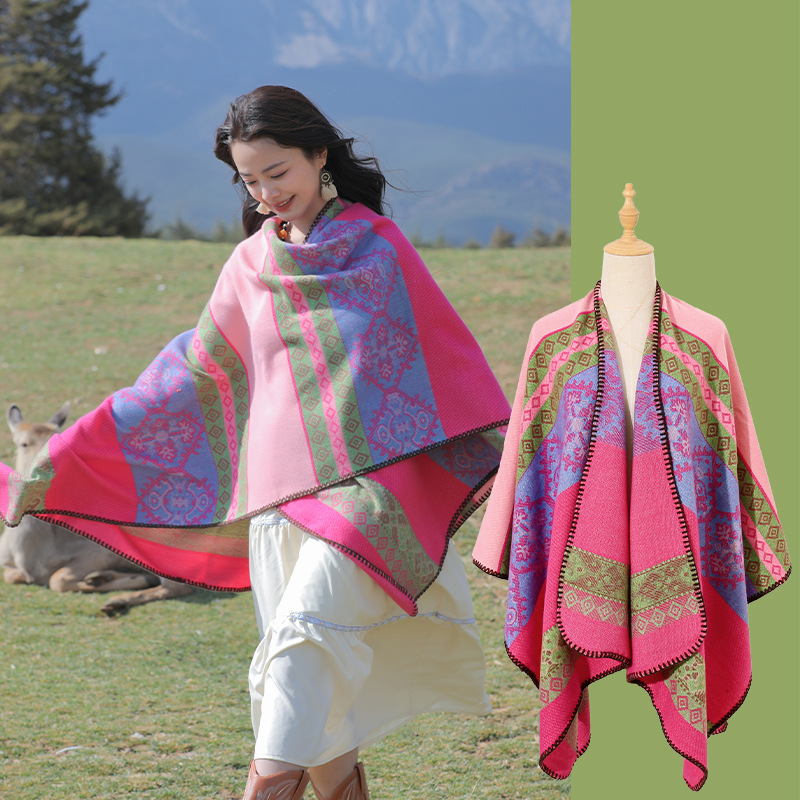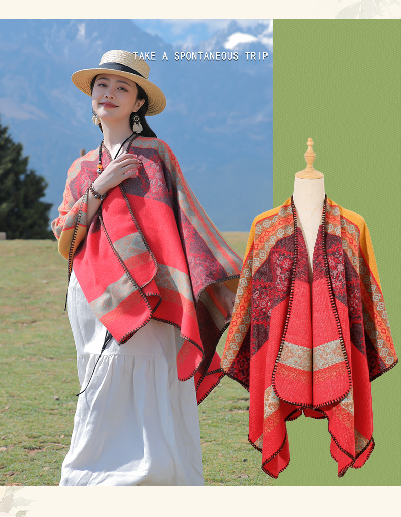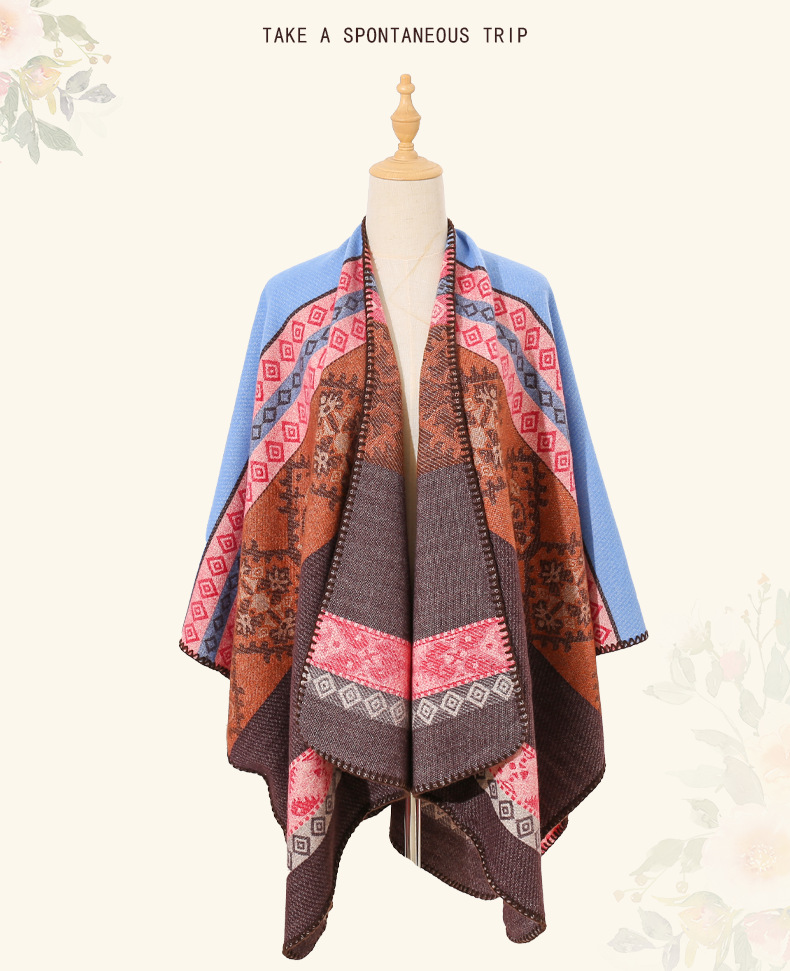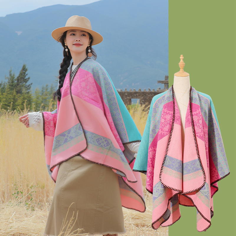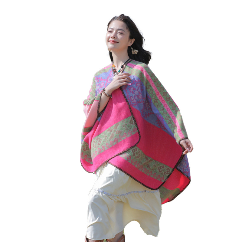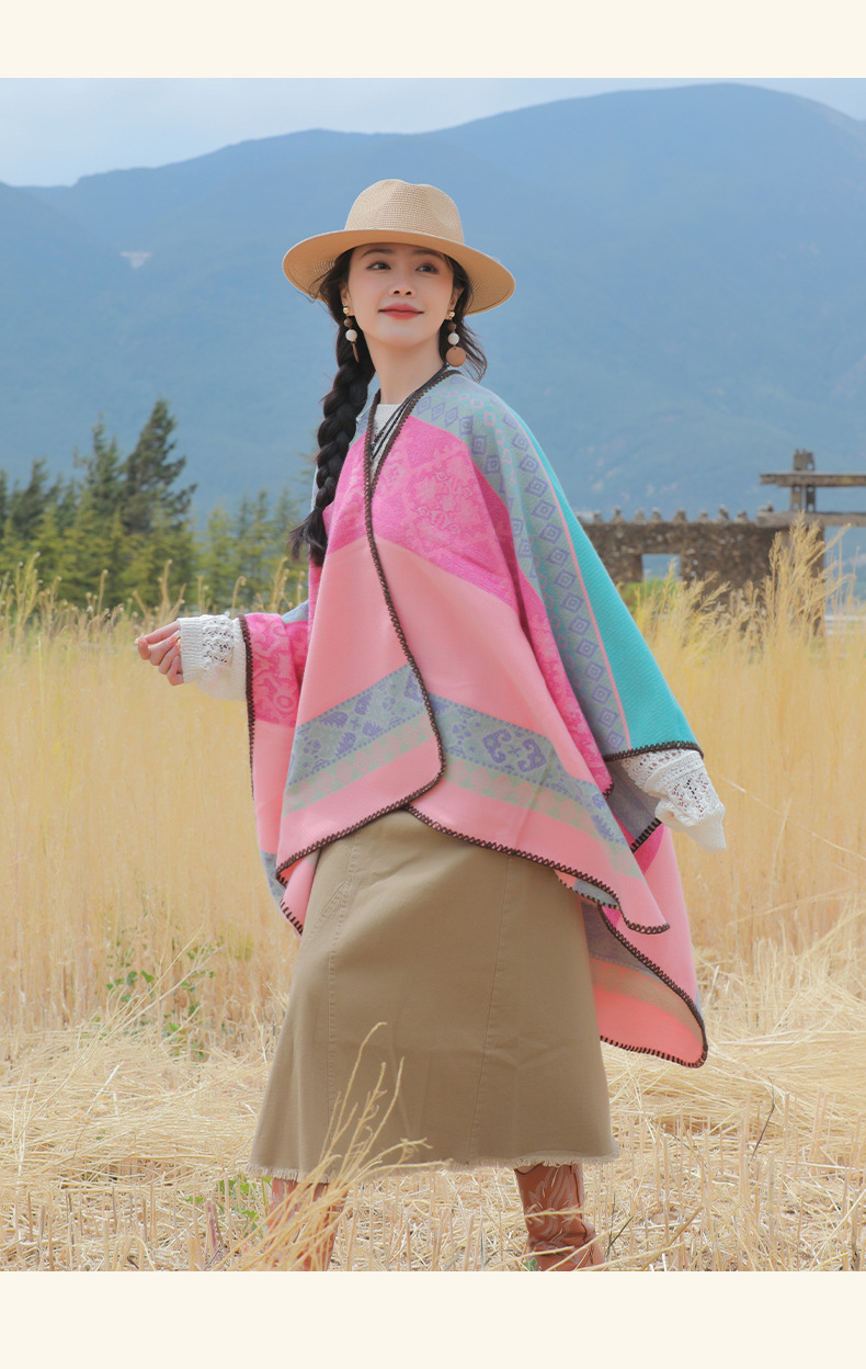 条纹保暖披肩披风尼泊尔新疆西藏沙漠斗篷拍照加厚秋冬围巾 English | 投诉