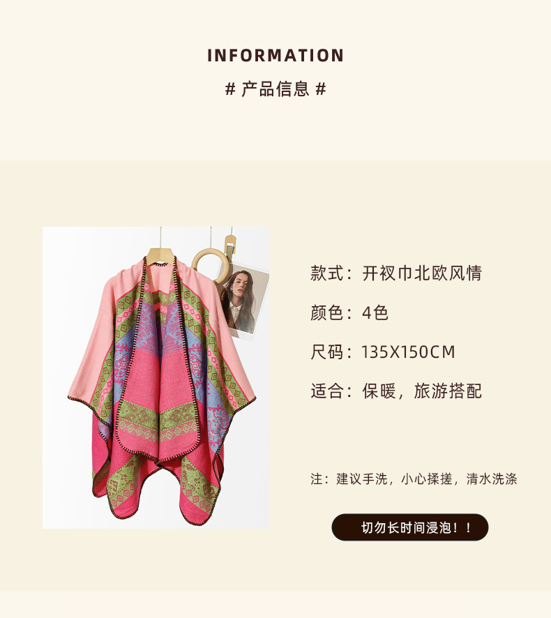 适用性别: 女 货源类别: 现货 材质: 仿羊绒 适合季节: 夏季,冬季,春季,秋季 品牌: 冬情丝语 颜色: 粉色,粉紫色,红色,咖色 风格: 复古民族 长度(CM): 130*150CM 产地: 浙江 货号: 开叉巾北欧风情 重量: 0.48 kg/条