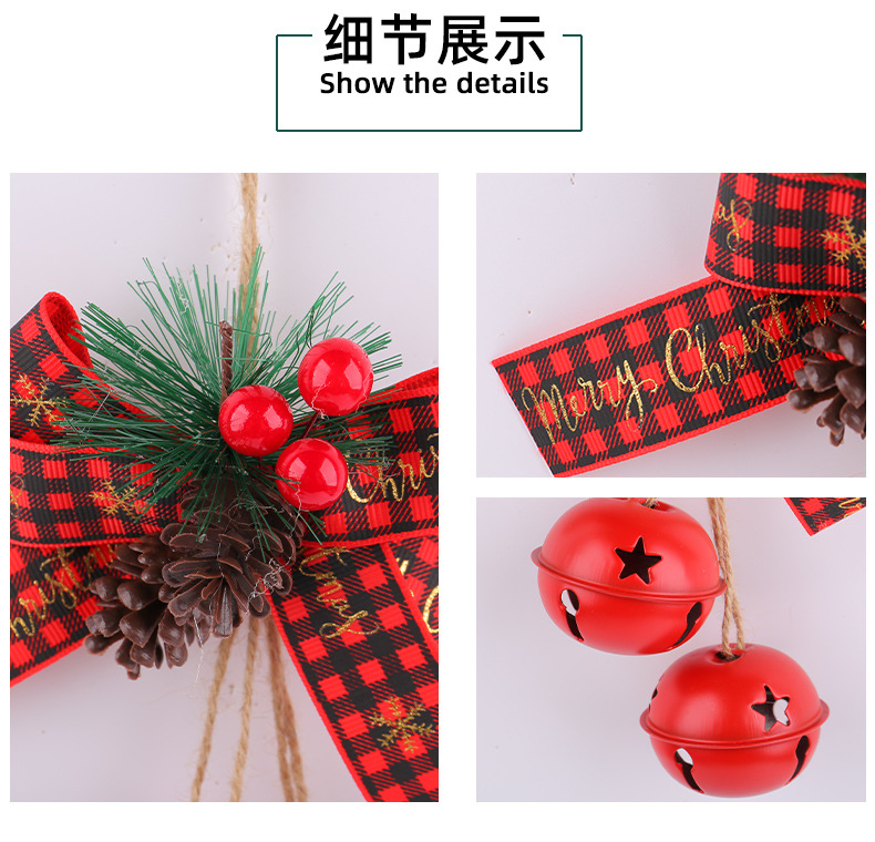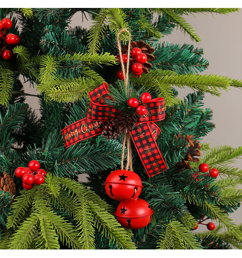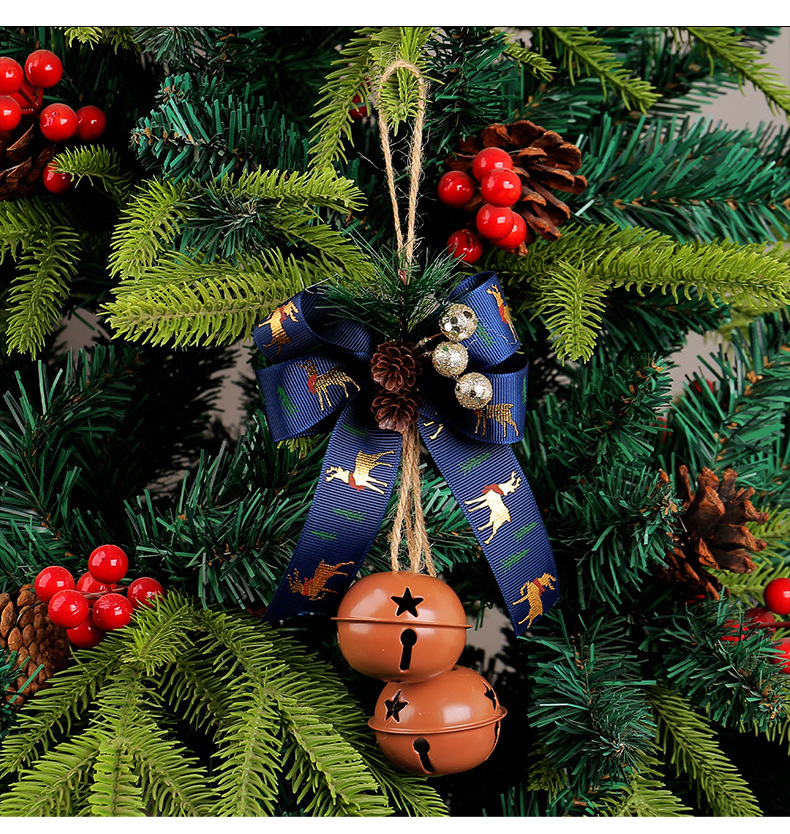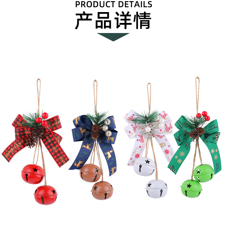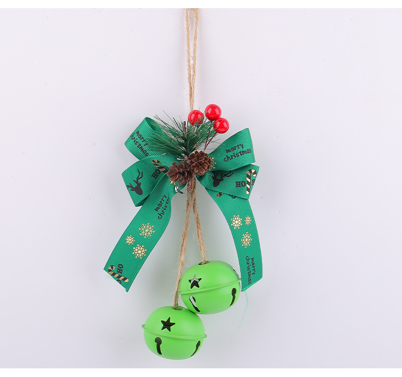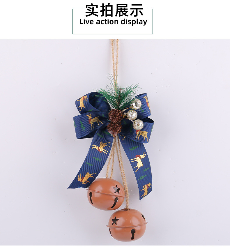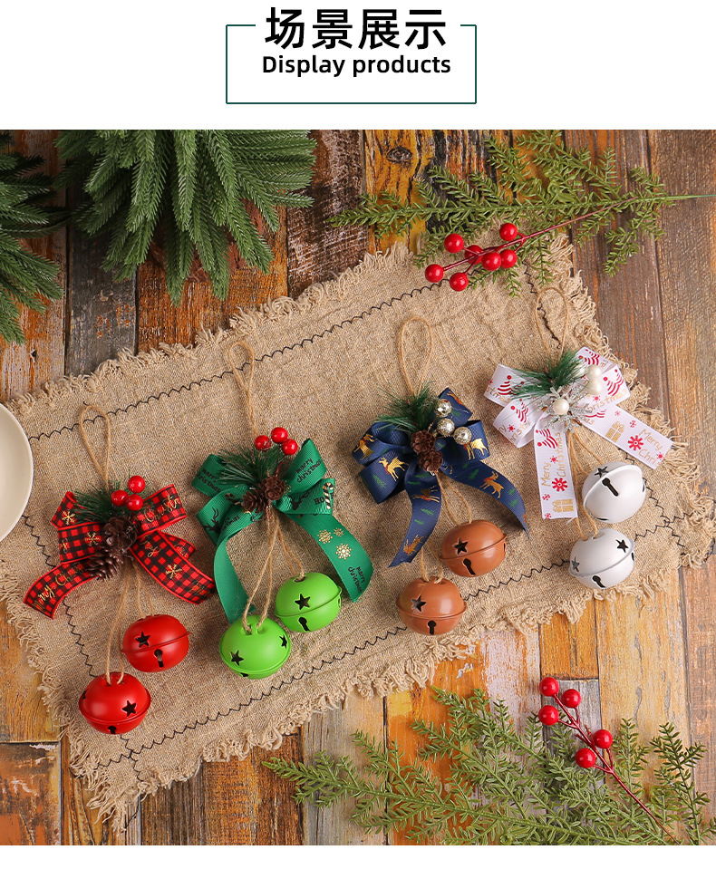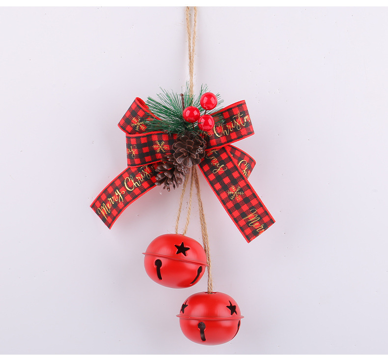 新品圣诞节蝴蝶结铁艺铃铛装饰 家居麻绳浆果圣诞铃铛圣诞树挂件