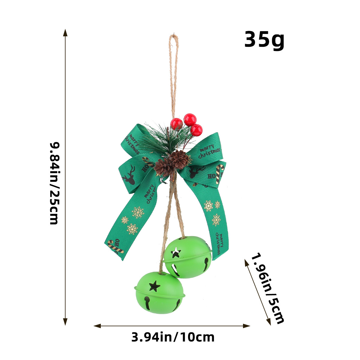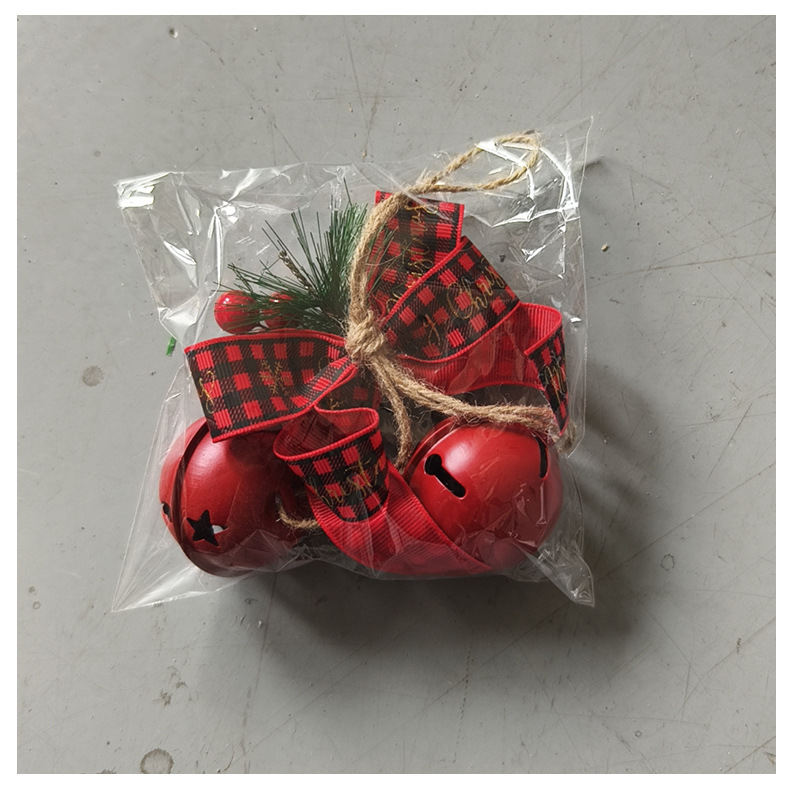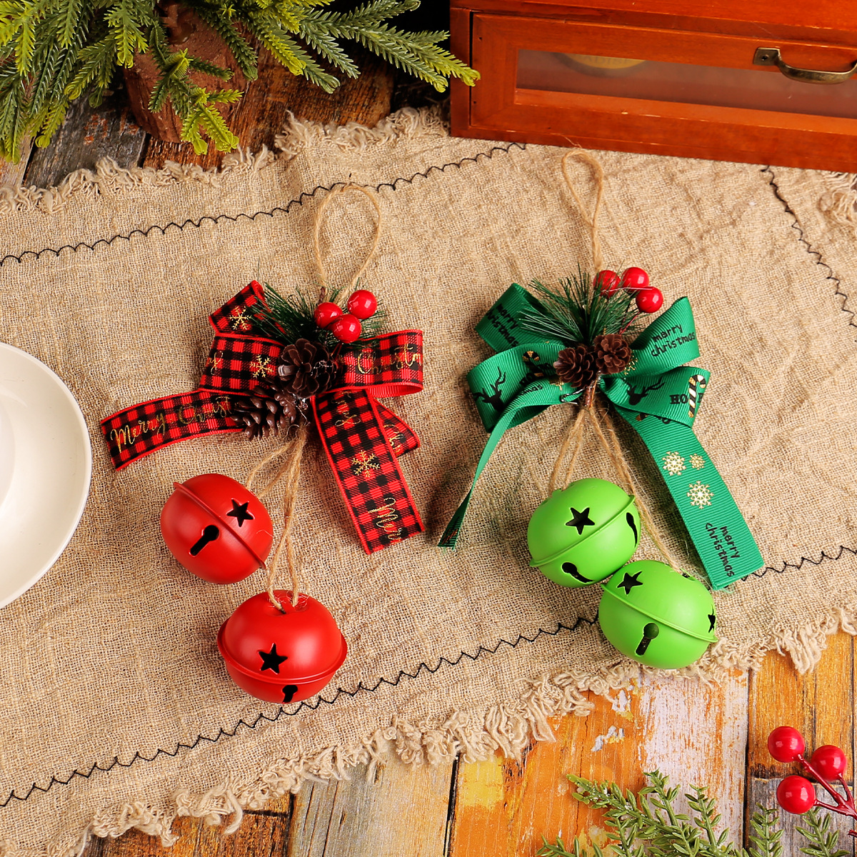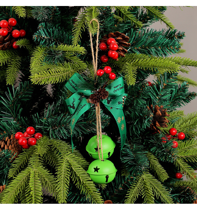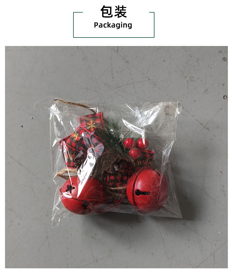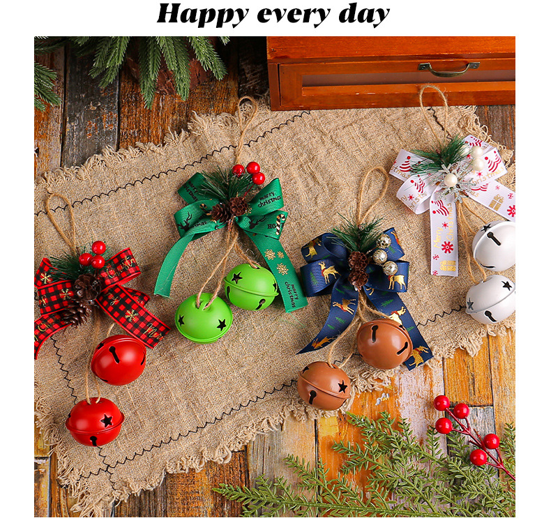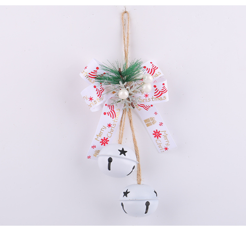 新品圣诞节蝴蝶结铁艺铃铛装饰 家居麻绳浆果圣诞铃铛圣诞树挂件