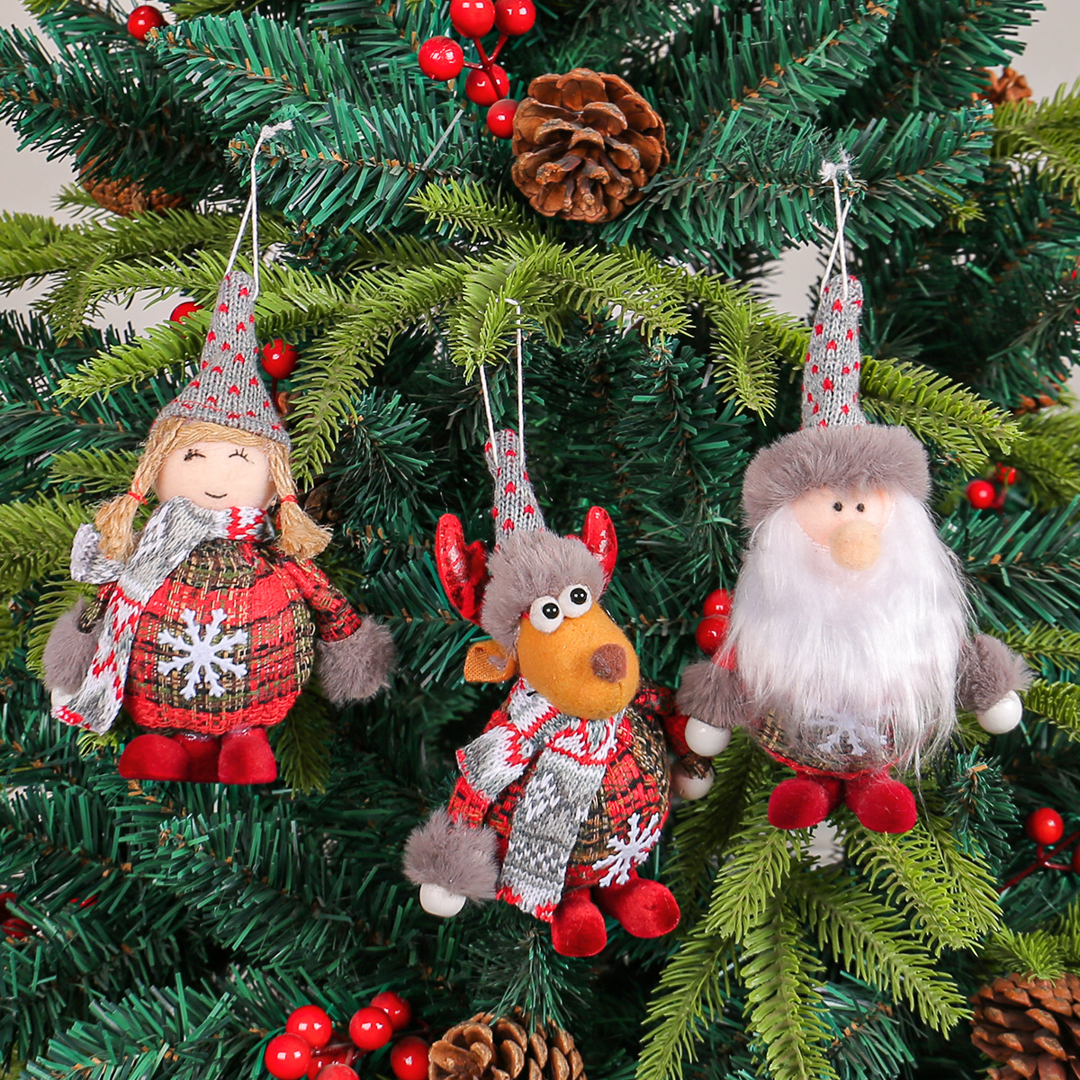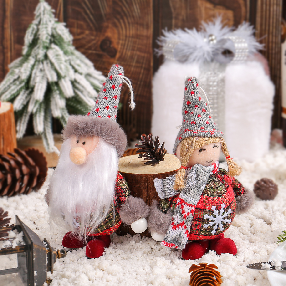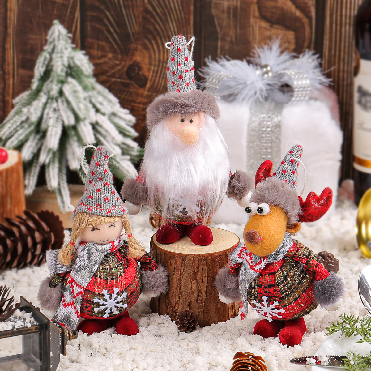 新品圣诞老人麋鹿公仔站姿装饰品 节日圣诞树侏儒女孩娃娃小挂件