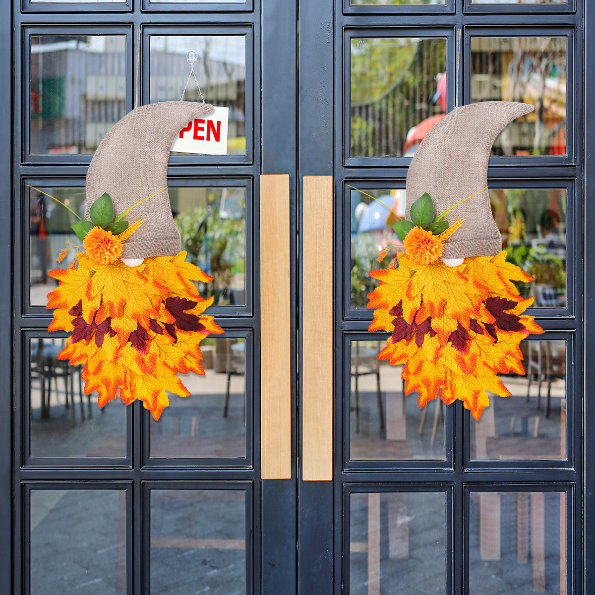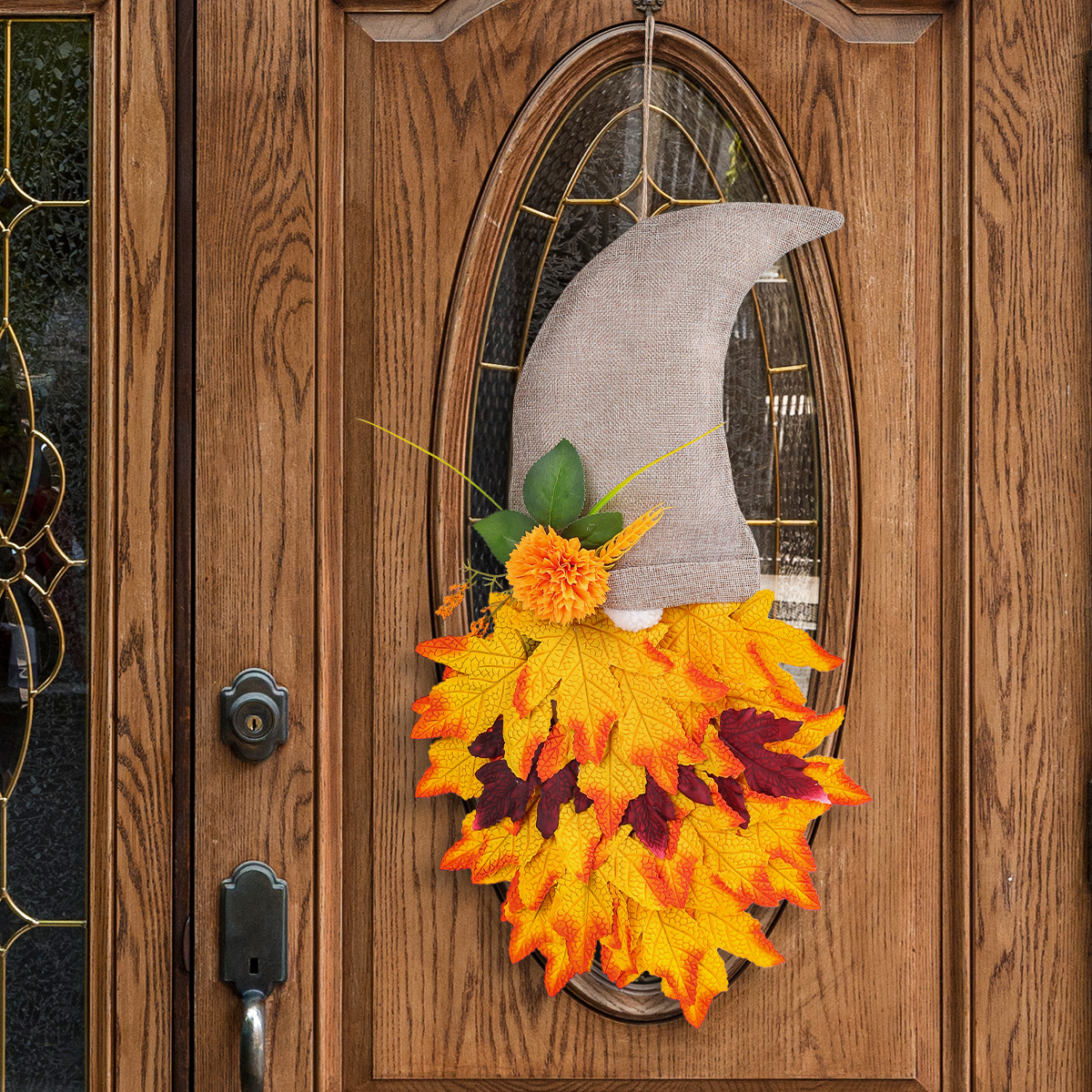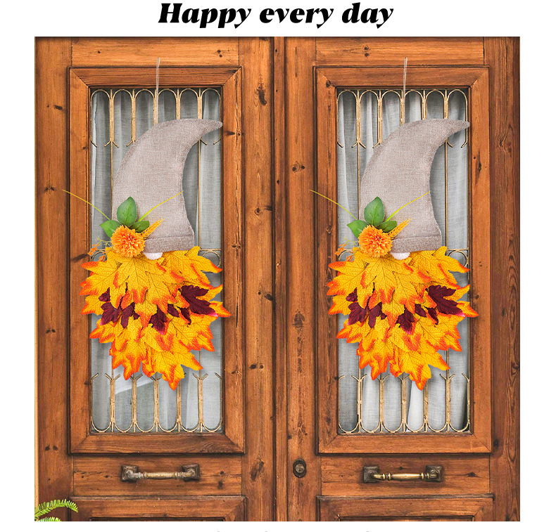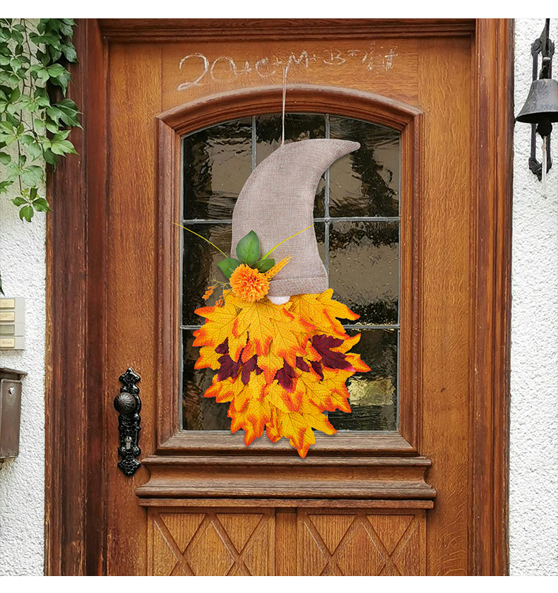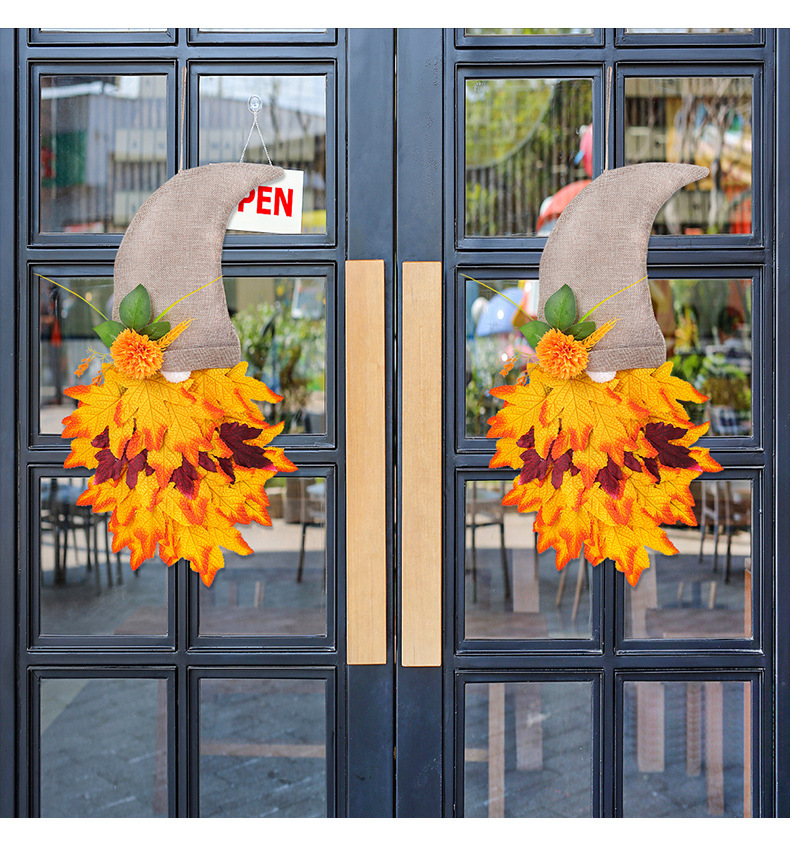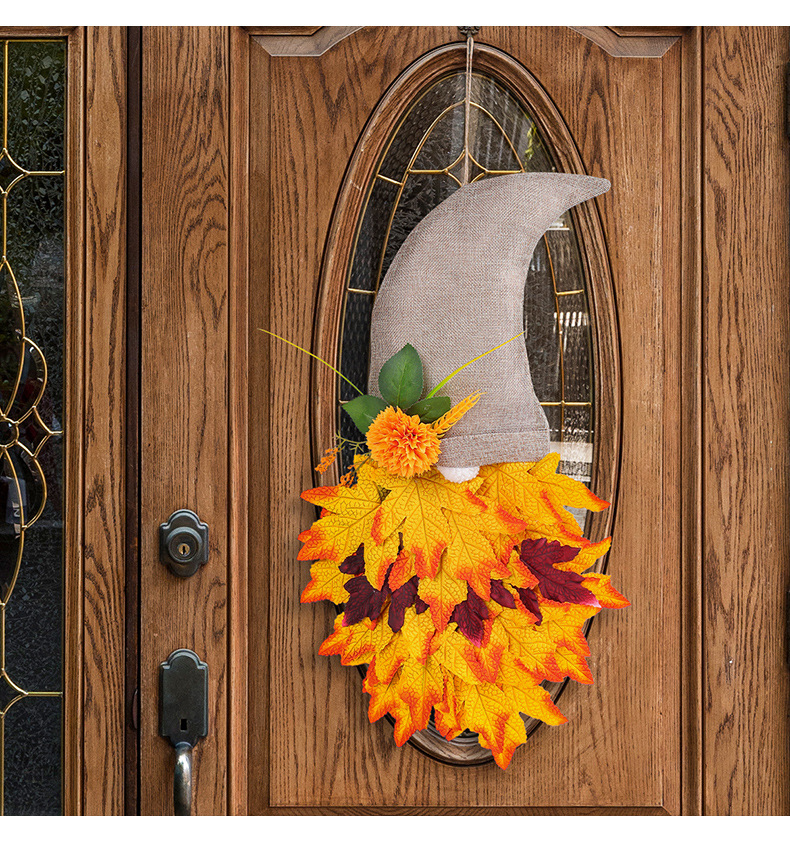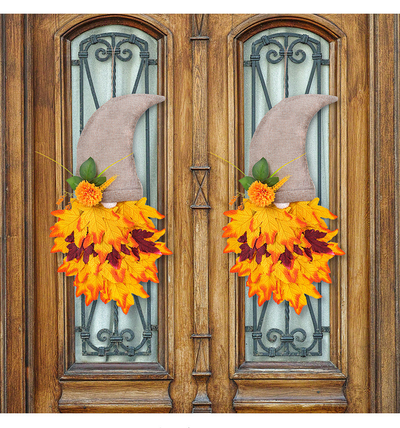 跨境秋季侏儒帽子装饰花环丰收节枫叶无脸老人倒挂感恩节布置道具