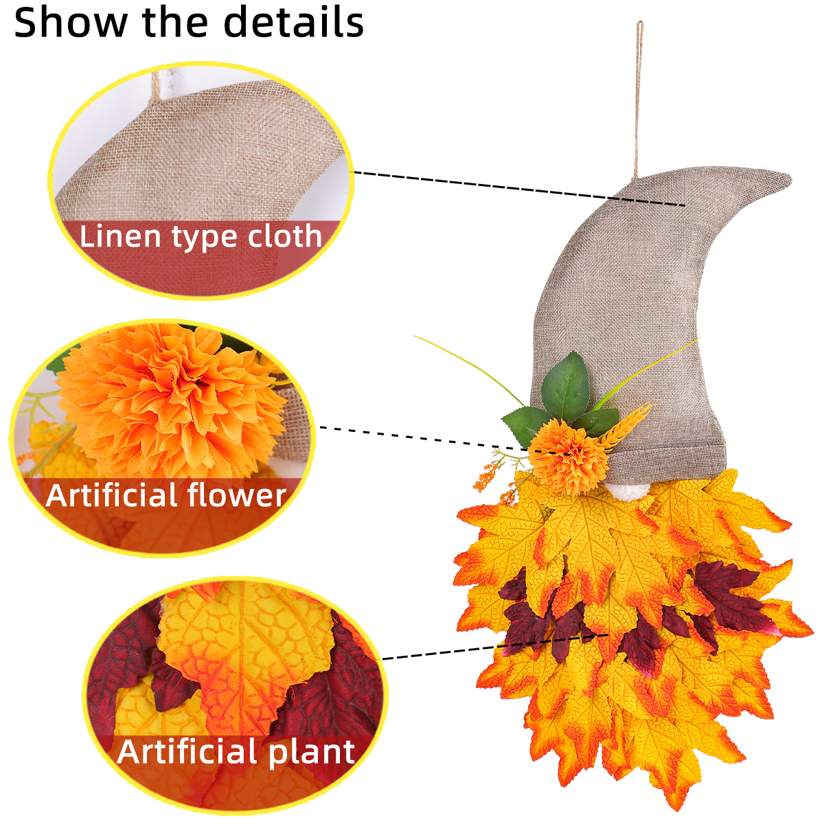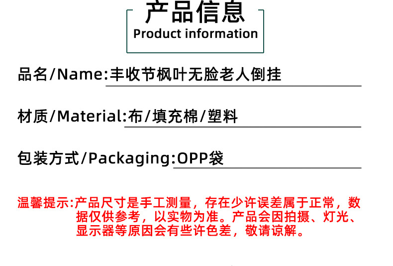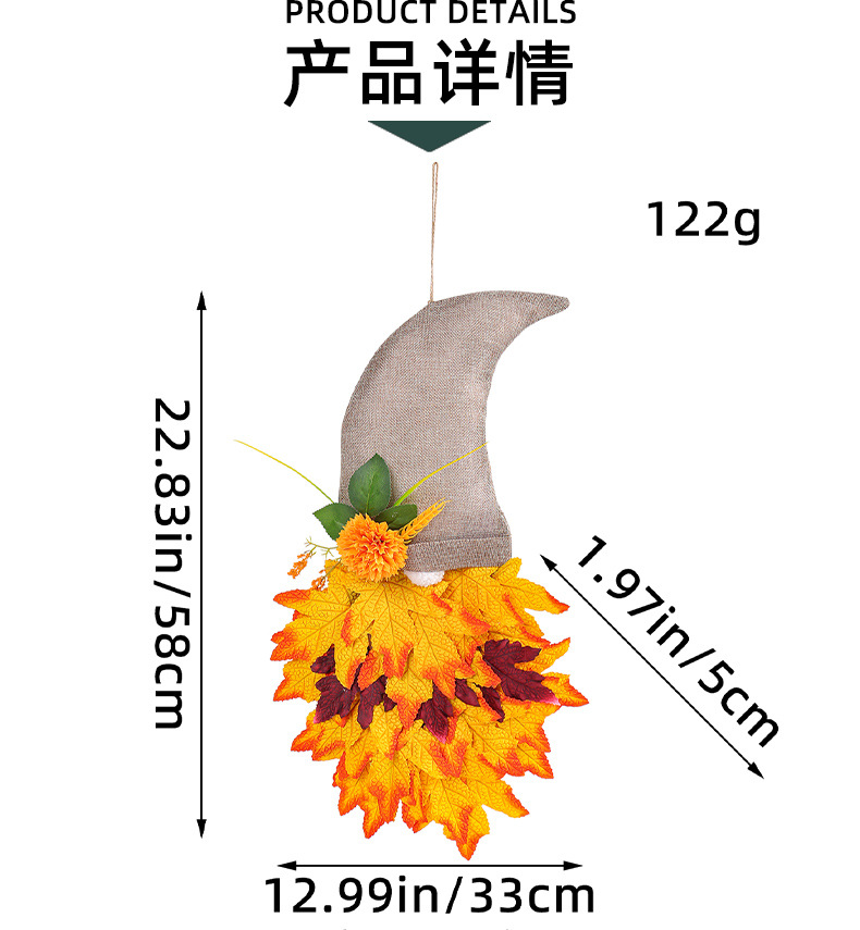 跨境秋季侏儒帽子装饰花环丰收节枫叶无脸老人倒挂感恩节布置道具 投诉