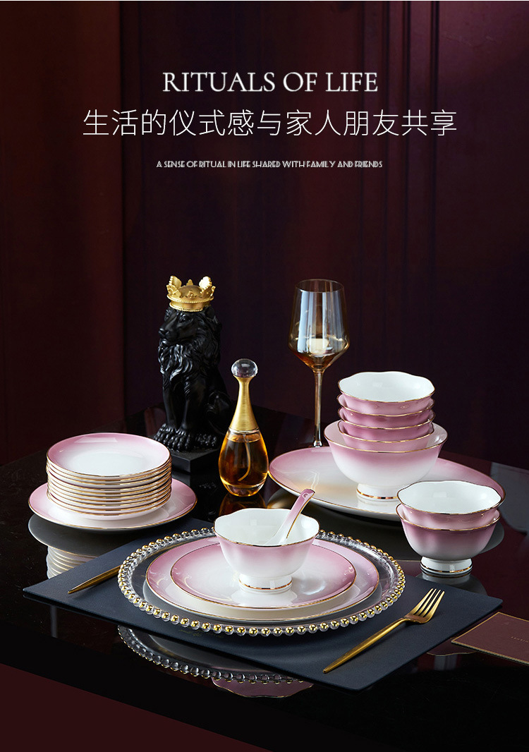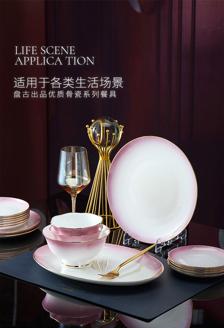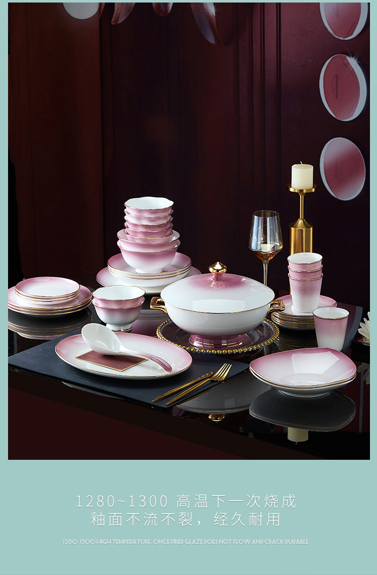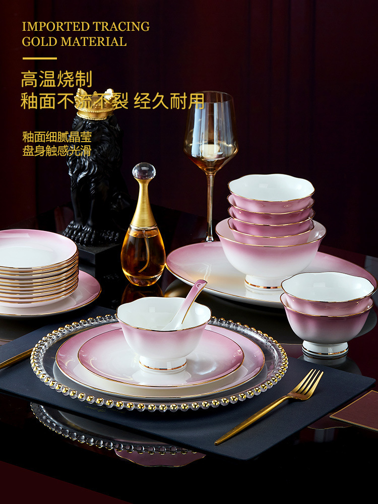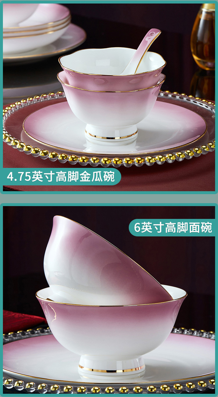 高级骨瓷餐具套装碗盘家用组合 景德镇骨瓷奢华乔迁结婚碗筷套装 English | 投诉