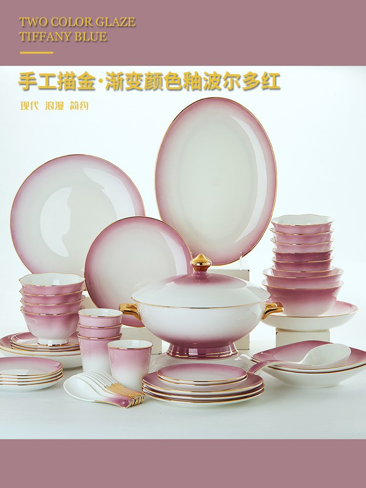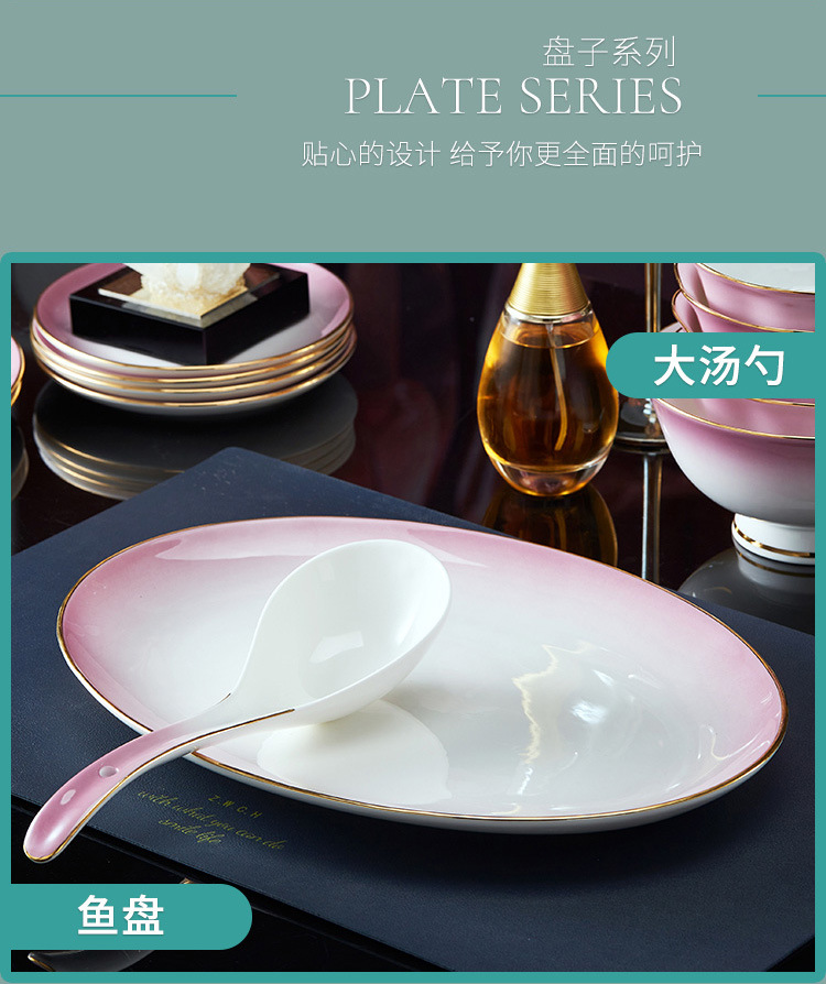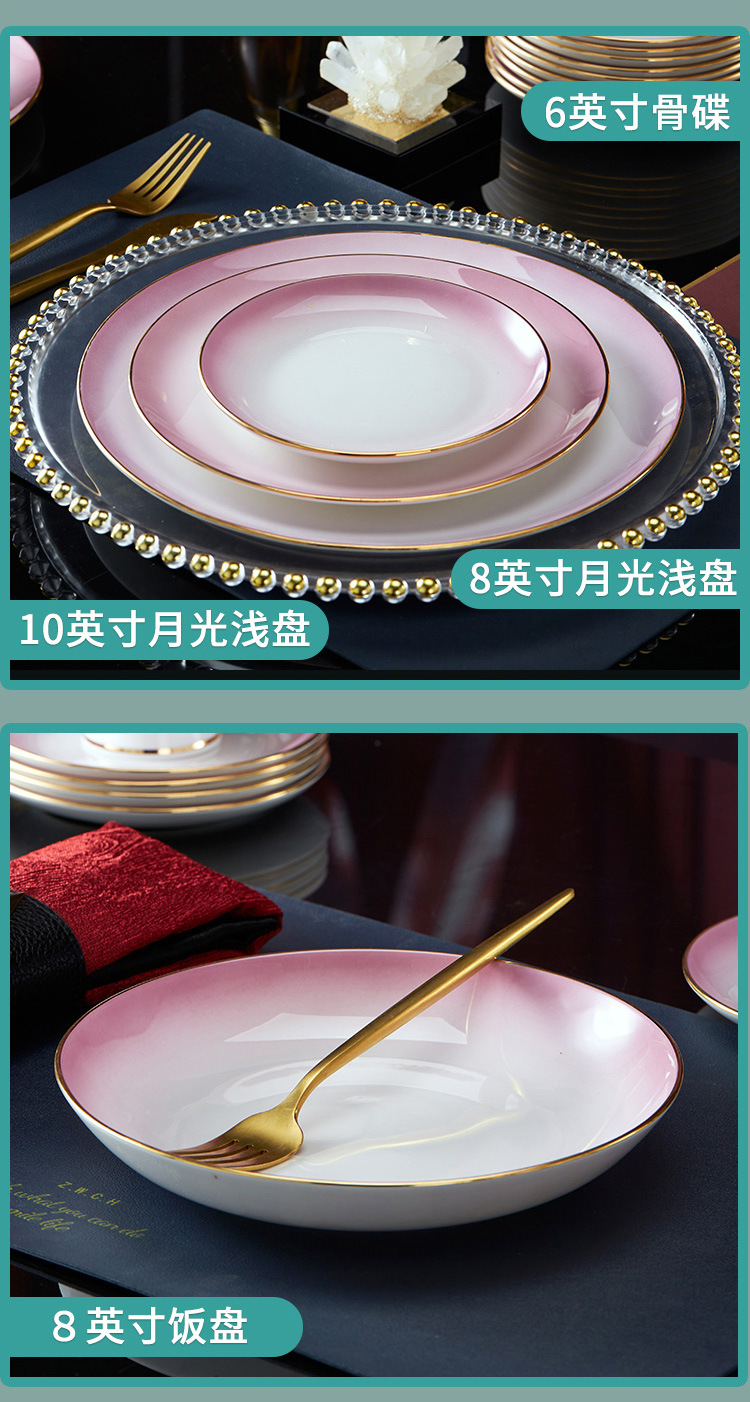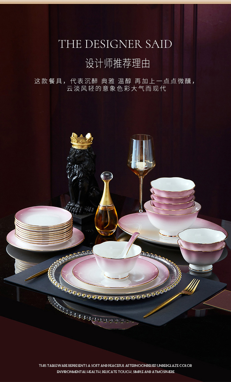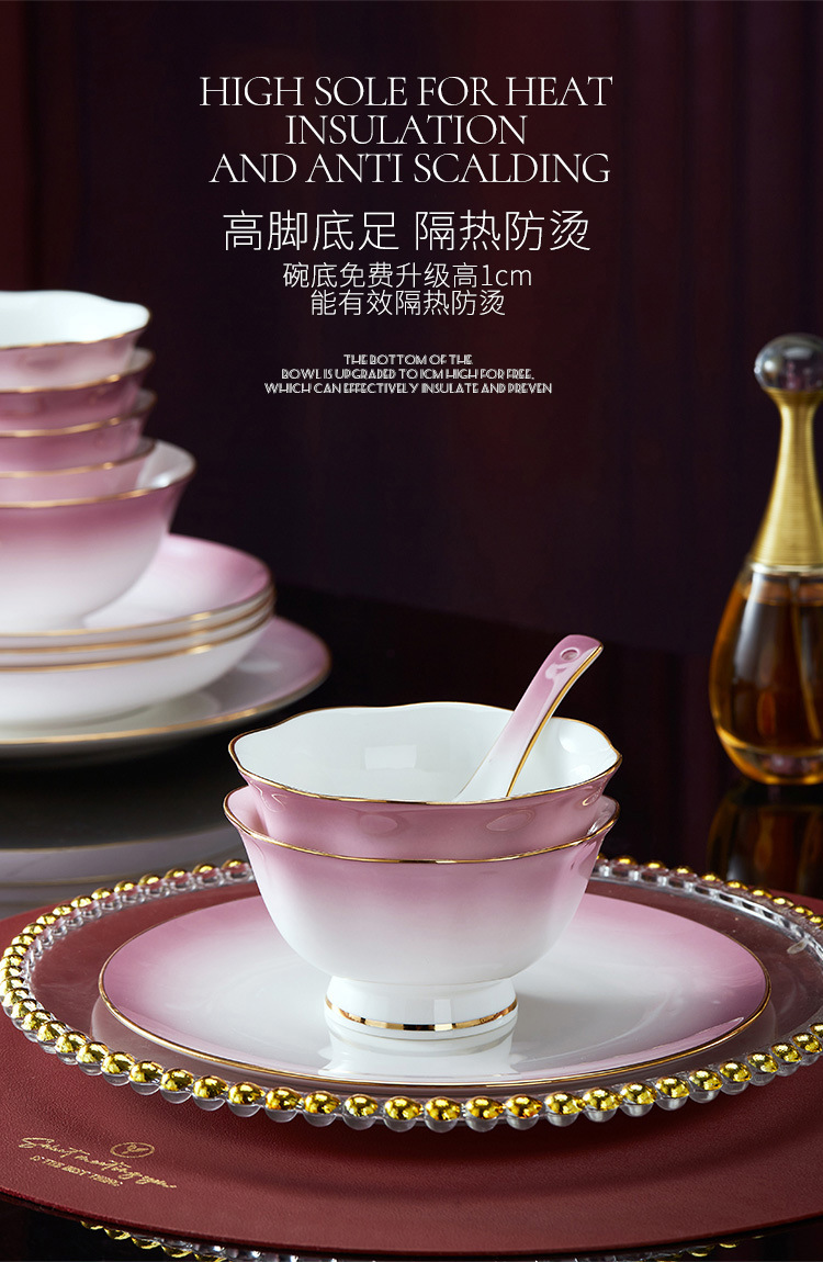高级骨瓷餐具套装碗盘家用组合 景德镇骨瓷奢华乔迁结婚碗筷套装 English | 投诉
