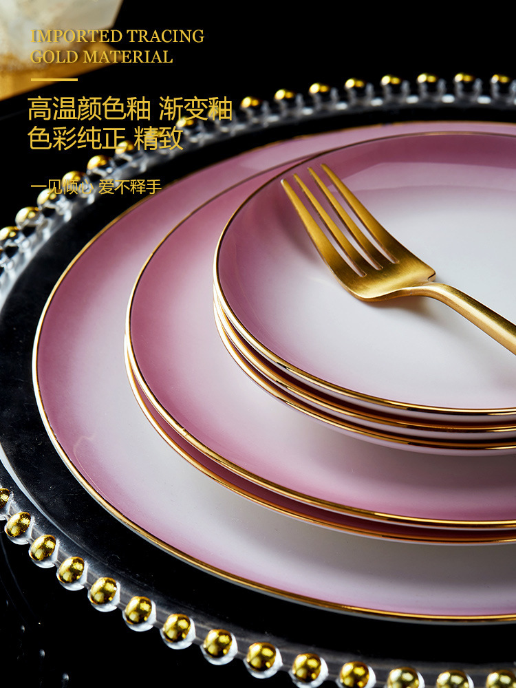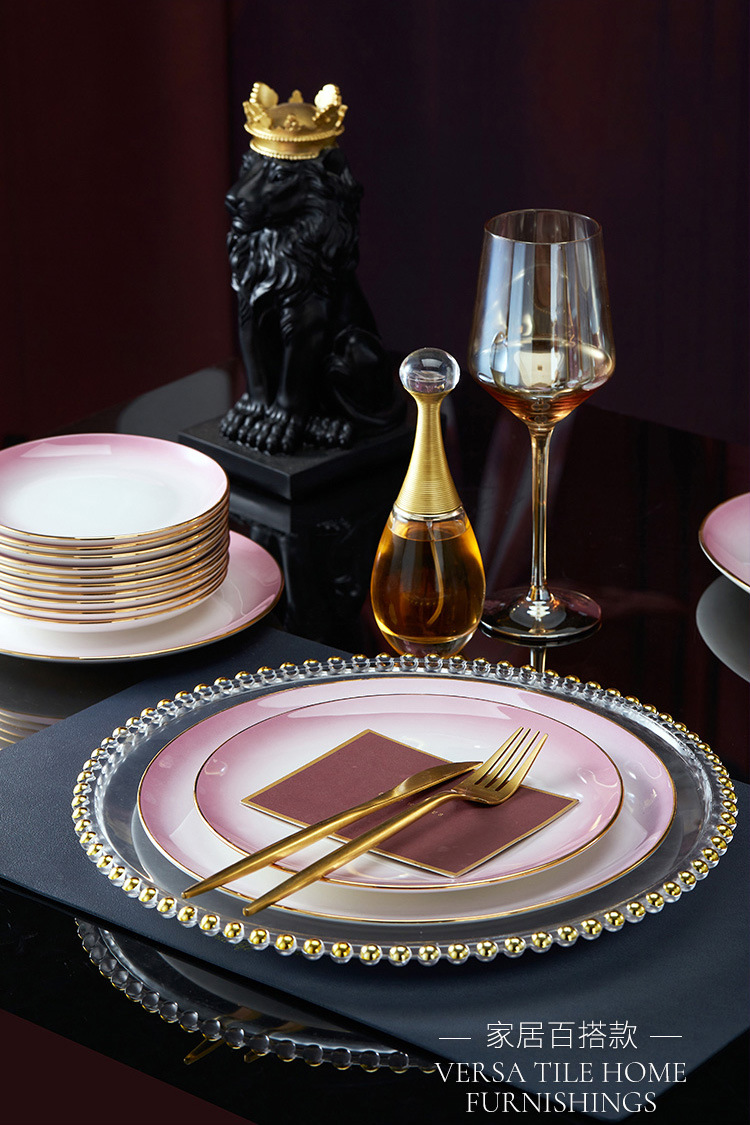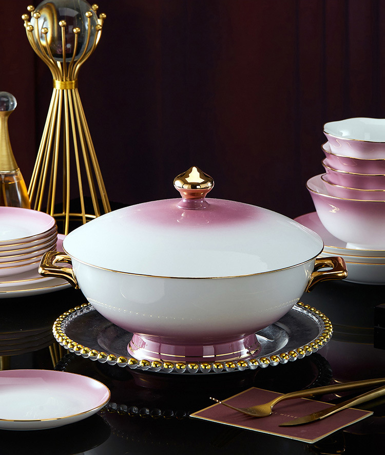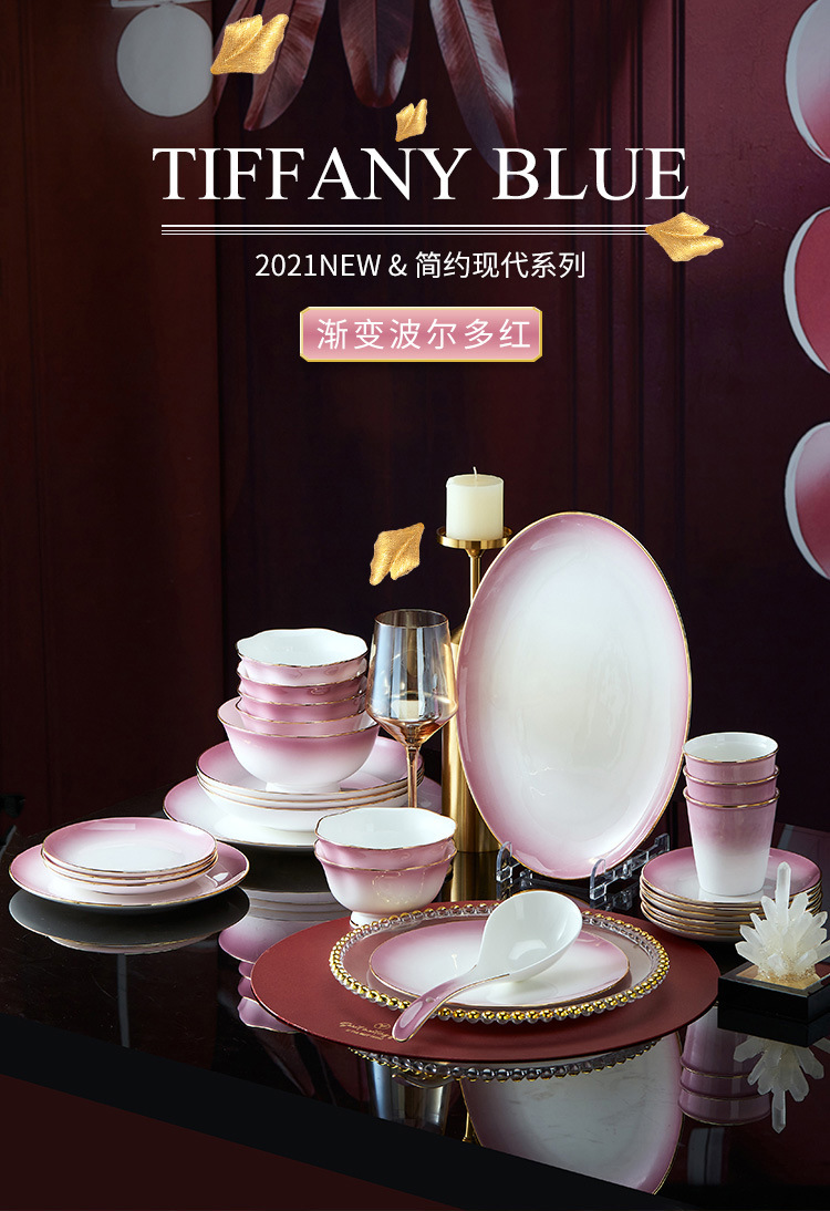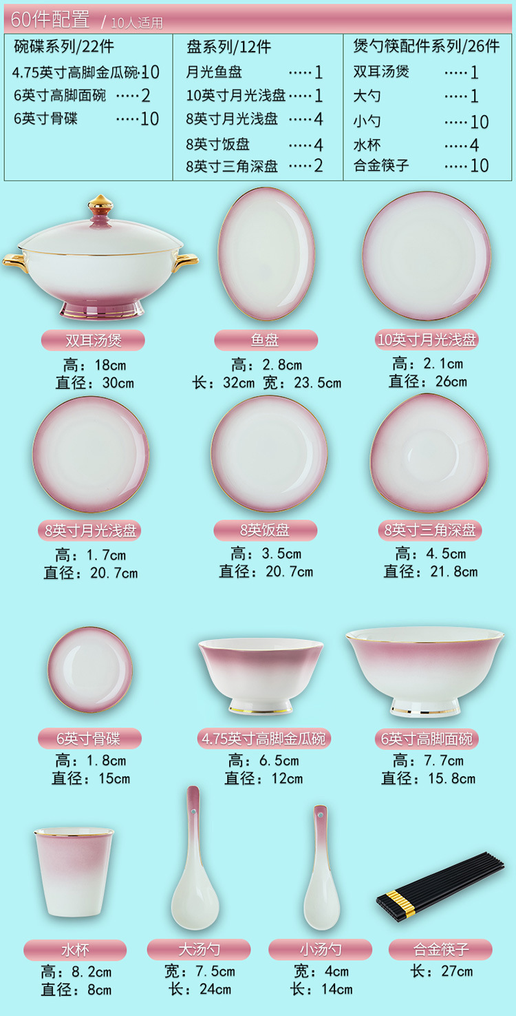 高级骨瓷餐具套装碗盘家用组合 景德镇骨瓷奢华乔迁结婚碗筷套装 English | 投诉