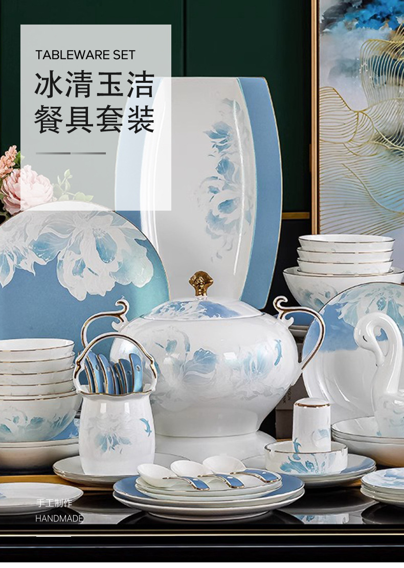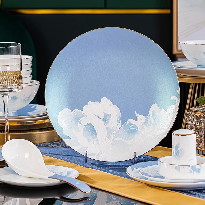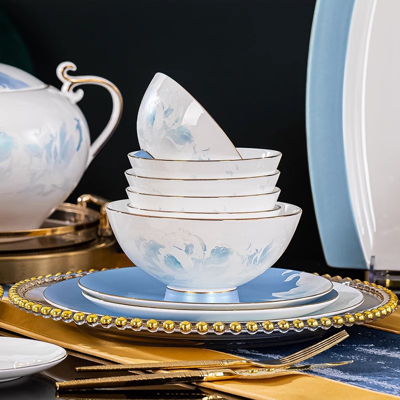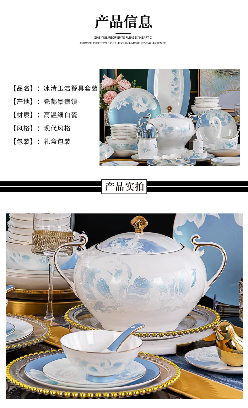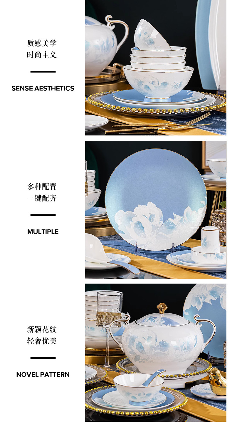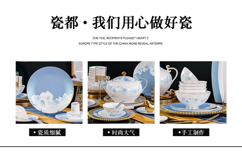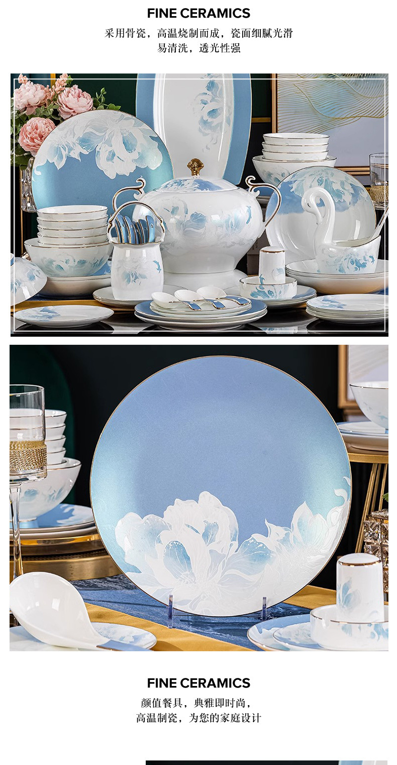 骨瓷餐具套装景德镇新款碗碟套装家用新中式轻奢碗盘组合陶瓷餐具 English | 投诉
