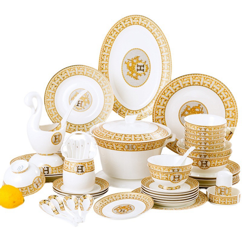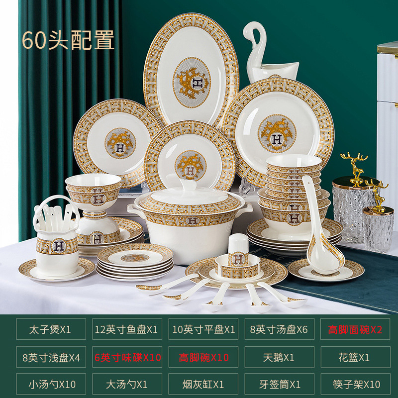 景德镇陶瓷骨质瓷餐具套装碗盘碟创意欧式高级描金家用送礼品批发 English | 投诉