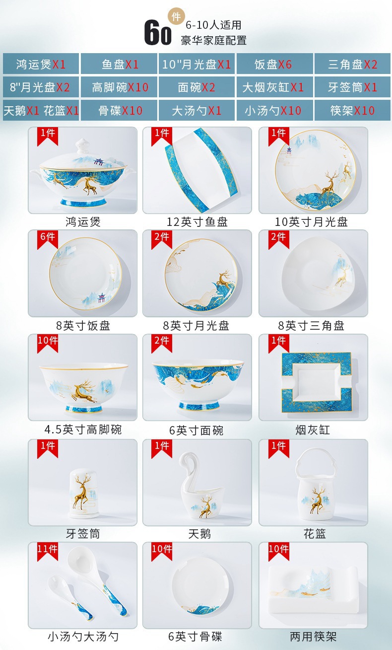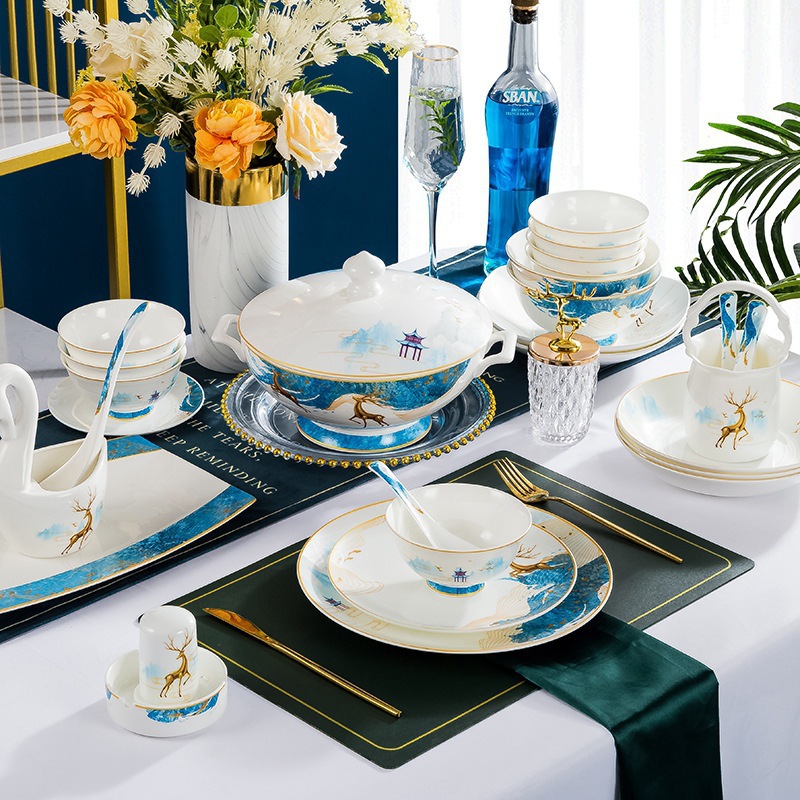 景德镇骨瓷陶瓷碗碟盘组合餐具 碗盘 家用套碗筷瓷碗饭碗礼盒套装 English | 投诉