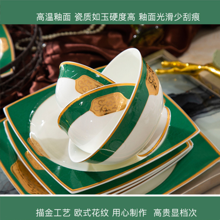 景德镇骨瓷质餐具套装陶轻奢高档欧式碗碟筷碗盘家用组合礼品批发 English | 投诉