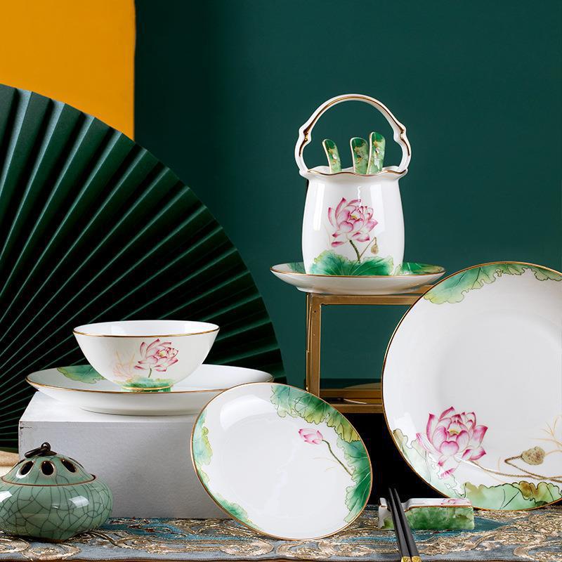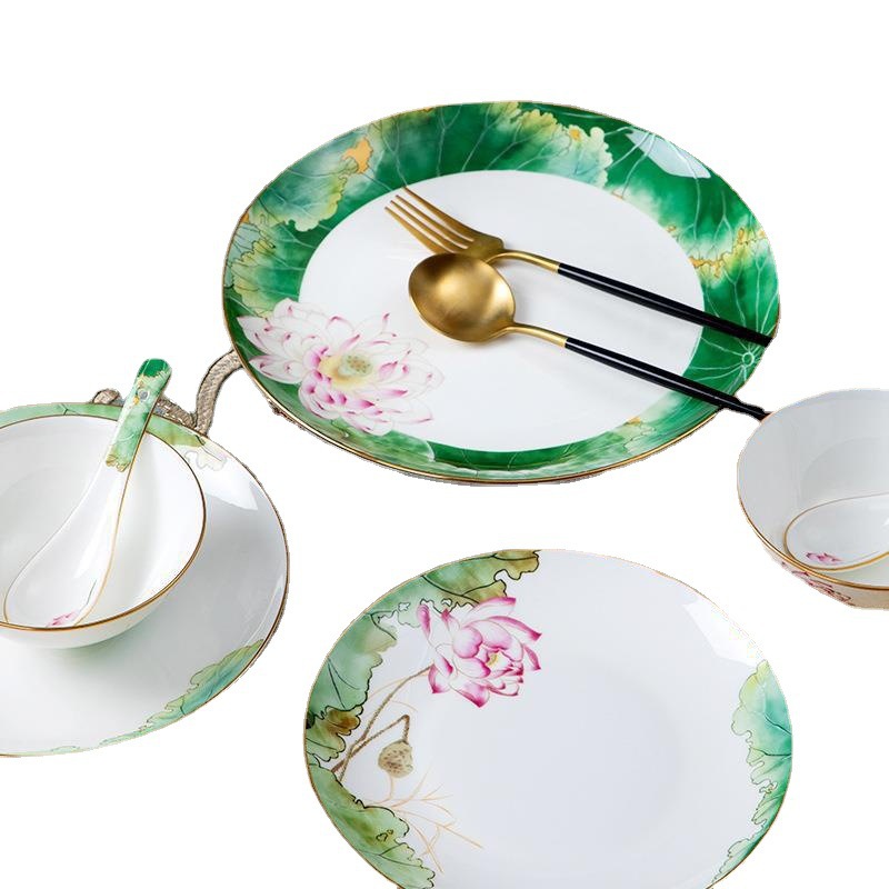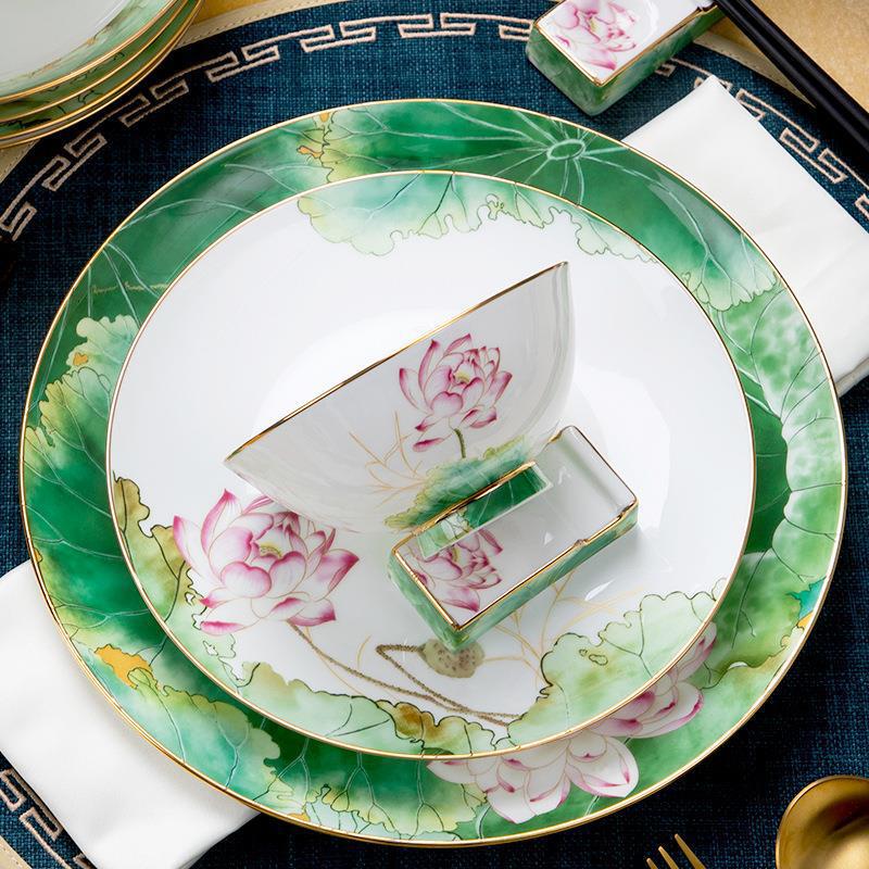 碗碟筷陶瓷套装 家用轻奢新中式景德镇骨瓷陶瓷餐具套装 礼品批发 English | 投诉