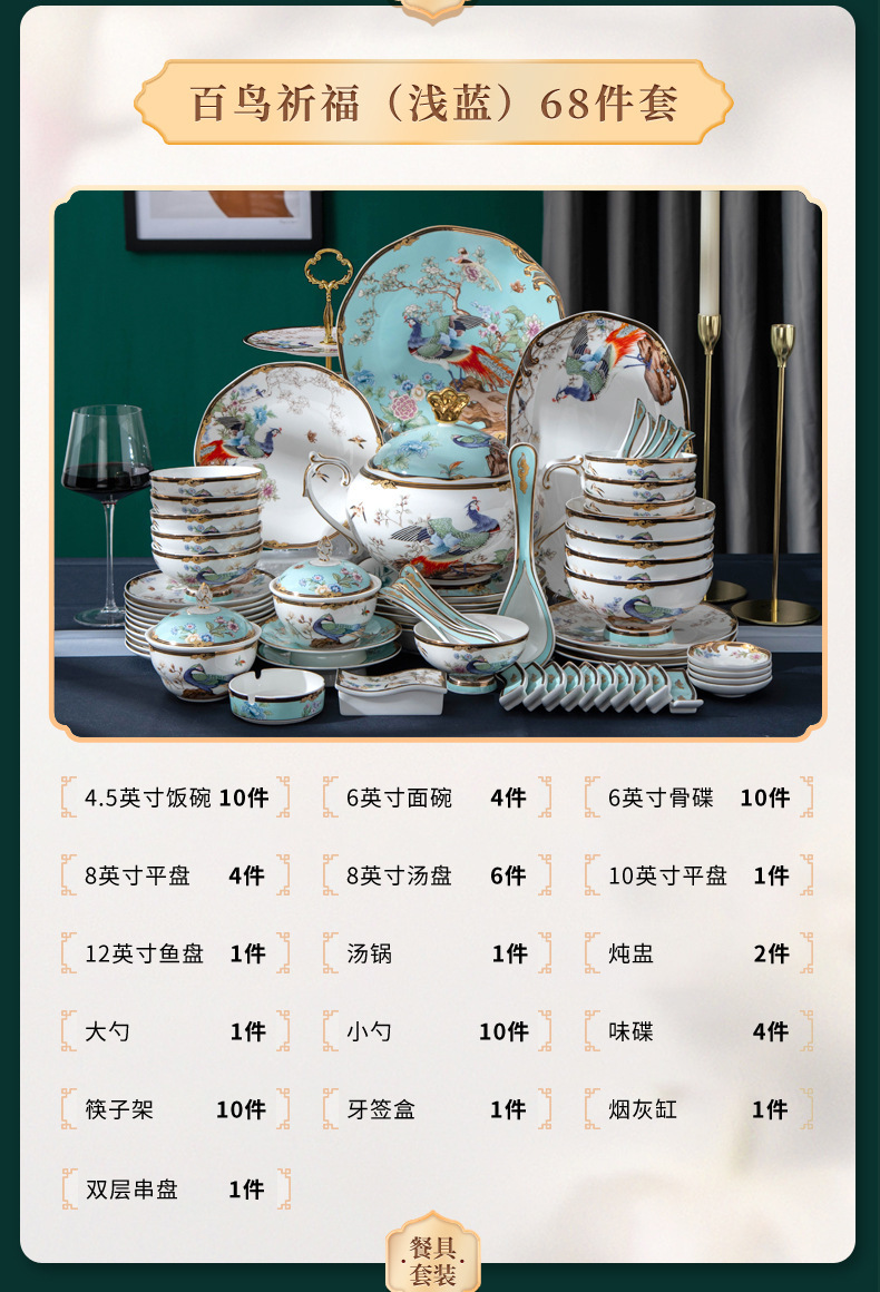 景德镇骨瓷餐具轻奢高档套装中国风高颜值新中式家用碗碟结婚礼品 English | 投诉