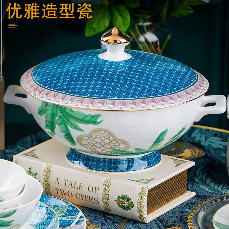 陶瓷餐具套装轻奢高档陶瓷碗盘组合套装家用中式骨瓷餐具工厂批发 English | 投诉