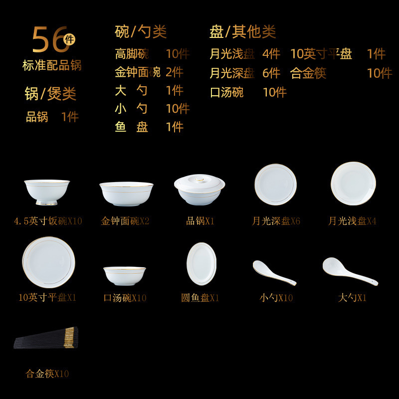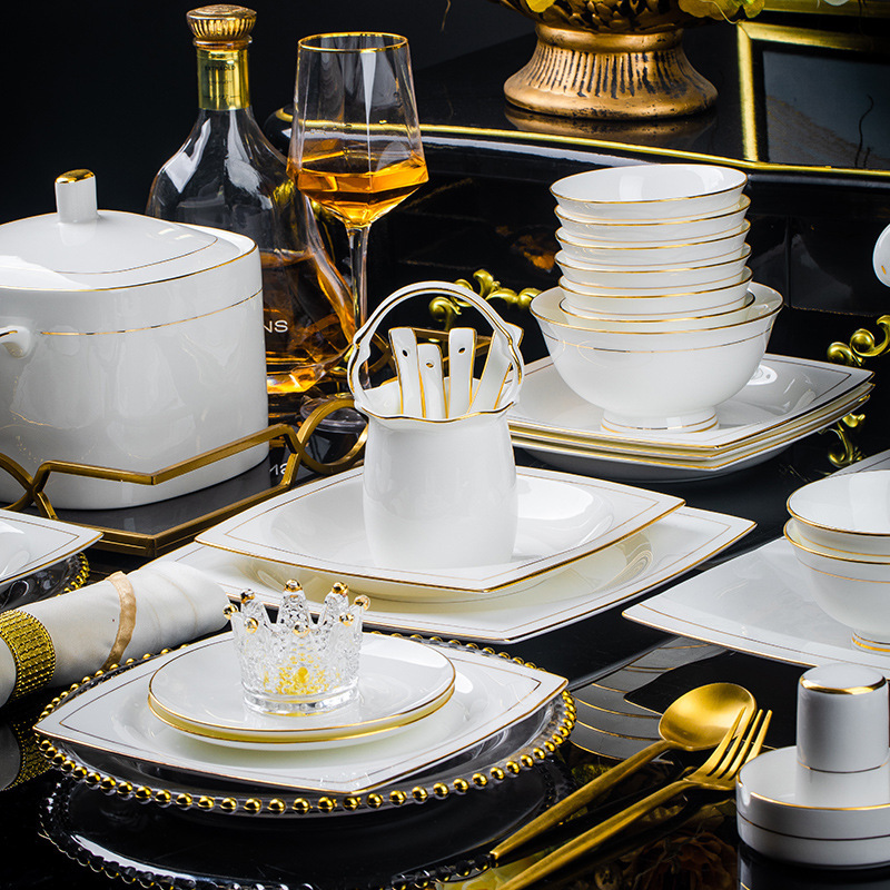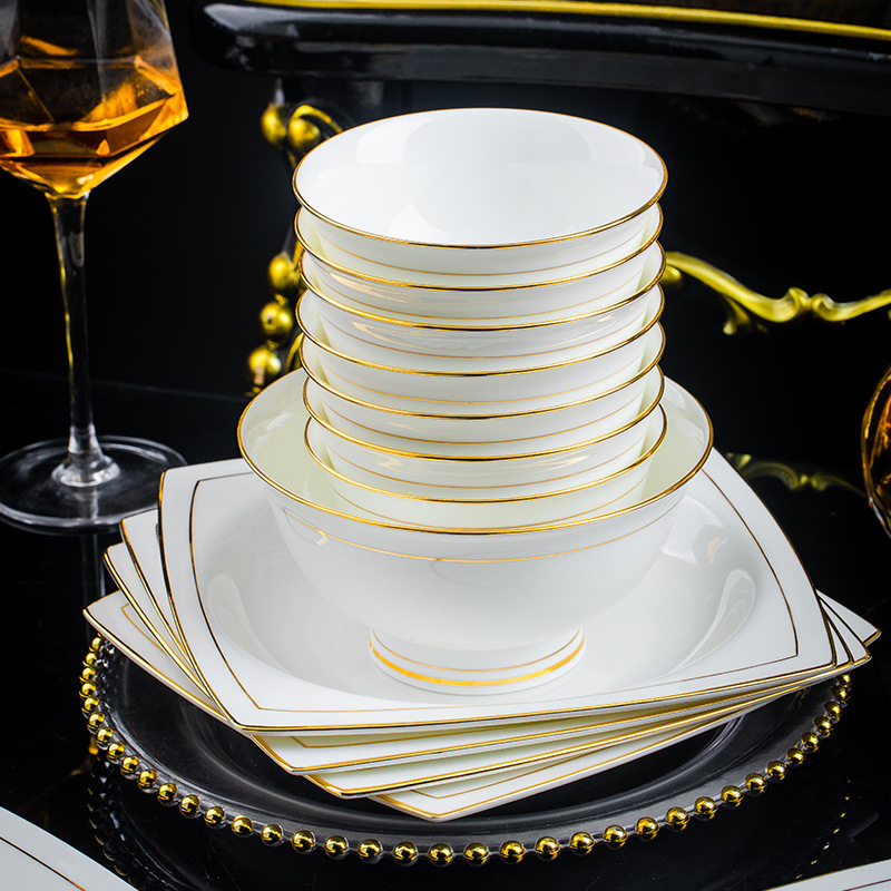 景德镇陶瓷餐具套装轻奢简约碗碟套装家用手工描金碗盘碗工厂批发 English | 投诉