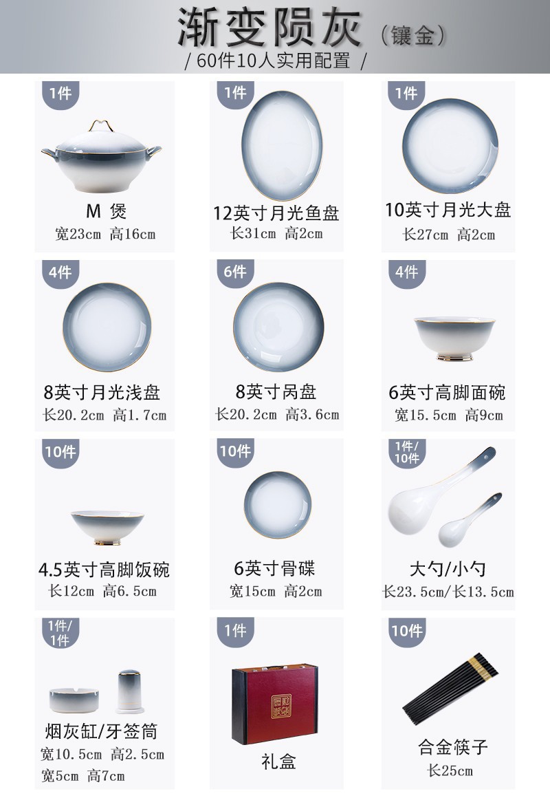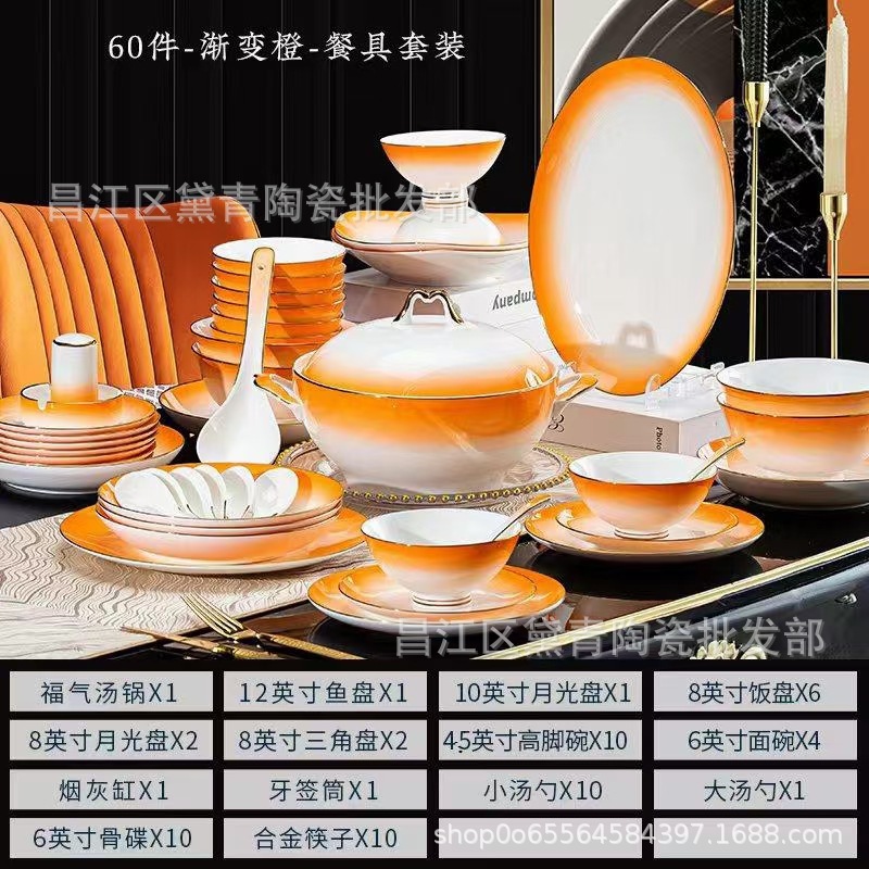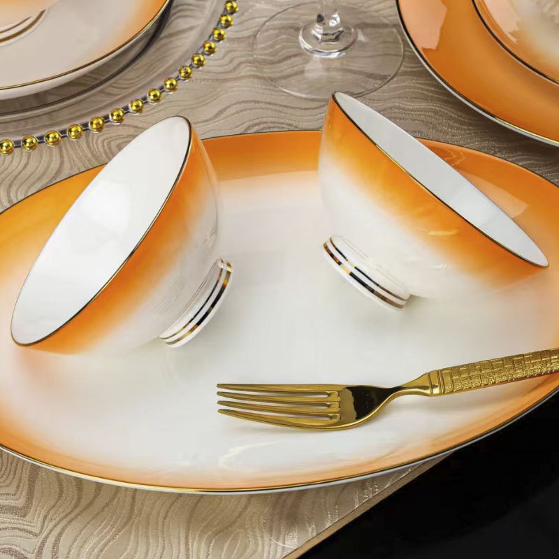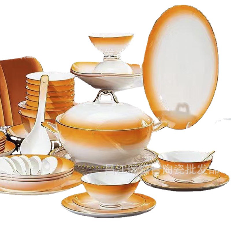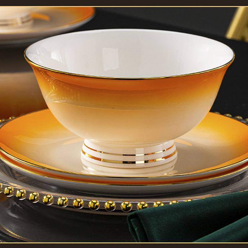 景德镇陶瓷餐具骨瓷 碗碟套装家用简约轻奢描金碗筷组合 工厂批发 English | 投诉