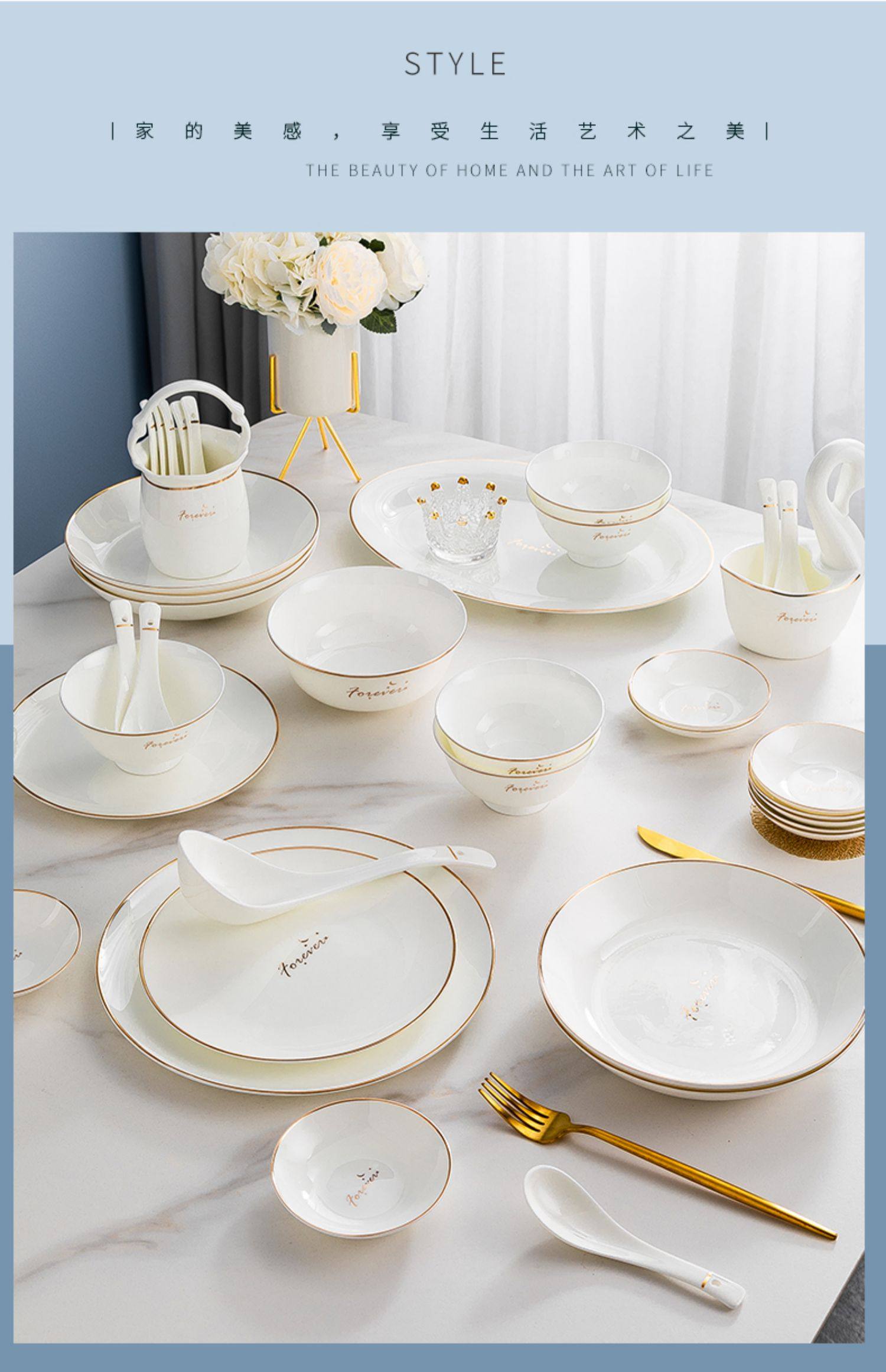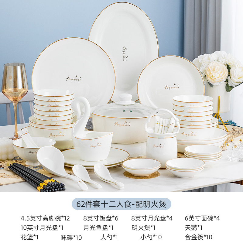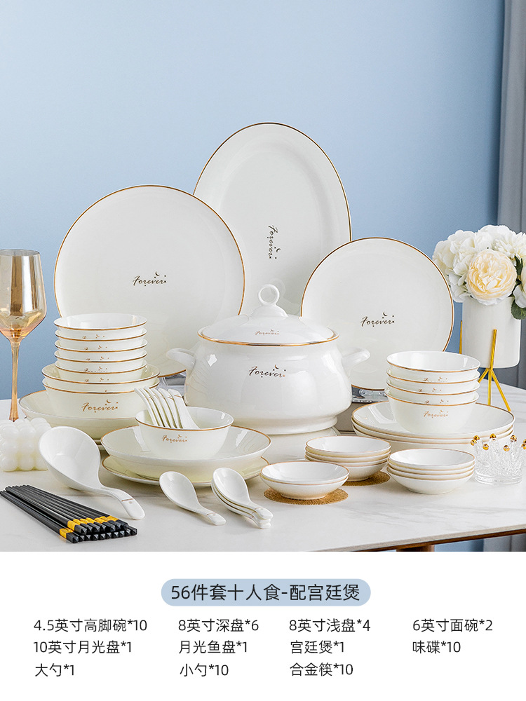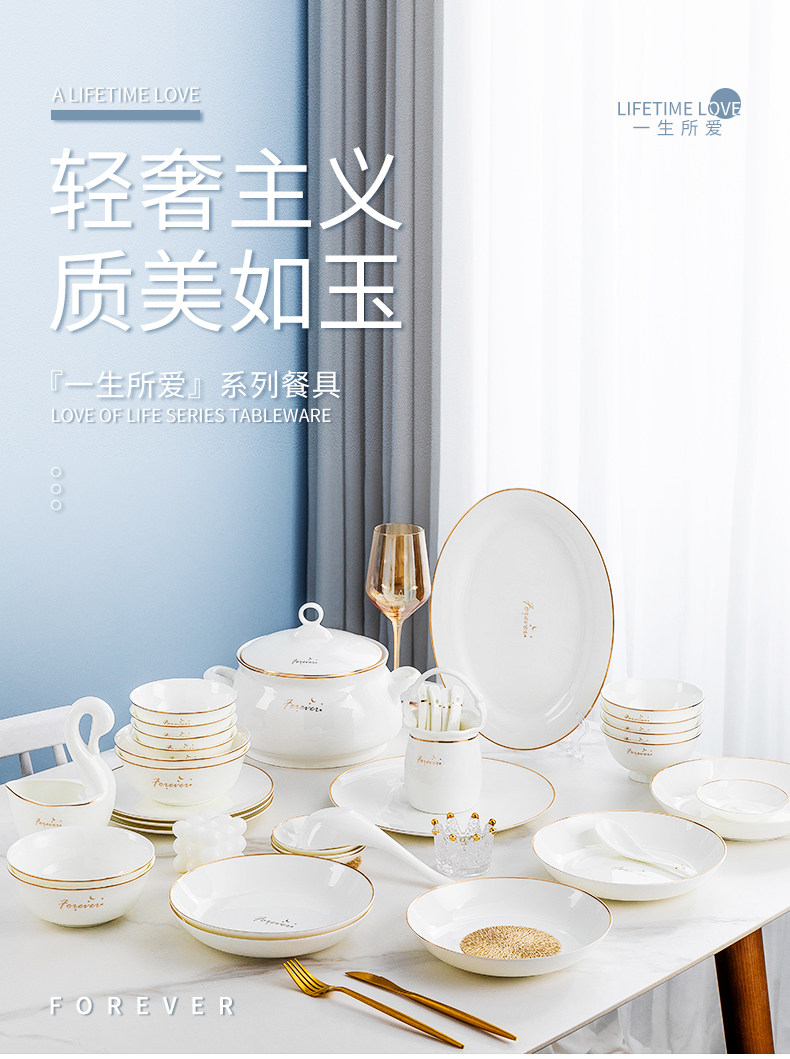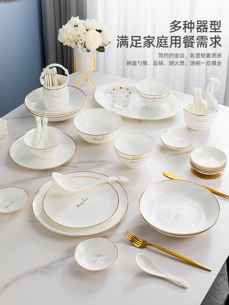 碗碟套装家用新款景德镇陶瓷骨瓷餐具轻奢创意碗盘简约工厂批发 English | 投诉