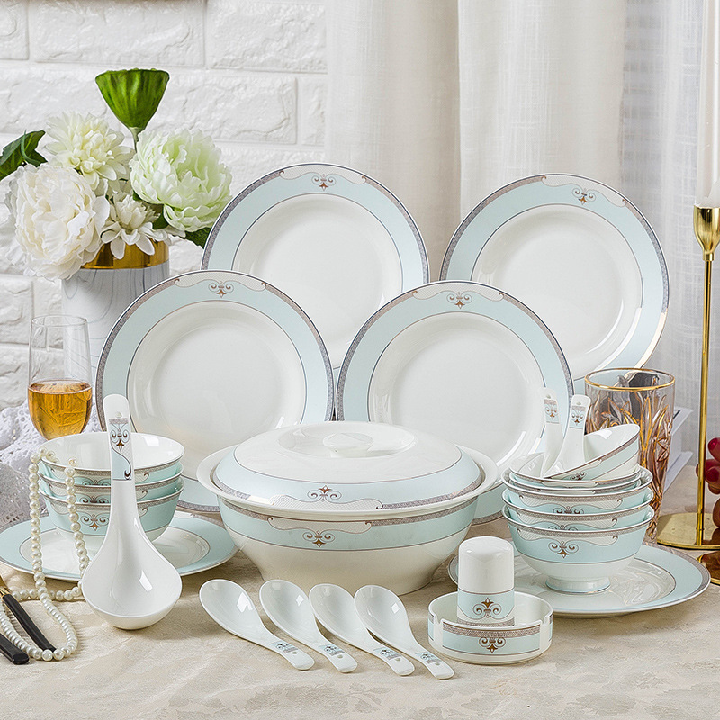 骨瓷餐具套装景德镇陶瓷碗碟套装碗盘勺组合欧式活动礼品工厂批发 English | 投诉