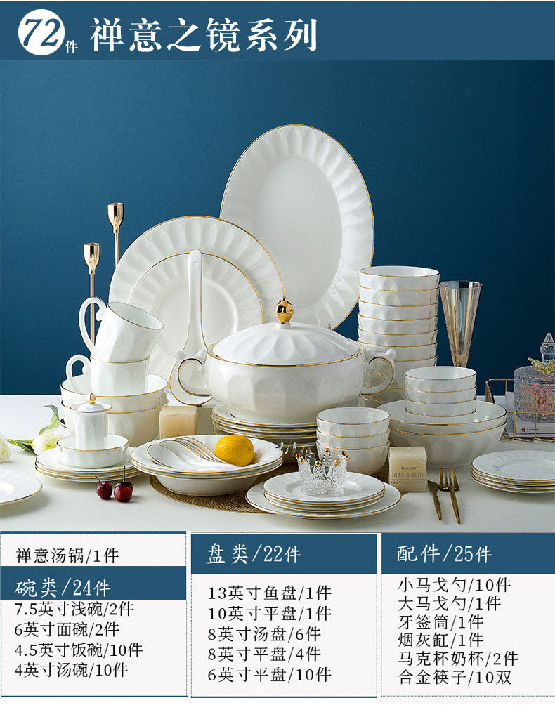 景德镇陶瓷餐具套装轻奢简约骨瓷餐具碗碟筷组合套装家用创意礼品 English | 投诉