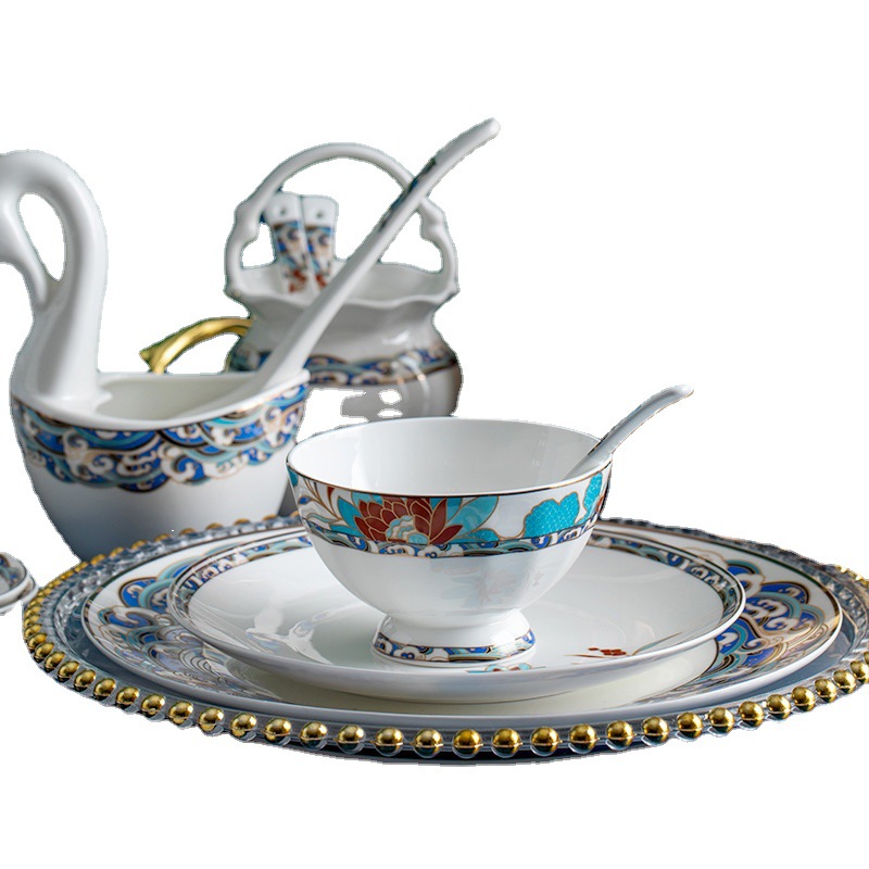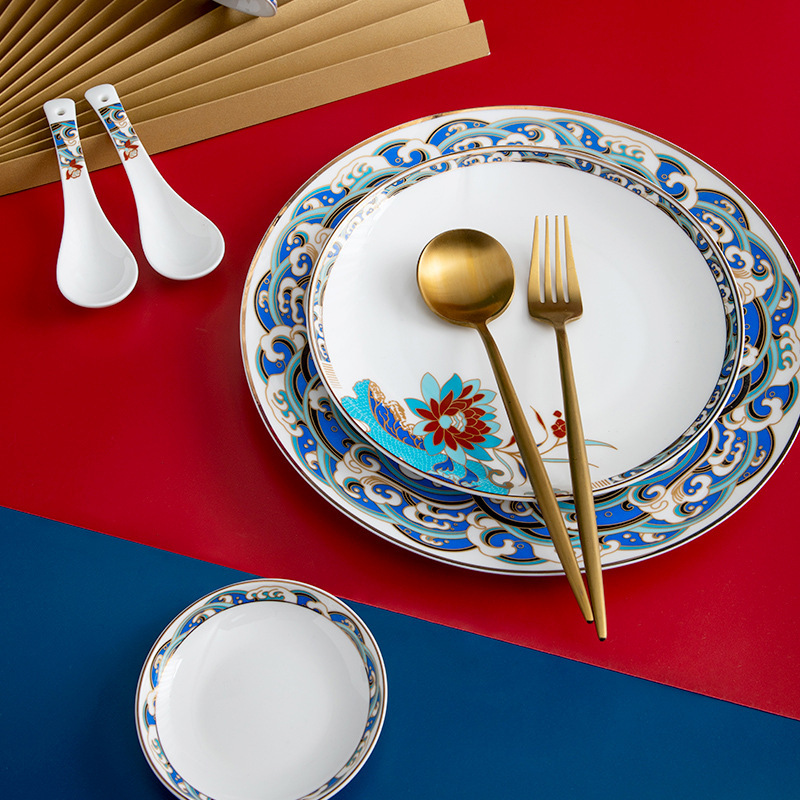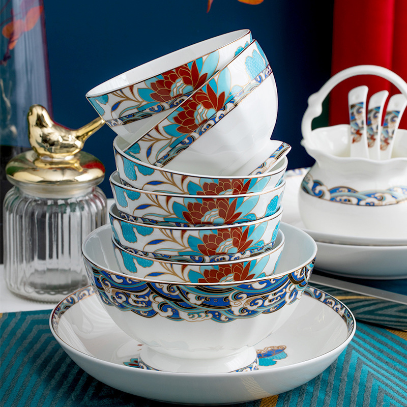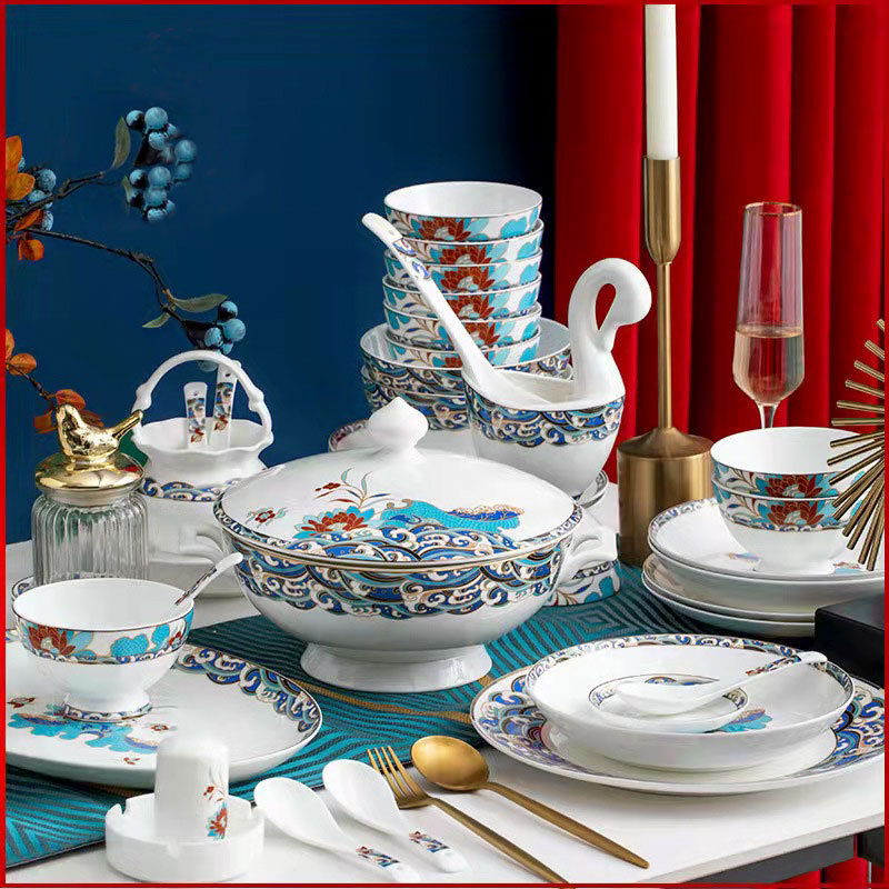 碗碟套装 家用简约高档轻奢中式景德镇骨瓷餐具套装陶瓷碗盘套装 English | 投诉