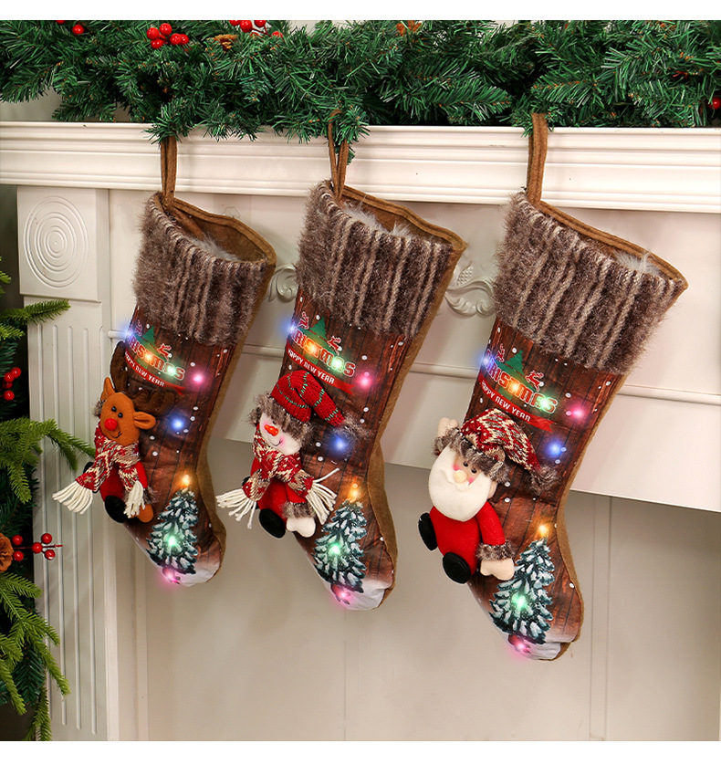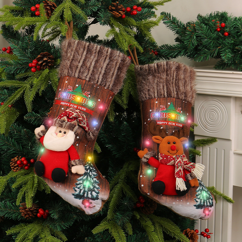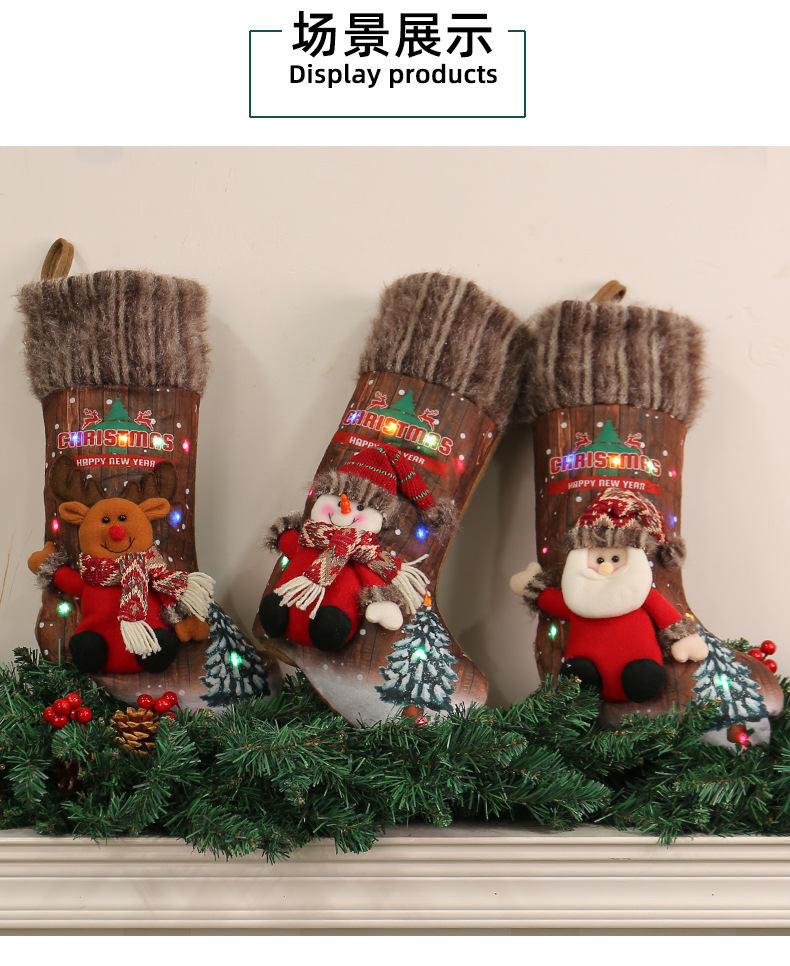 港之恋圣诞彩灯圣诞袜跨境圣诞树挂饰儿童礼物袋壁炉装饰袜子批发