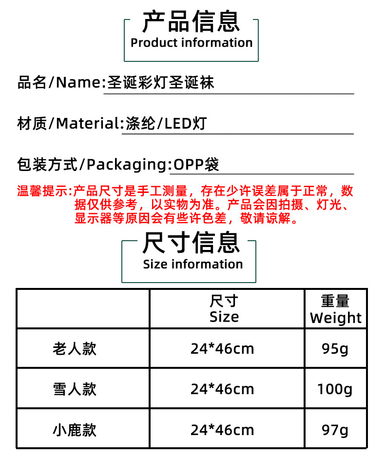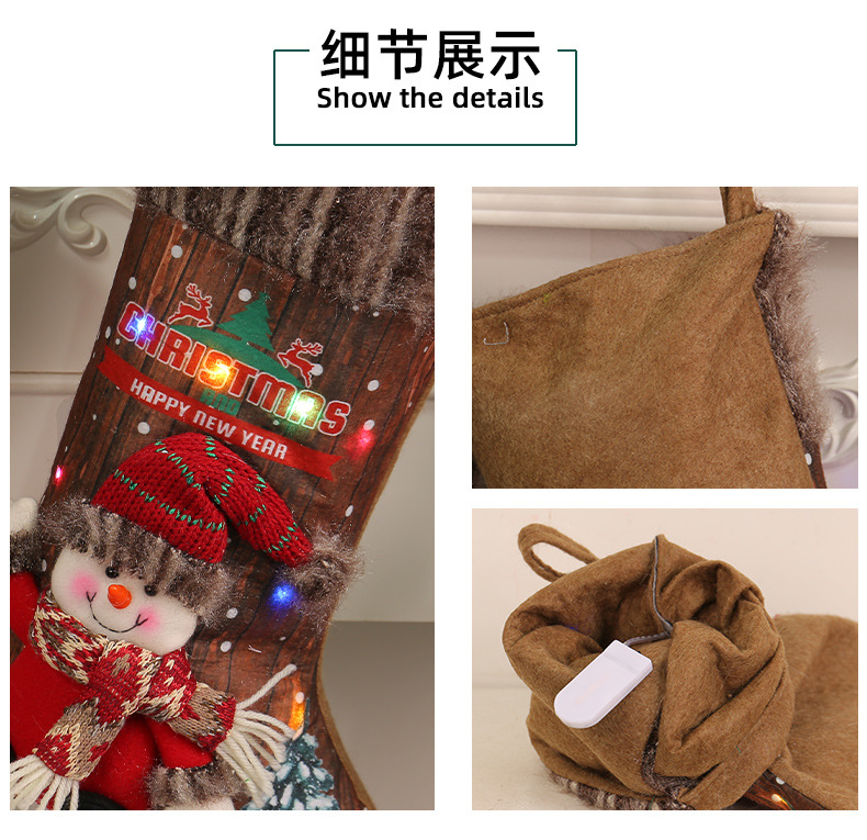 港之恋圣诞彩灯圣诞袜跨境圣诞树挂饰儿童礼物袋壁炉装饰袜子批发 投诉