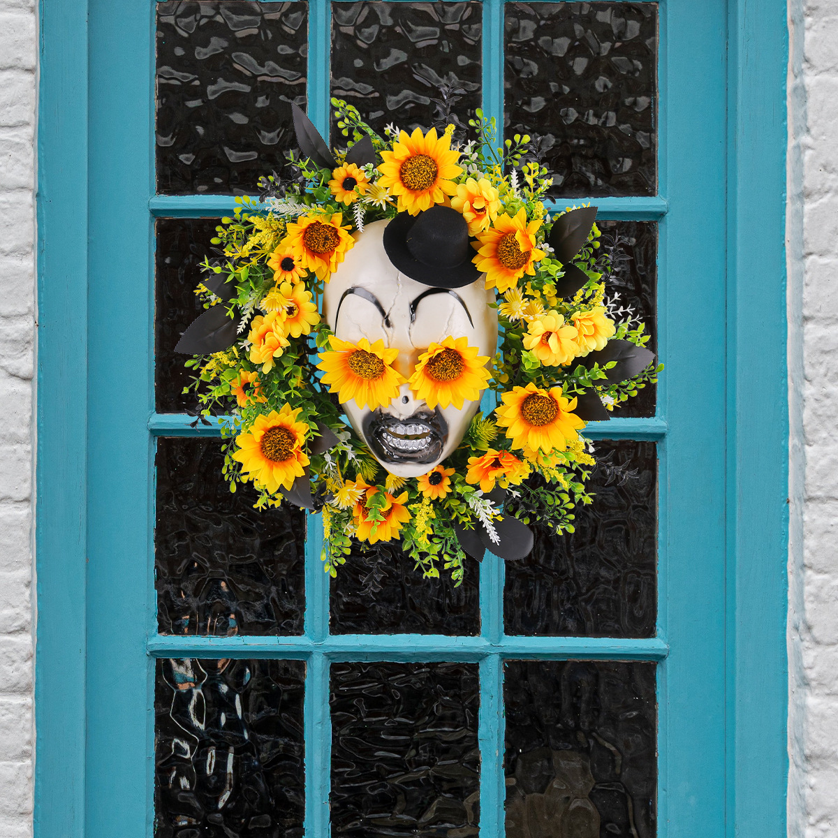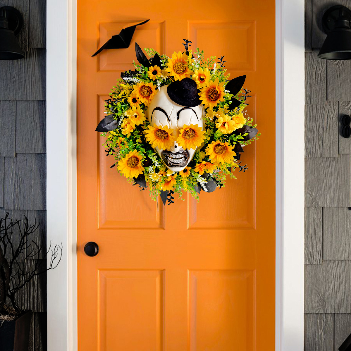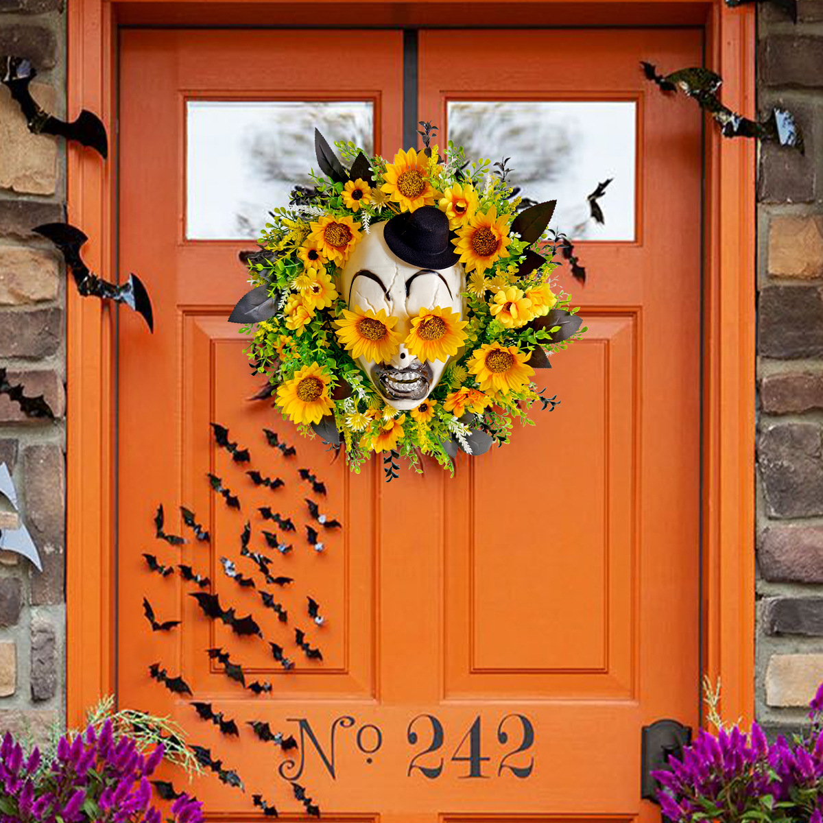 亚马逊新品向日葵鬼面礼帽花环门挂 节日庭院仿真花藤圈布置壁挂