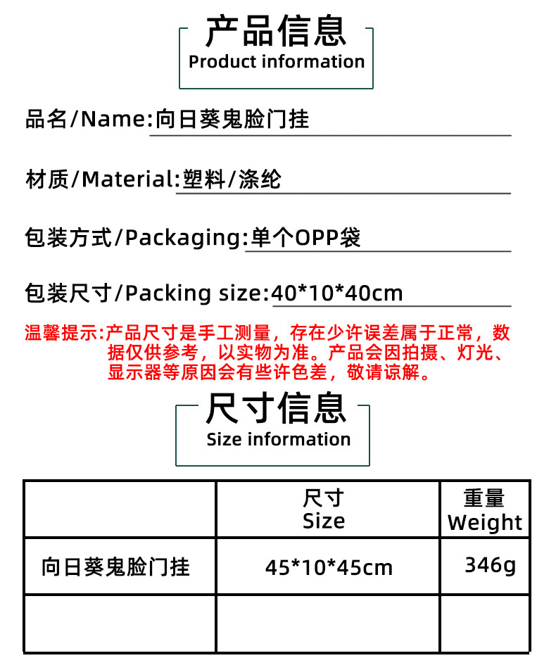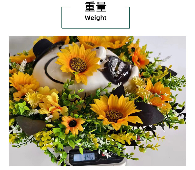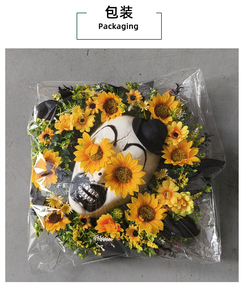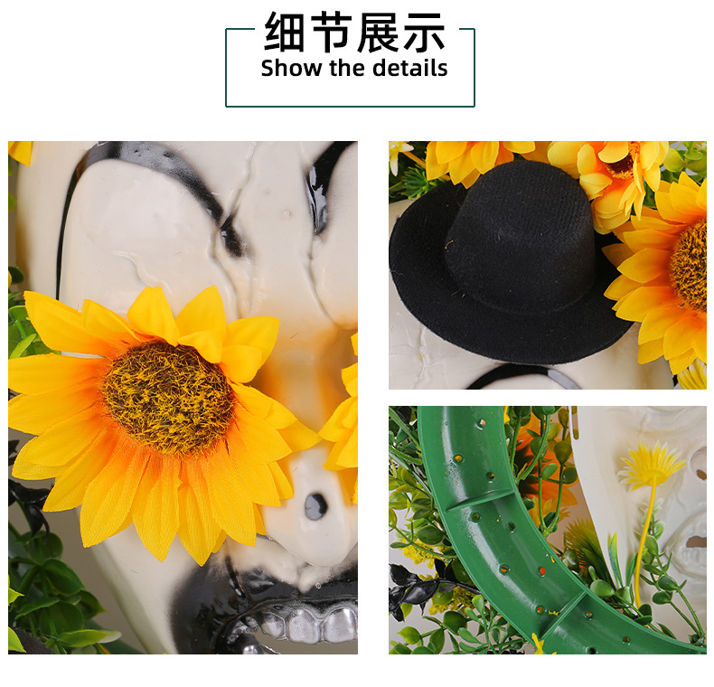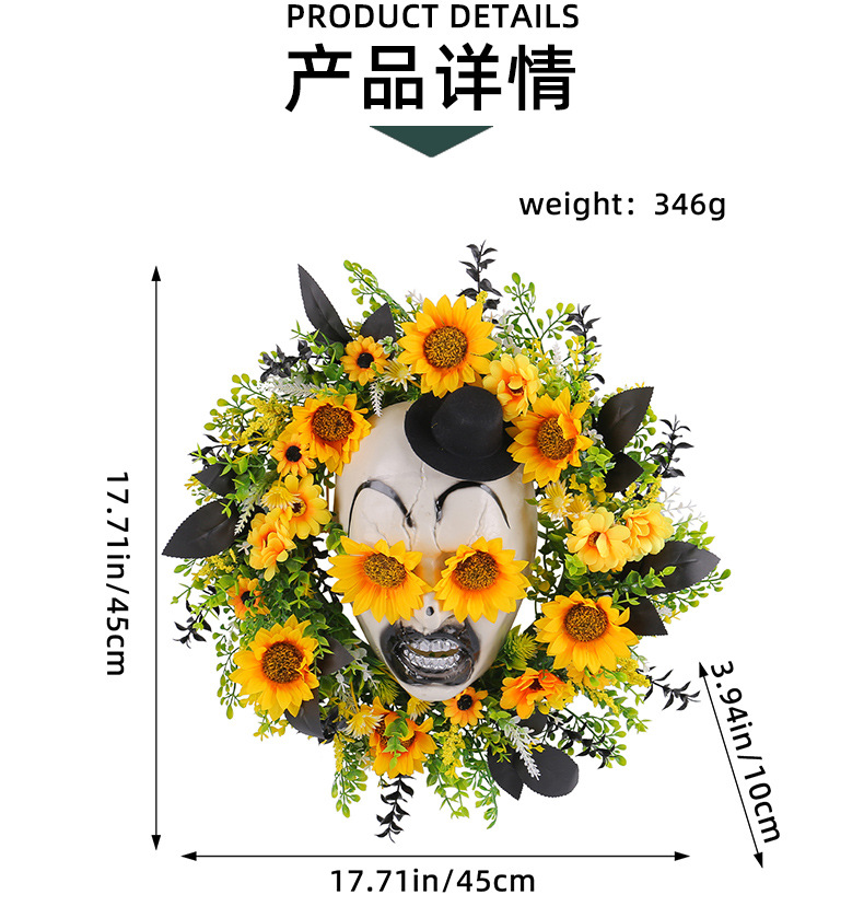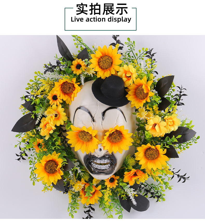 亚马逊新品向日葵鬼面礼帽花环门挂 节日庭院仿真花藤圈布置壁挂 投诉