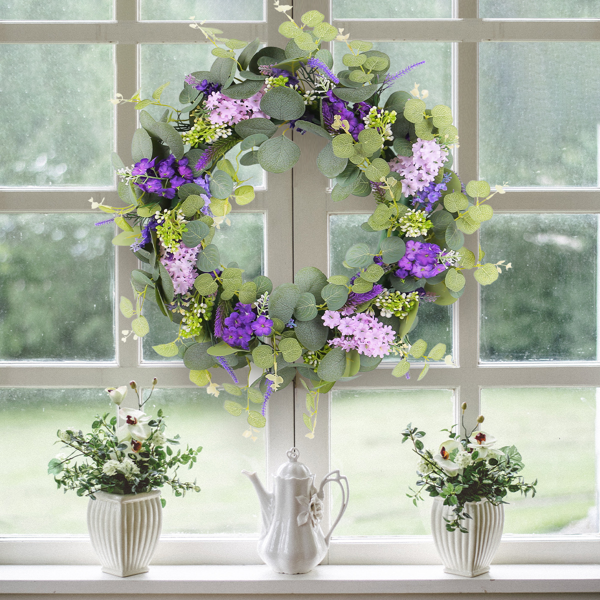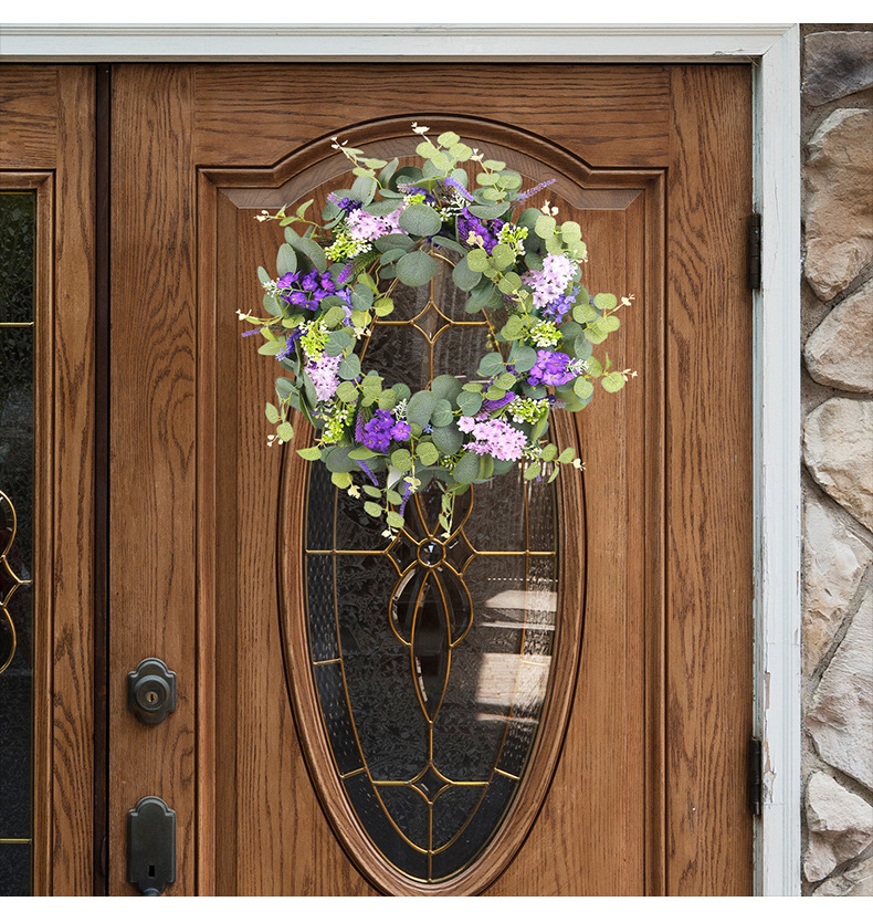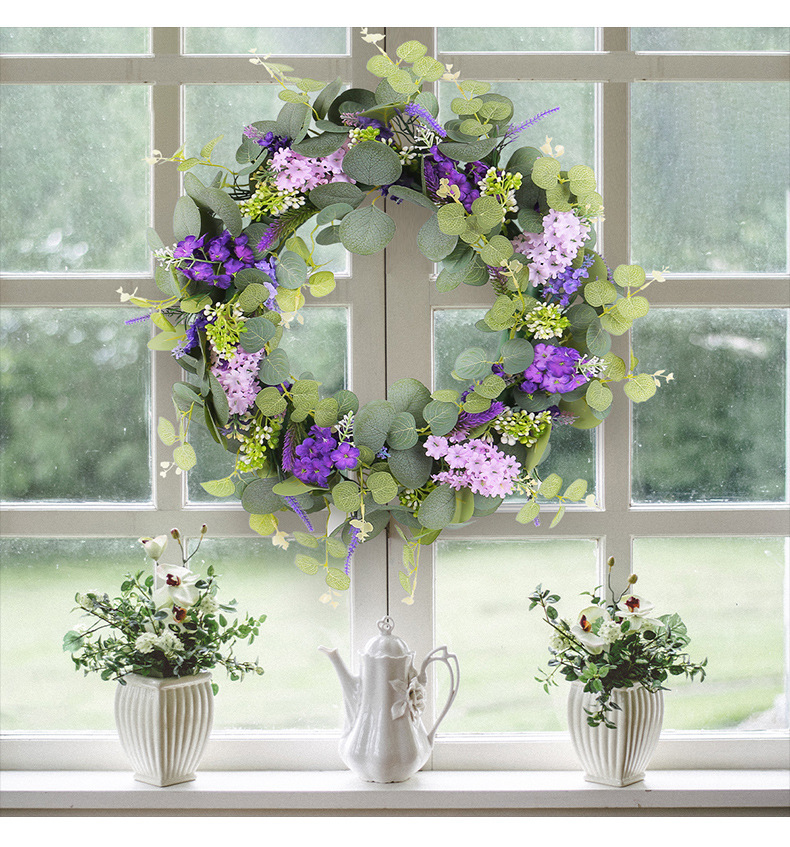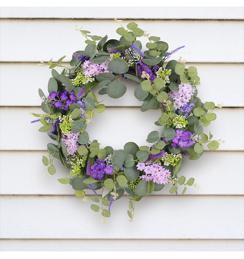 2024新款母亲节装饰品春季仿真花环小清新绿叶紫花门挂家具装饰品
