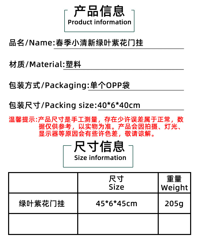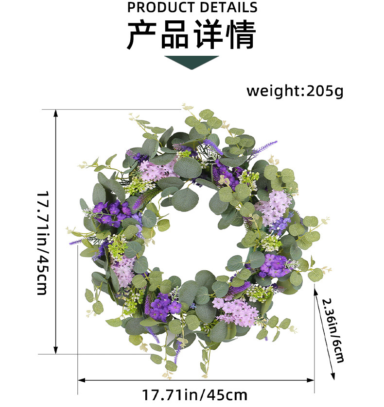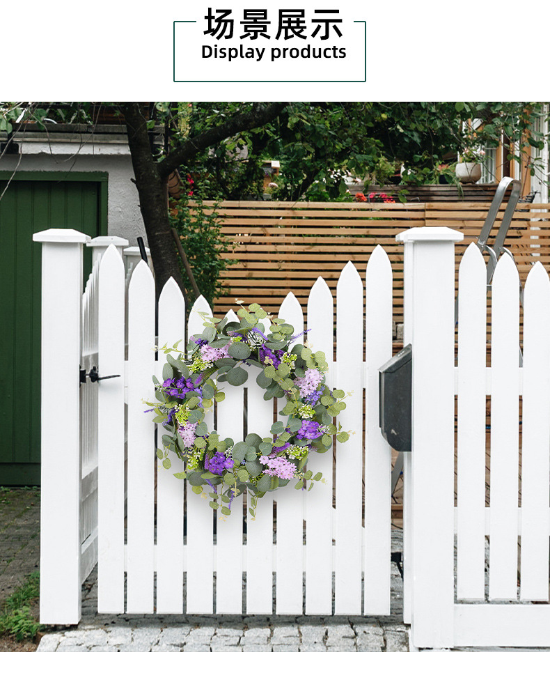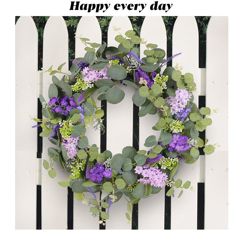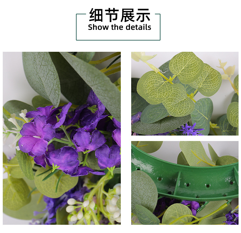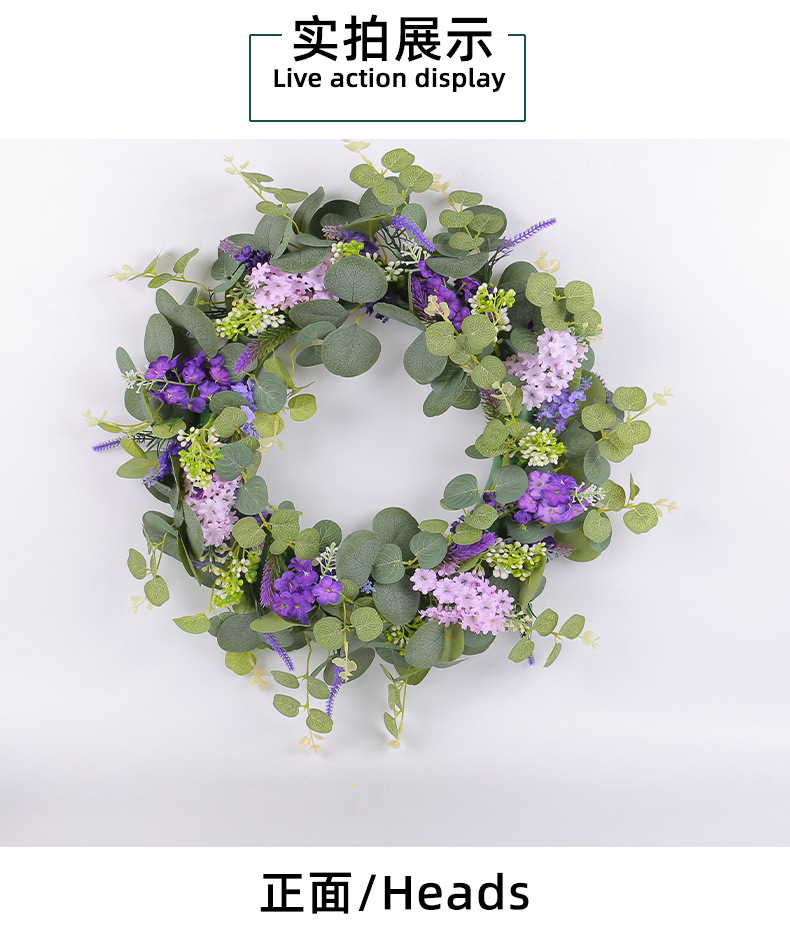 2024新款母亲节装饰品春季仿真花环小清新绿叶紫花门挂家具装饰品 投诉