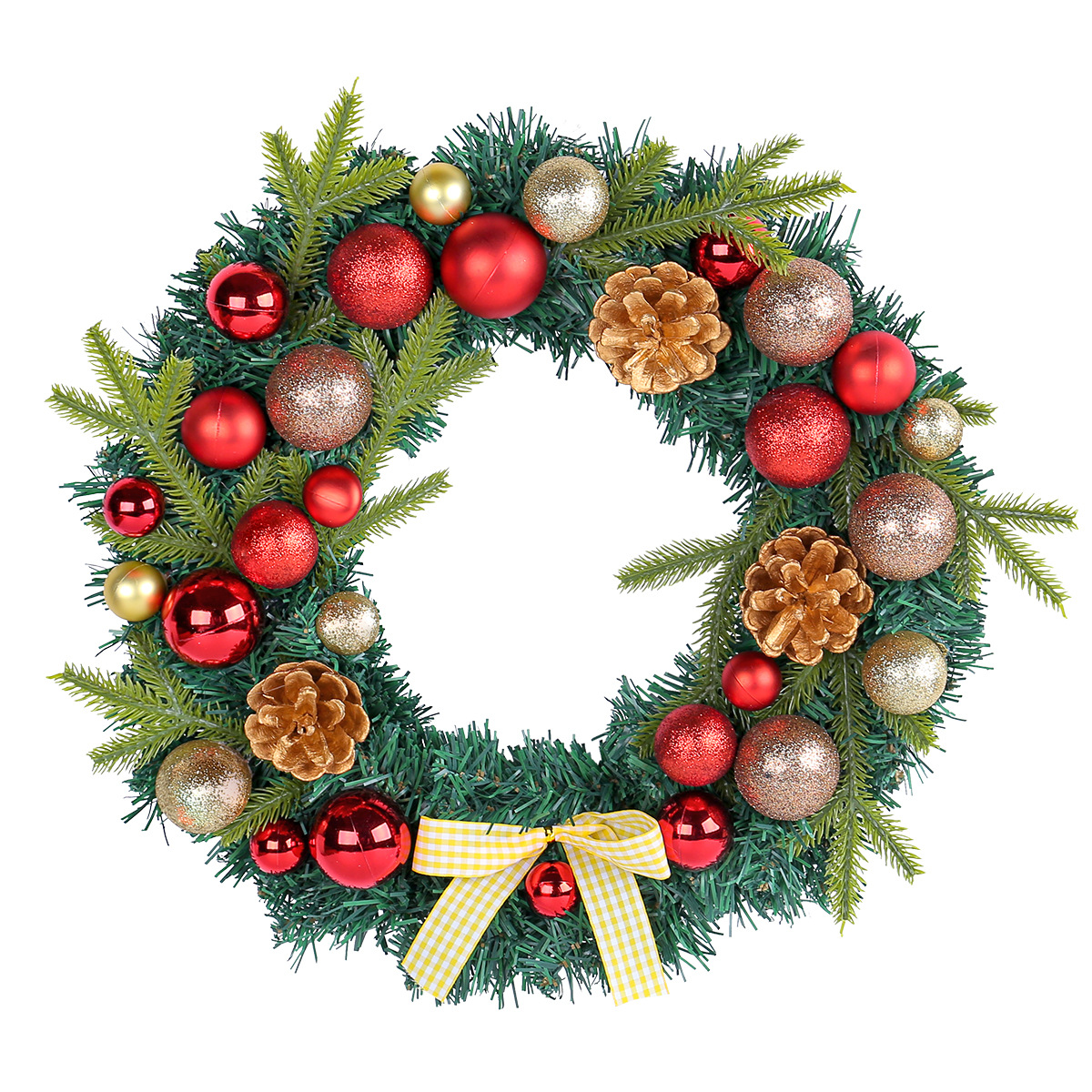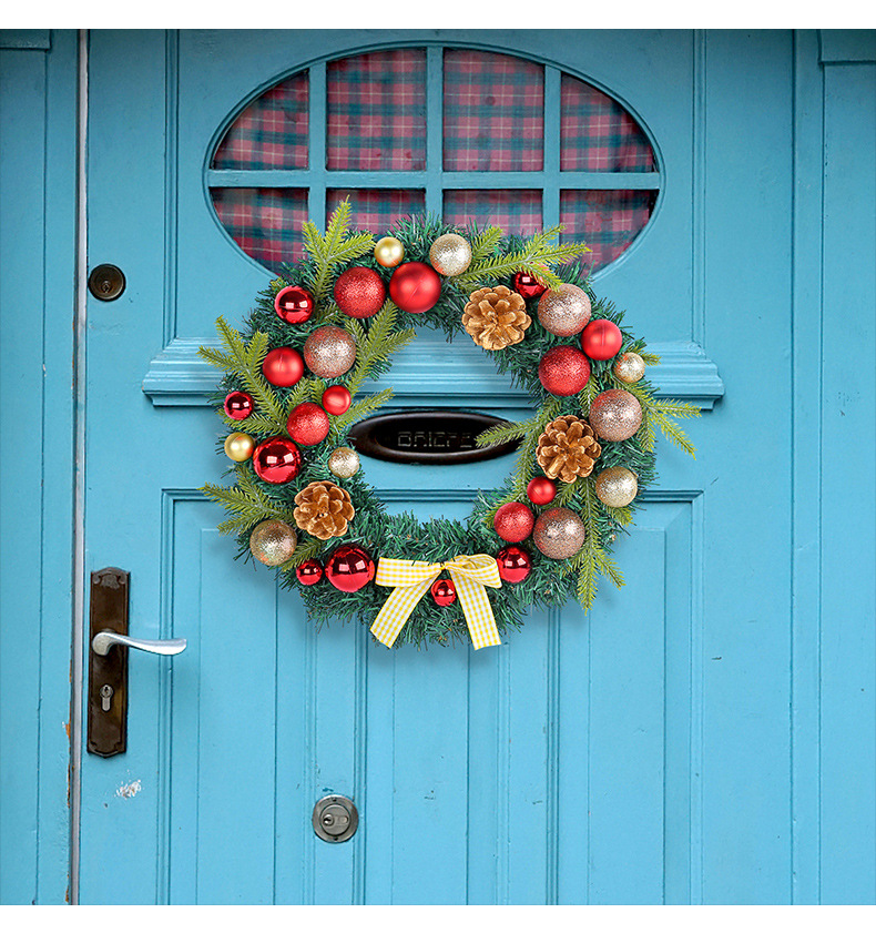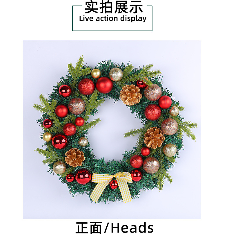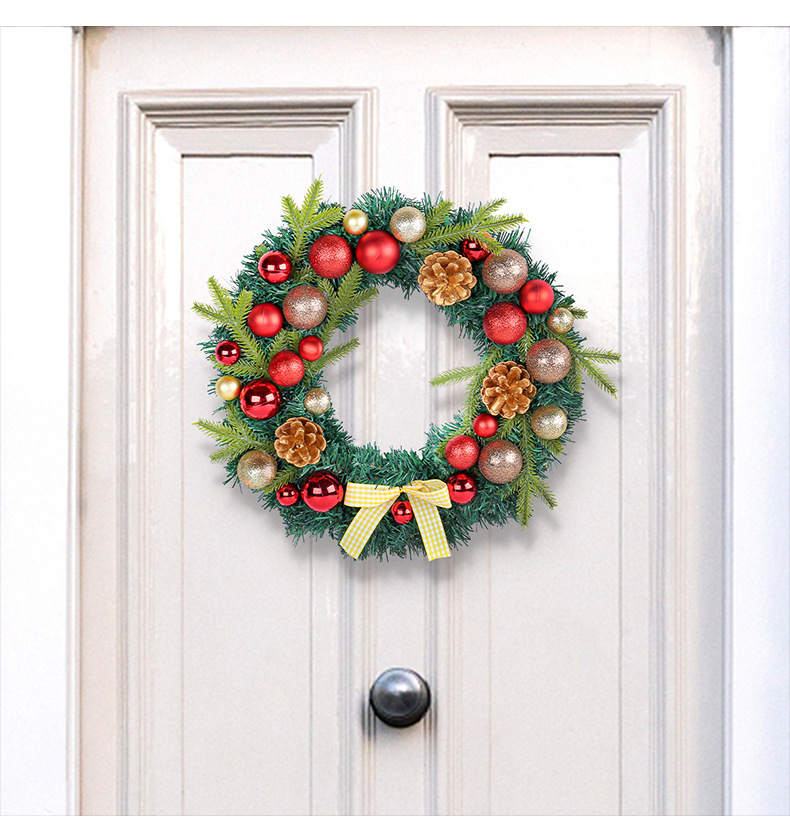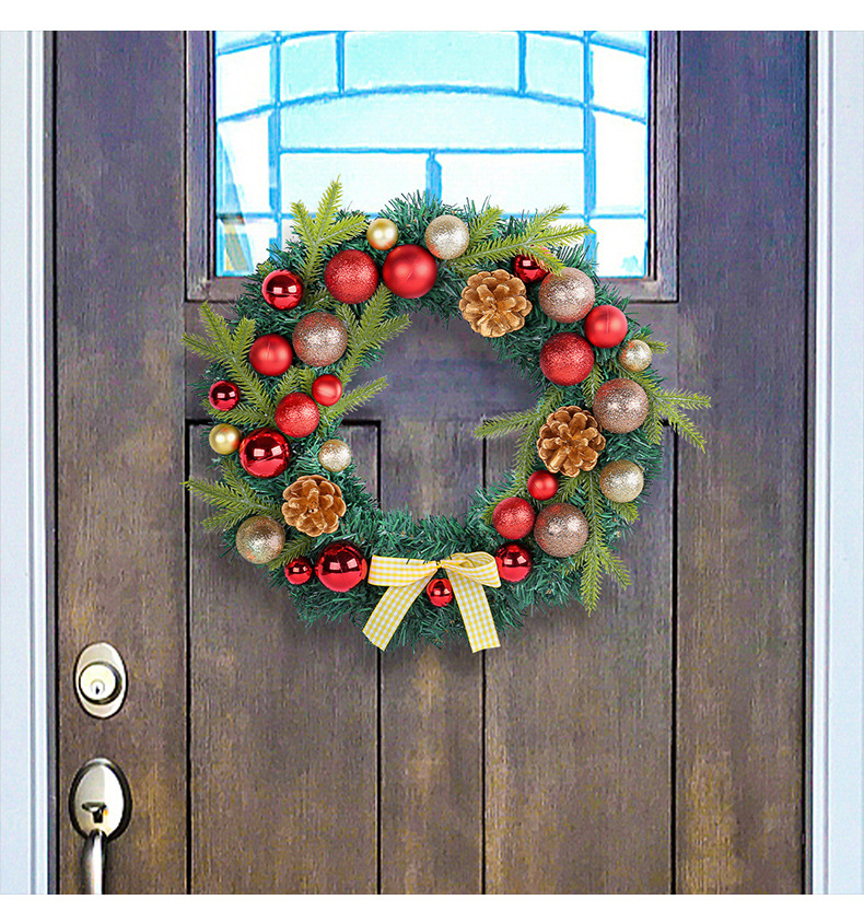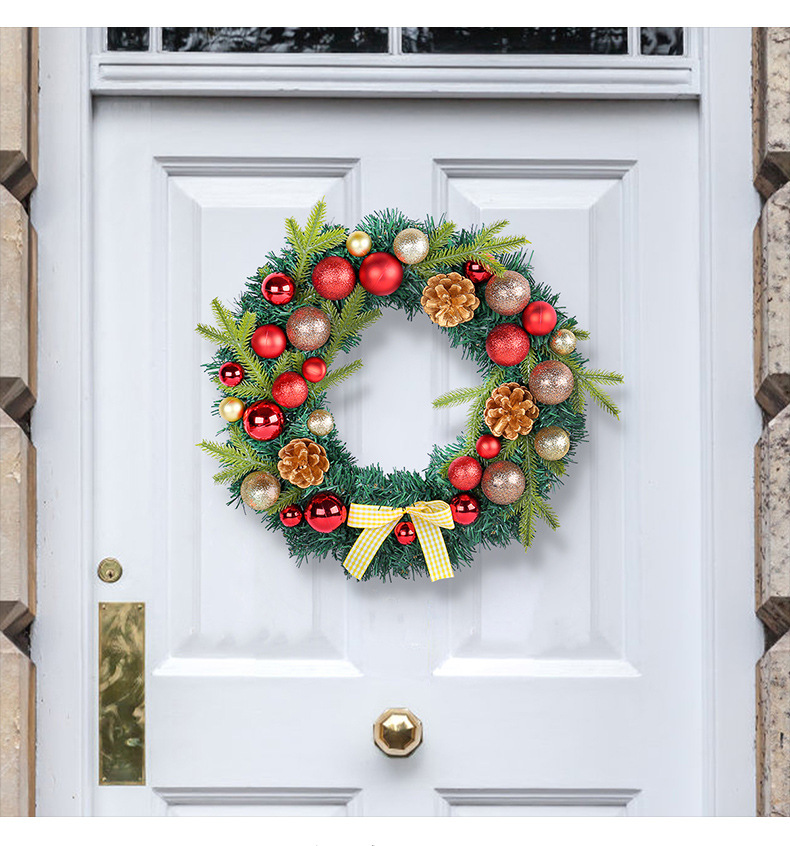 2024圣诞节装饰品松果圣诞球花环格子蝴蝶结花环家居气氛布置用品