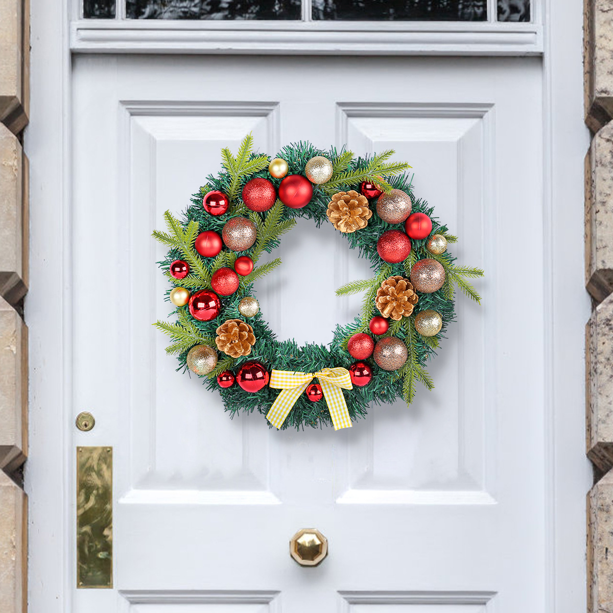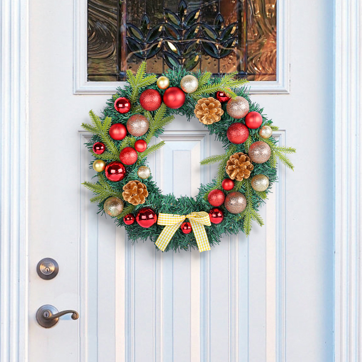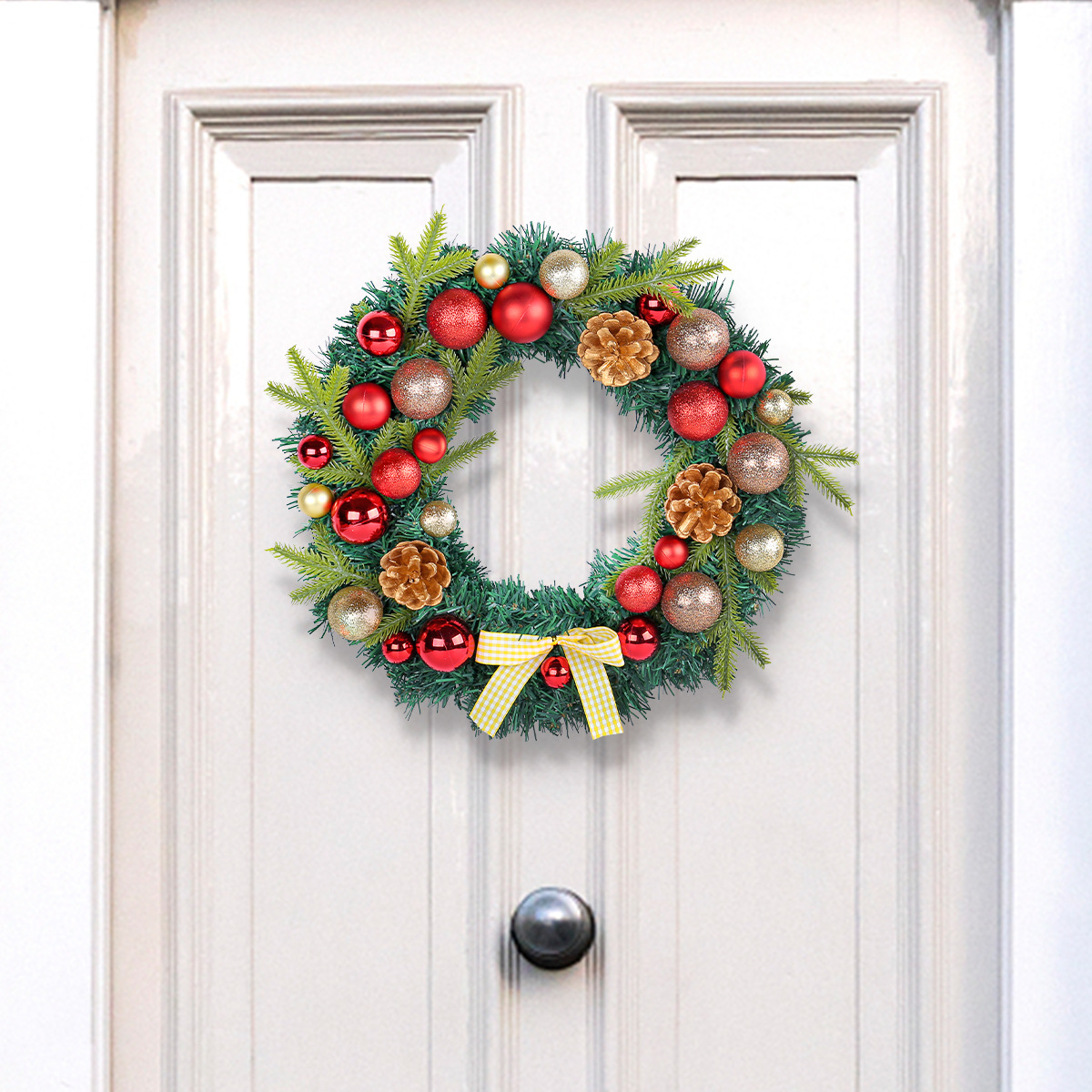 2024圣诞节装饰品松果圣诞球花环格子蝴蝶结花环家居气氛布置用品