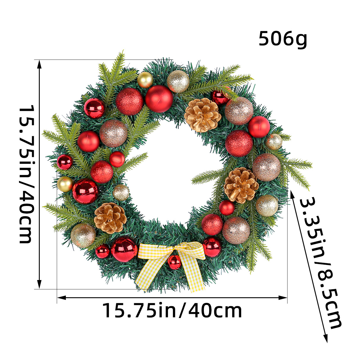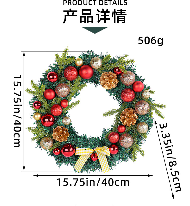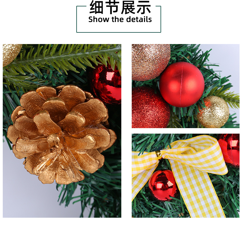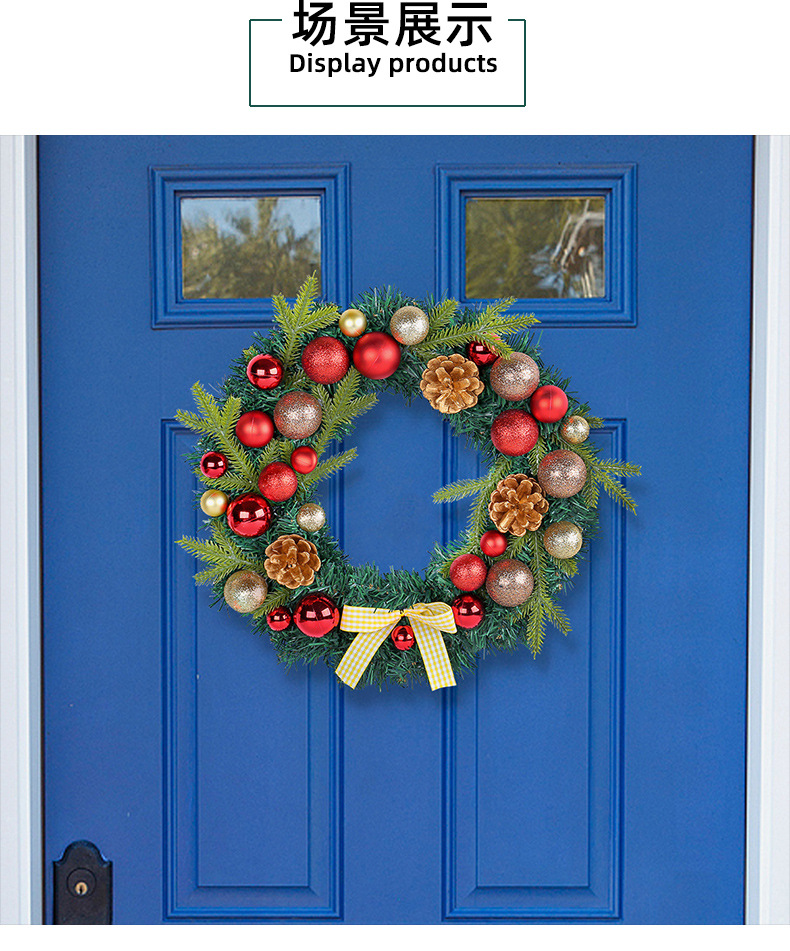 2024圣诞节装饰品松果圣诞球花环格子蝴蝶结花环家居气氛布置用品 投诉