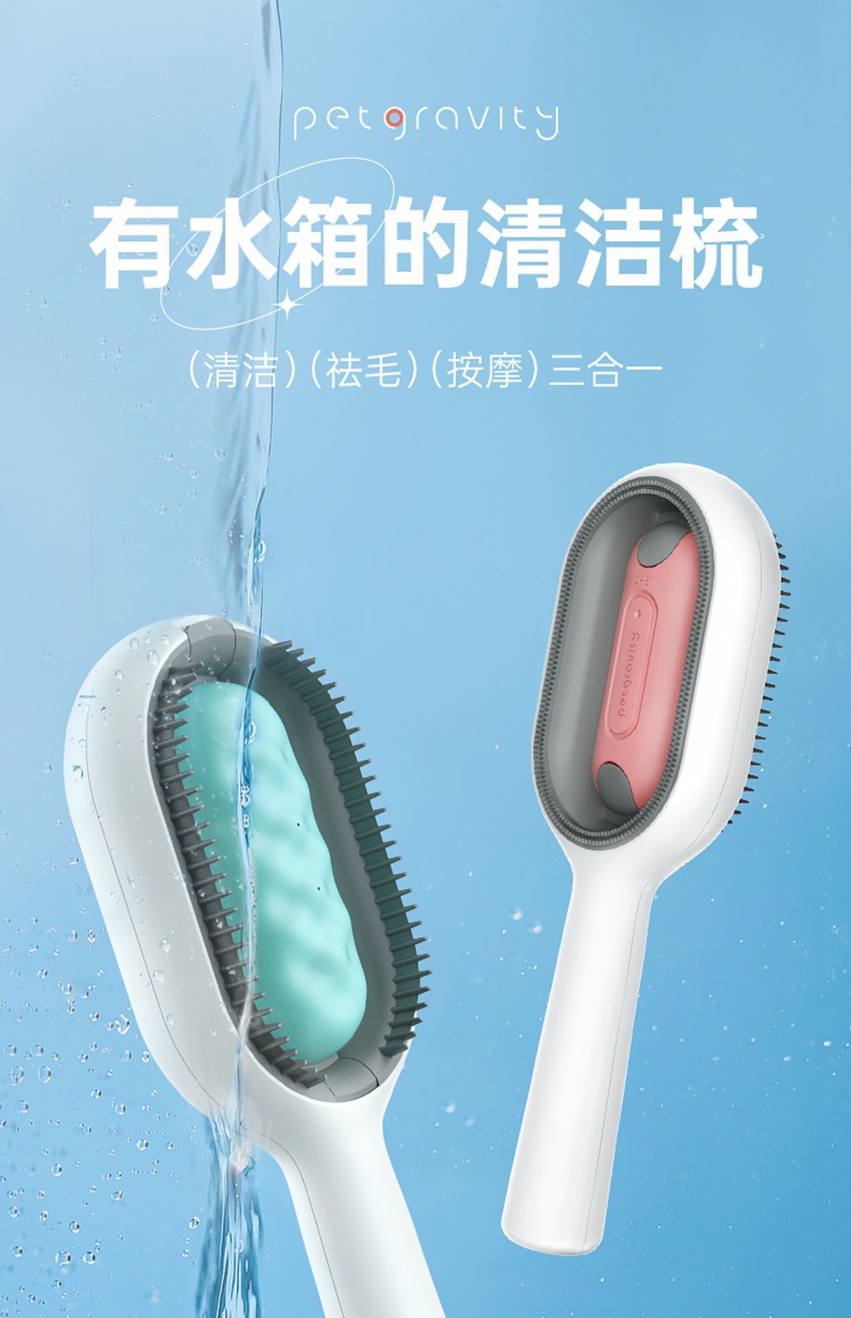 注水款宠物清洁祛毛梳猫咪免洗湿巾梳子粘毛器狗狗去浮毛猫犬通用