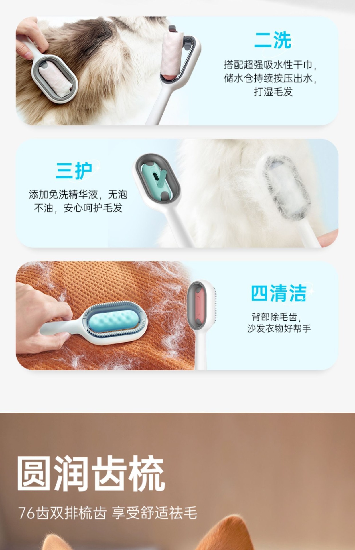 注水款宠物清洁祛毛梳猫咪免洗湿巾梳子粘毛器狗狗去浮毛猫犬通用 投诉