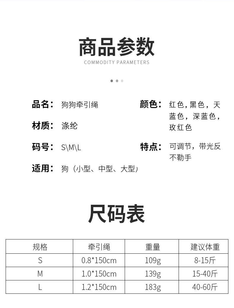 亚马逊狗狗牵引绳尼龙反光圆绳防爆冲宠物狗绳中大型犬狗链子批发 投诉