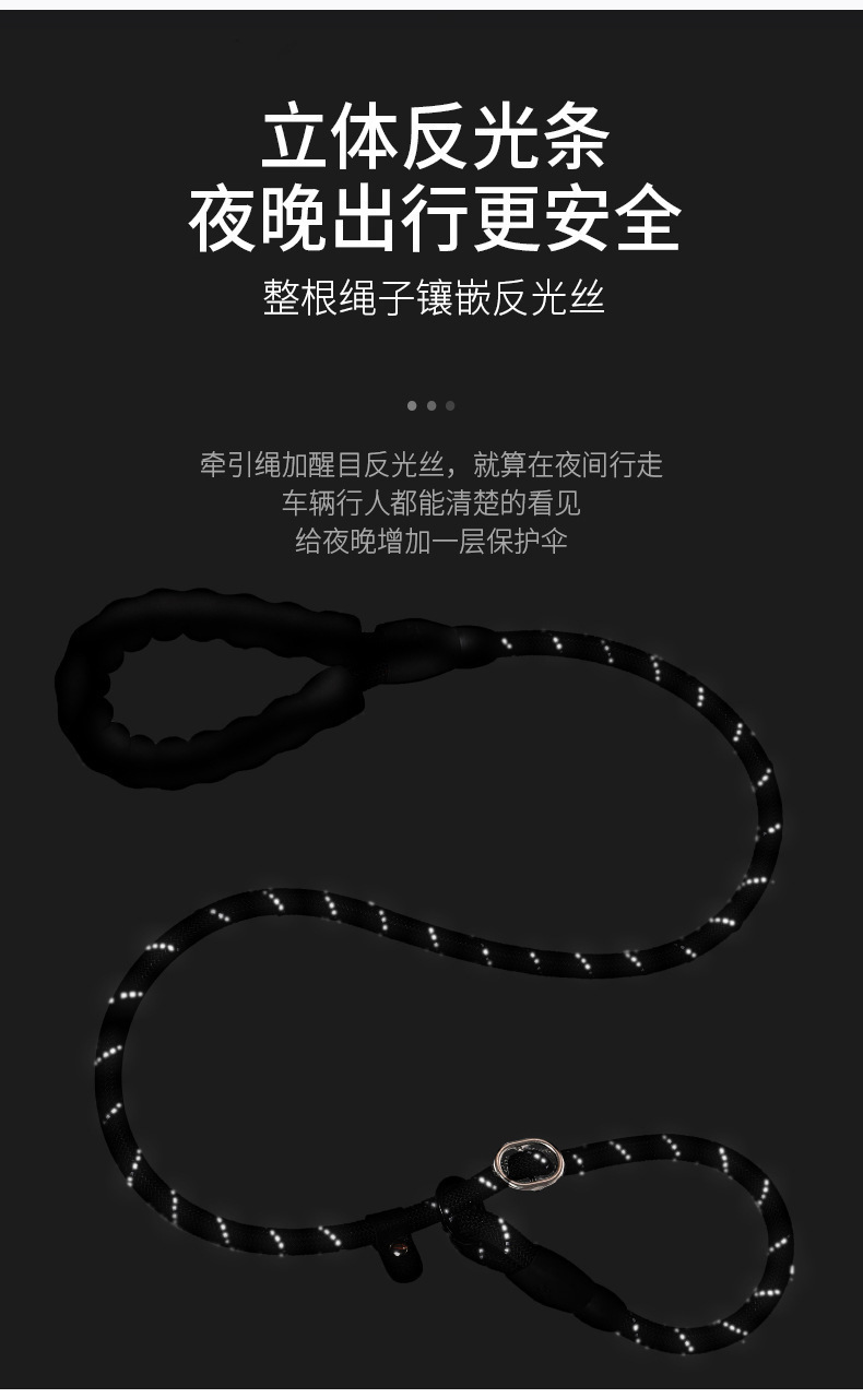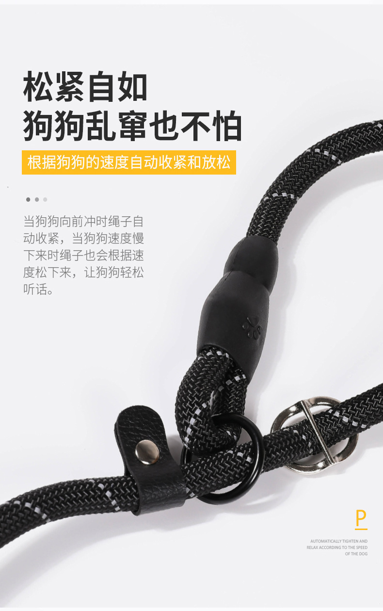 亚马逊狗狗牵引绳尼龙反光圆绳防爆冲宠物狗绳中大型犬狗链子批发