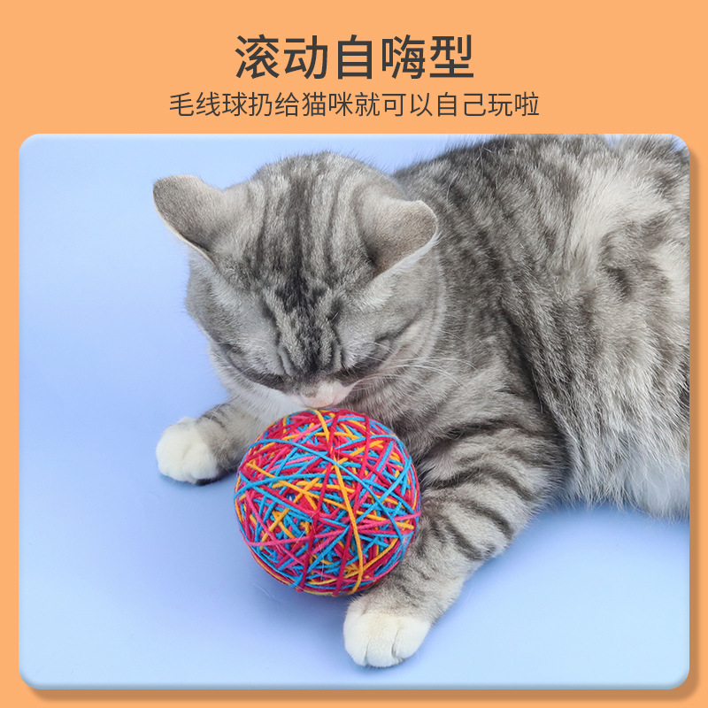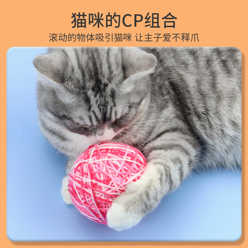 猫玩具发声球逗猫球猫咪自嗨球用品剑麻毛线球猫线团球带铃铛6