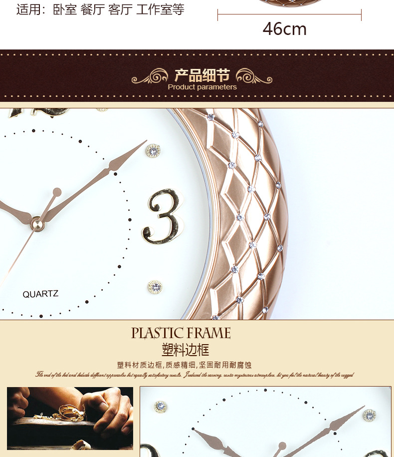 产品类别: 挂钟 品牌: 俊馨 是否进口: 否 型号: 115 是否专利货源: 否 加工定制: 是 加印LOGO: 不可以 是否双面: 单面 风格: 轻奢 外观造型: 长方形 重量: 3.0 kg/个
