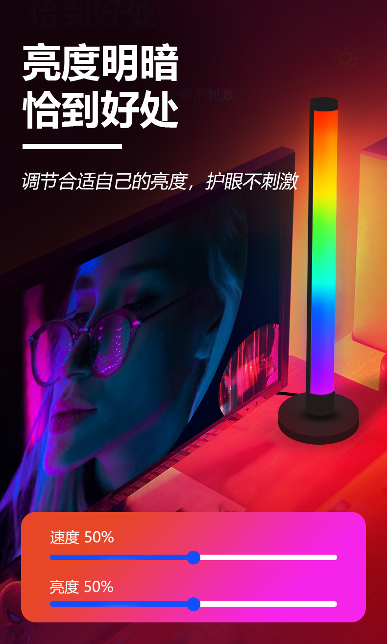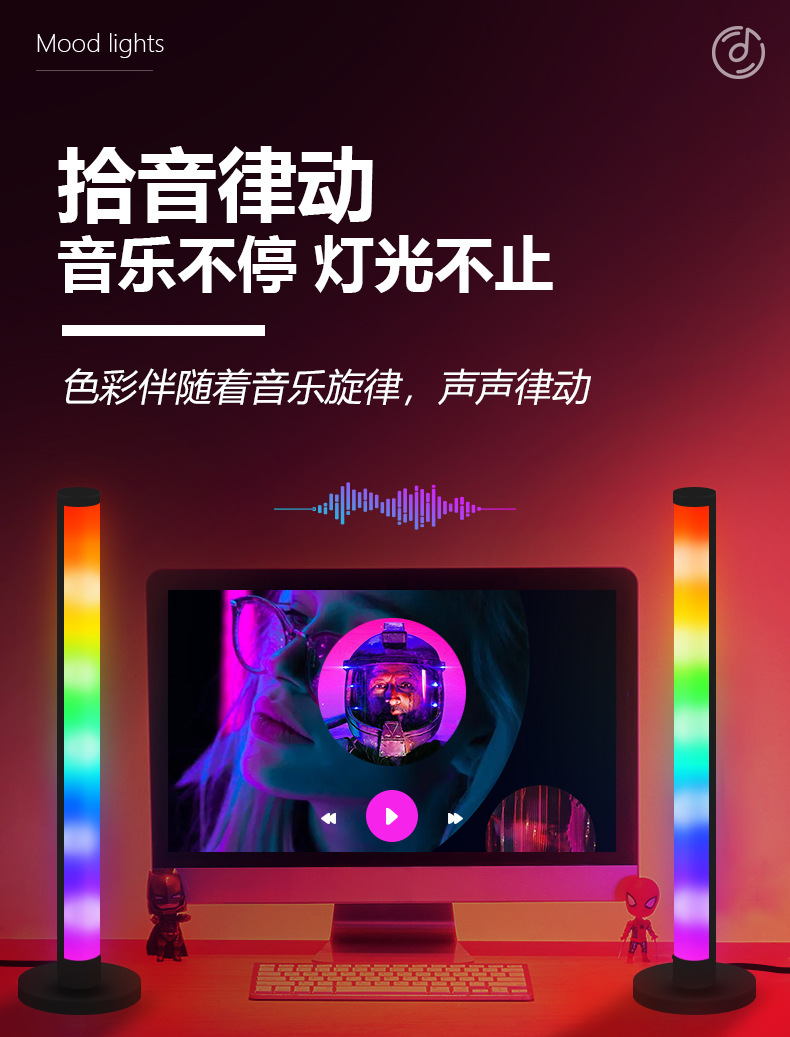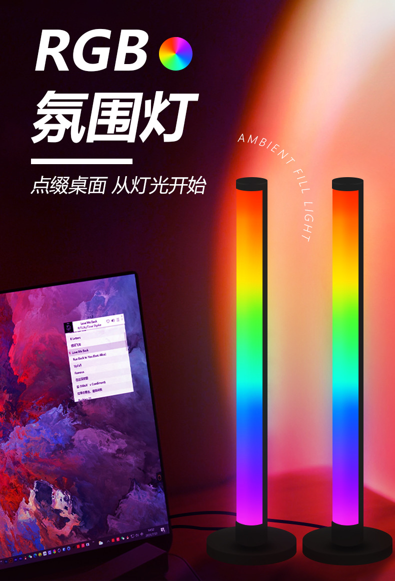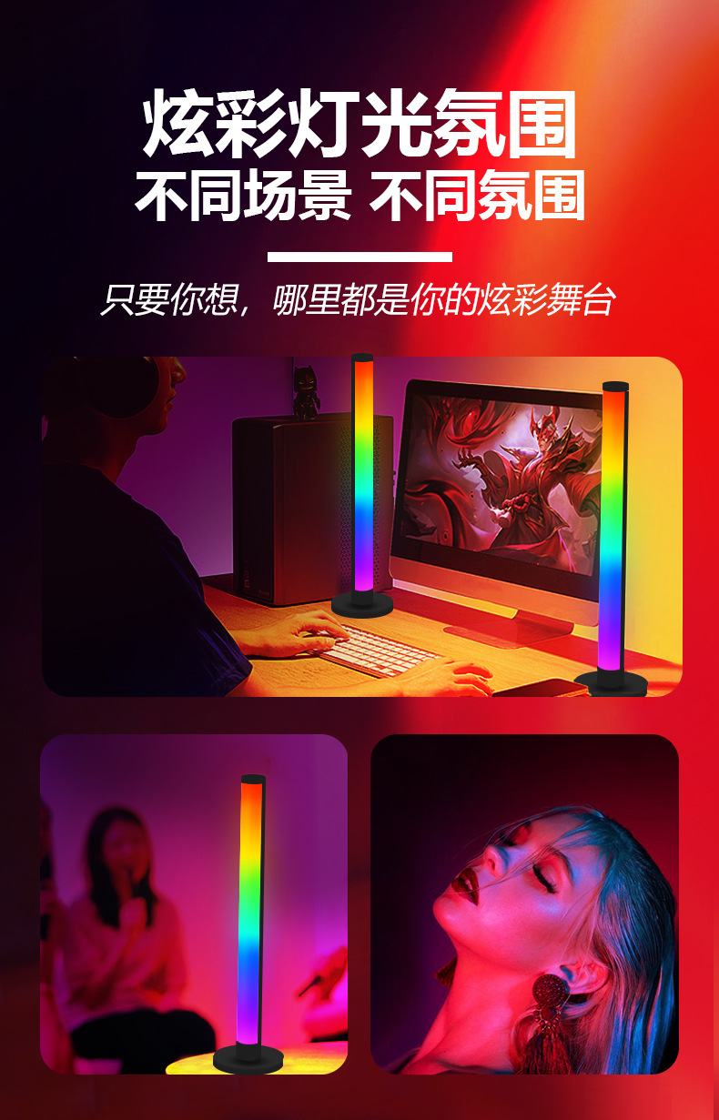 现货LED桌面焕彩拾音灯电竞桌面网红音乐节奏灯RGB桌面氛围灯