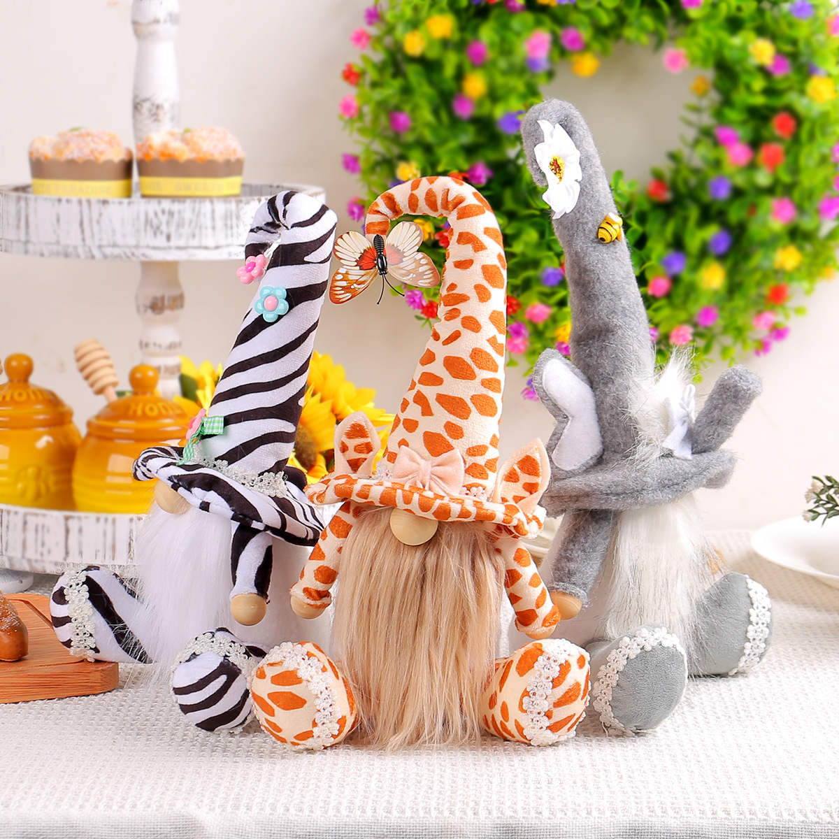 新款动物鲁道夫公仔坐姿摆件节日可爱斑马大象无脸娃娃橱窗装饰品