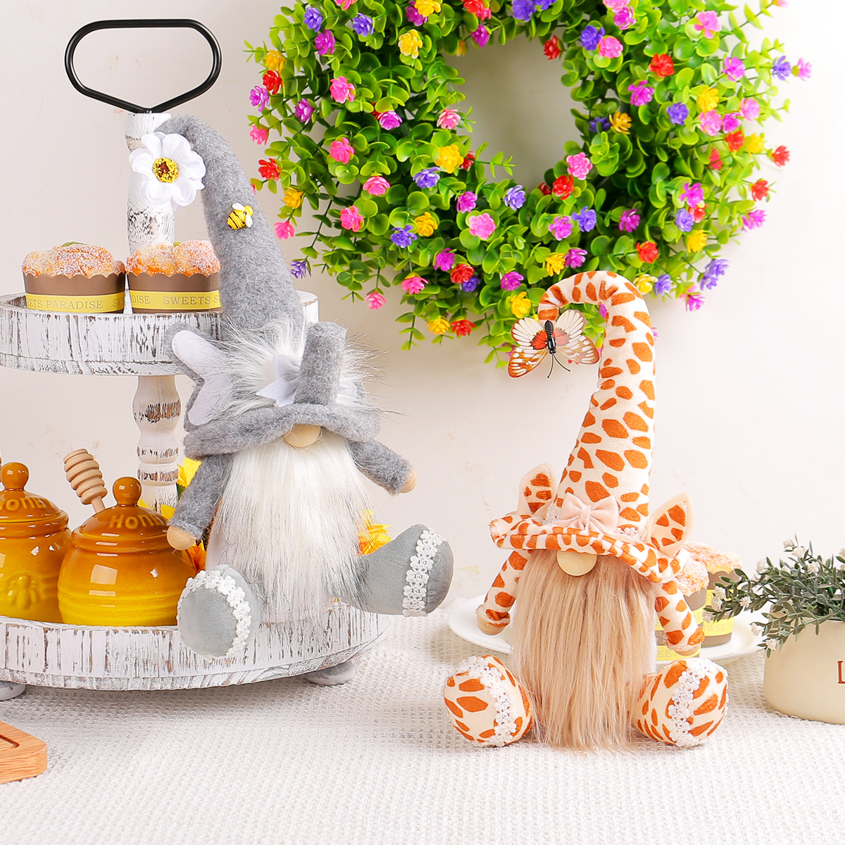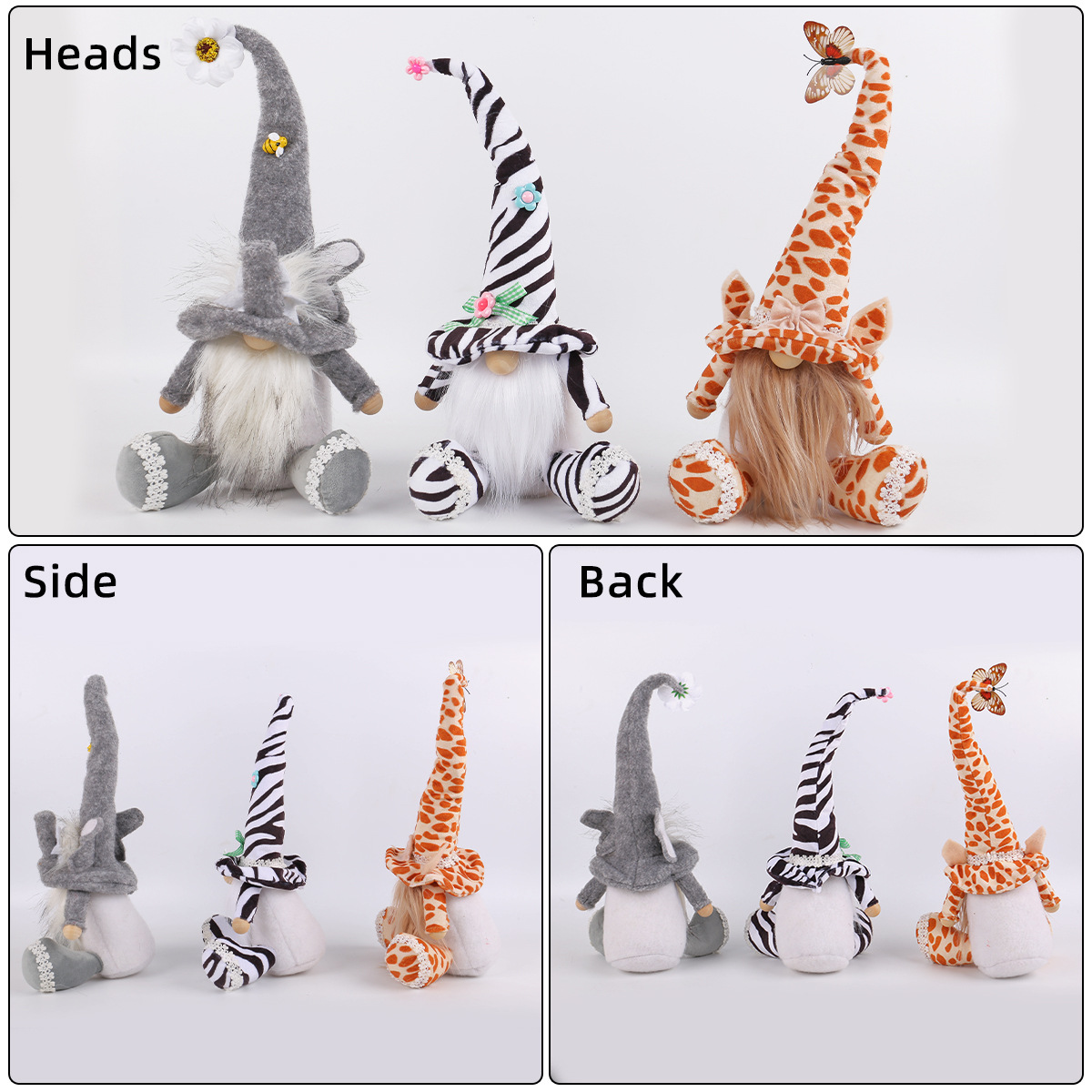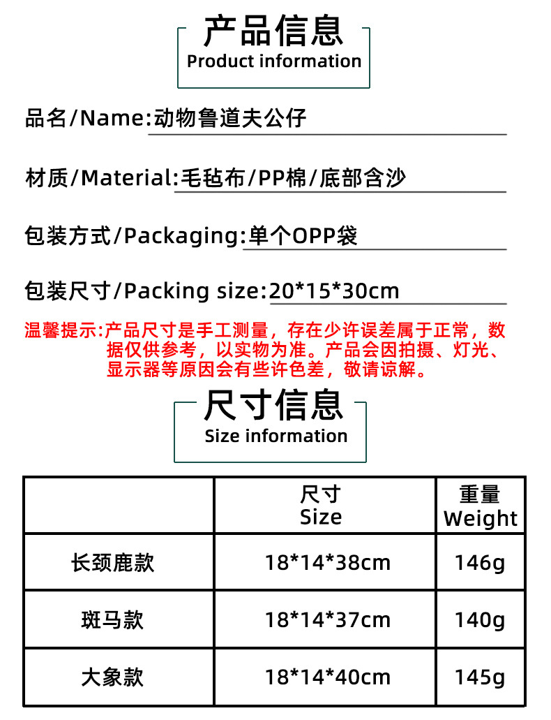 新款动物鲁道夫公仔坐姿摆件节日可爱斑马大象无脸娃娃橱窗装饰品 投诉