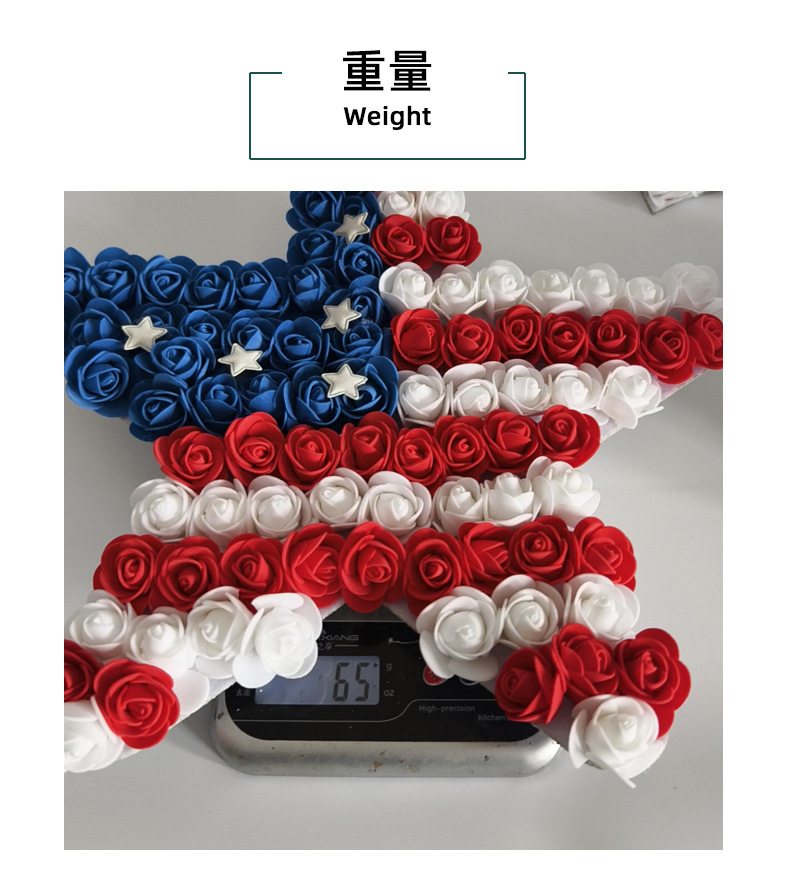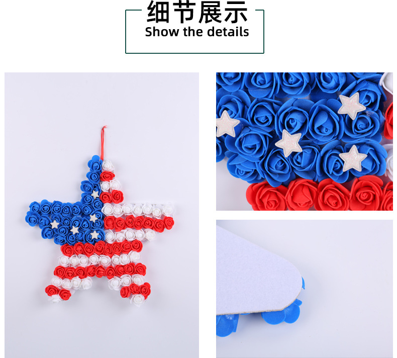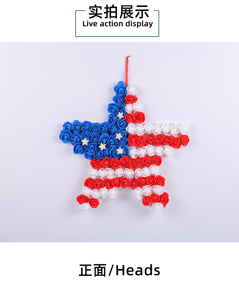 跨境美国独立日pu花五角星门挂 仿真红蓝白花环节庆庭院派对壁挂 投诉