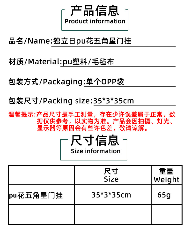 V3-10独立日pu花五角星门挂 ¥0 8387个可售