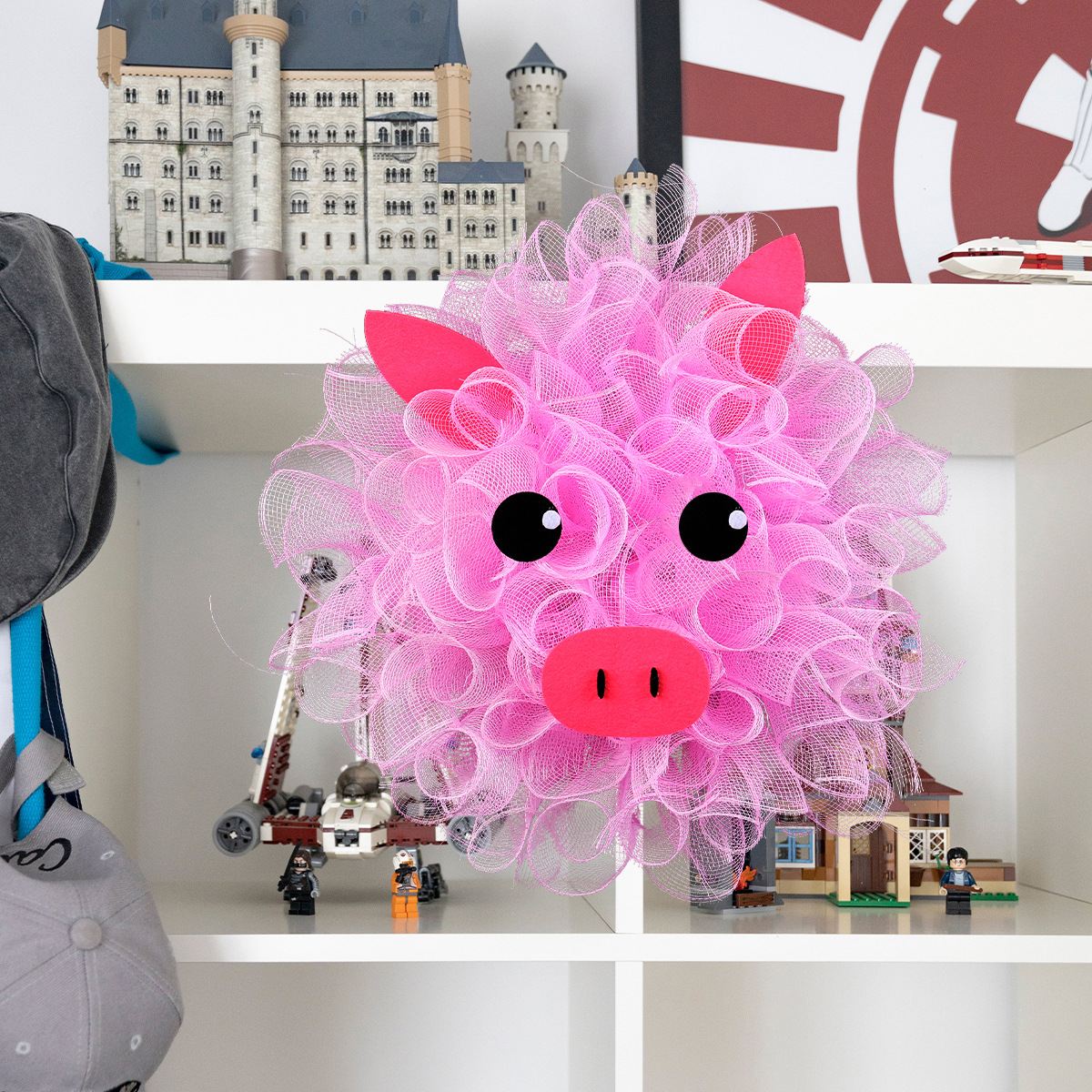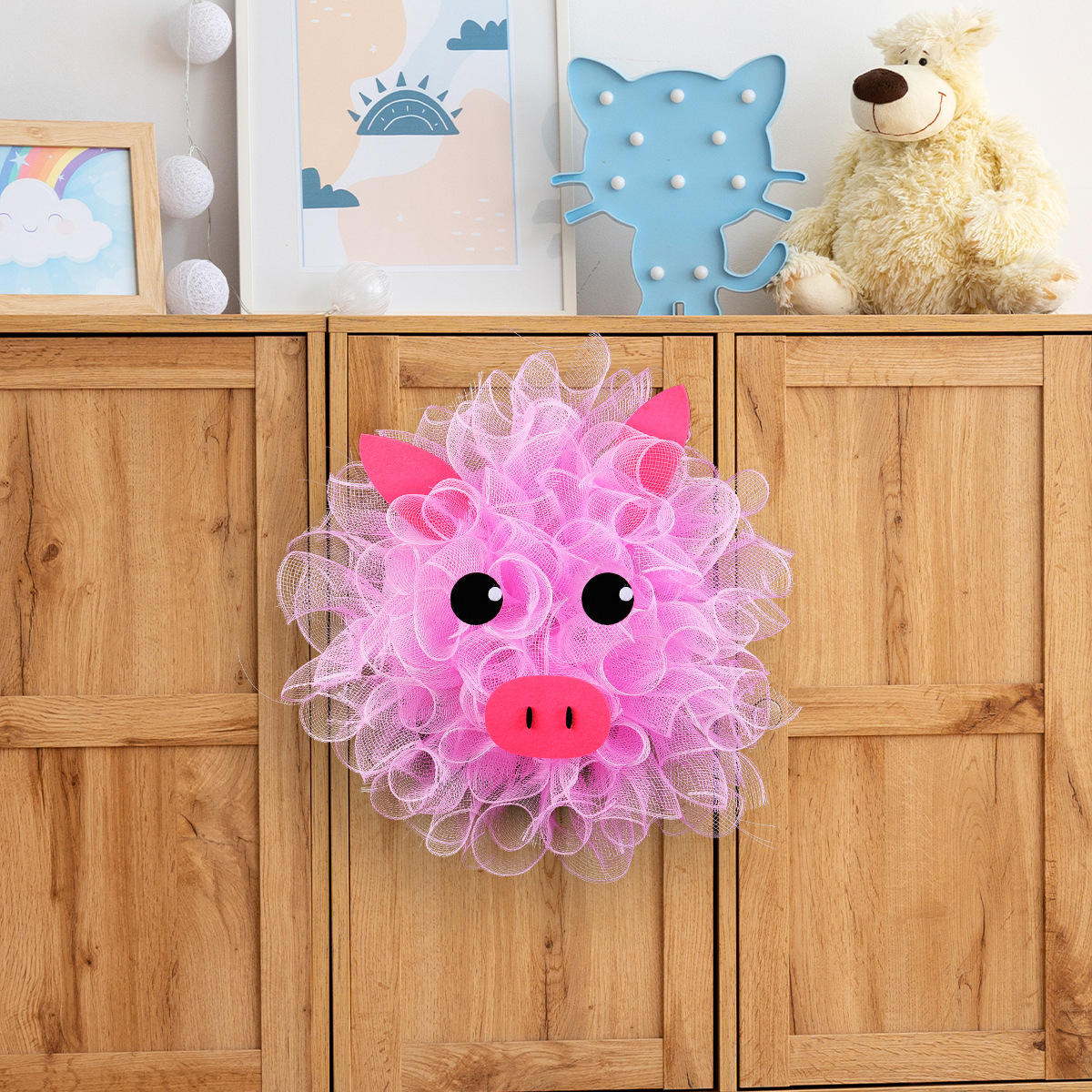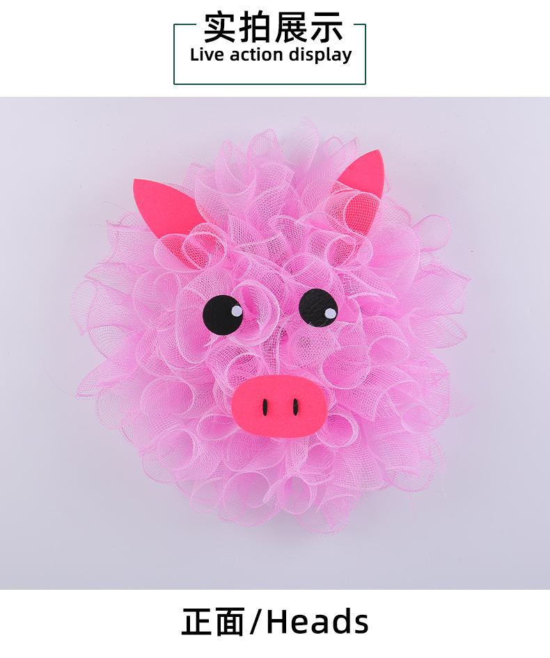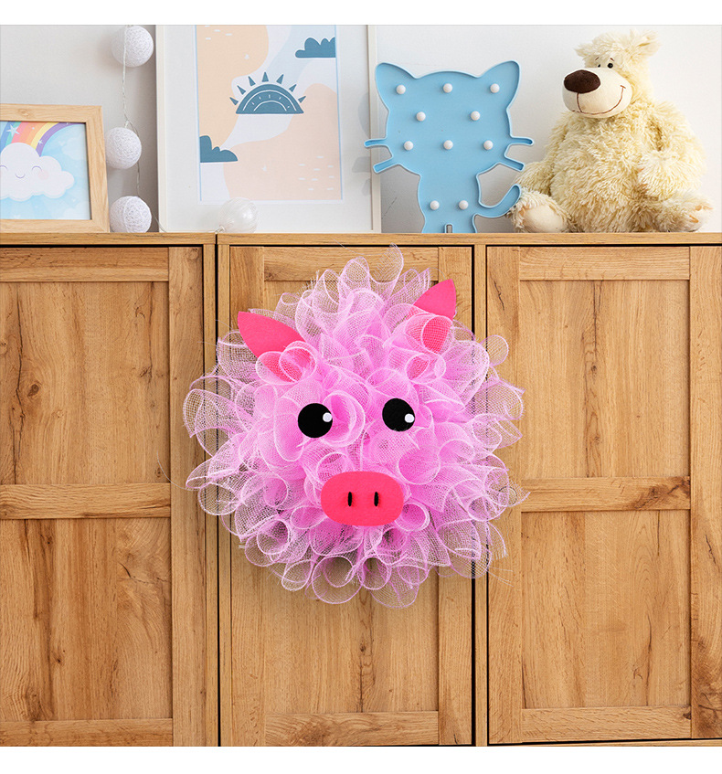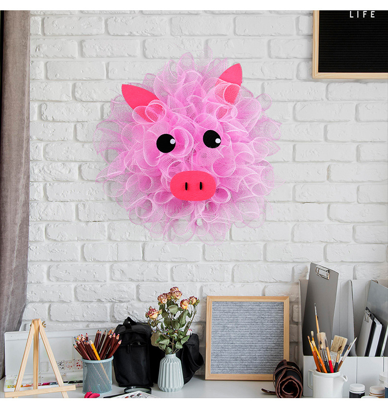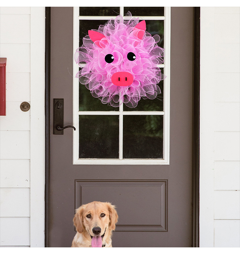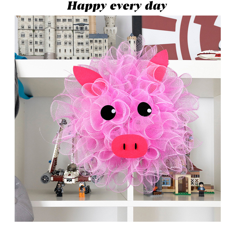 港之恋粉色小猪网纱花环 可爱装饰花环门窗壁挂家庭节日布置道具
