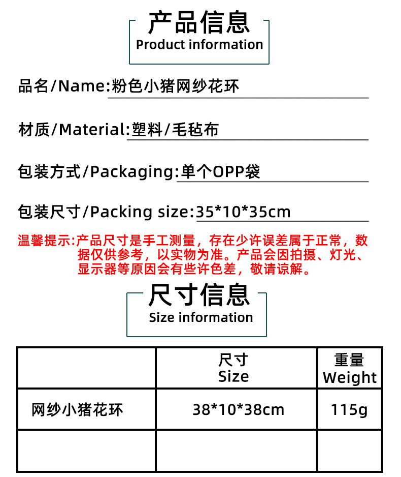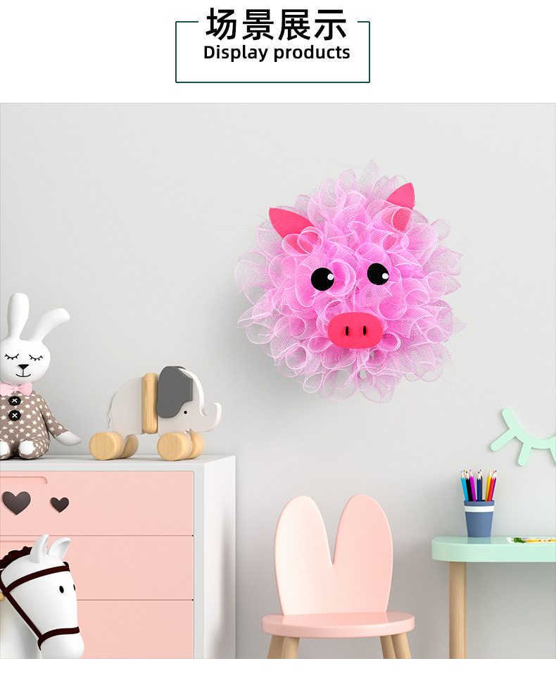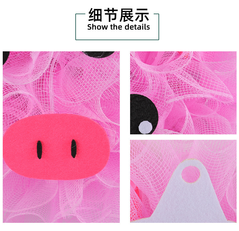 港之恋粉色小猪网纱花环 可爱装饰花环门窗壁挂家庭节日布置道具 投诉