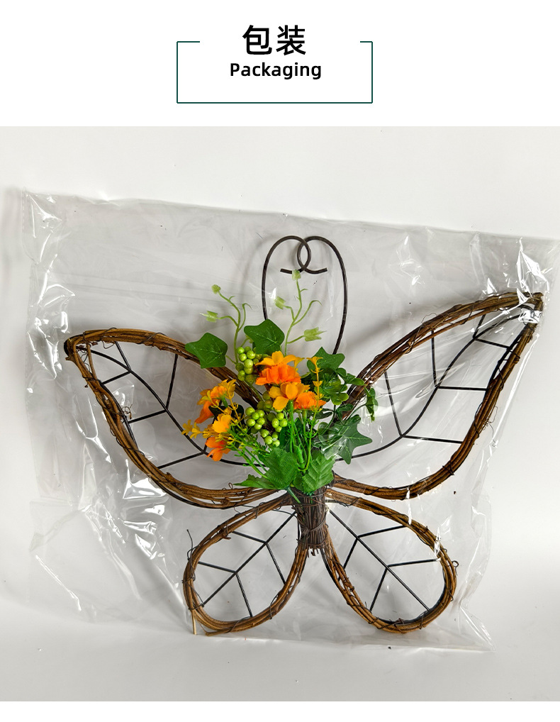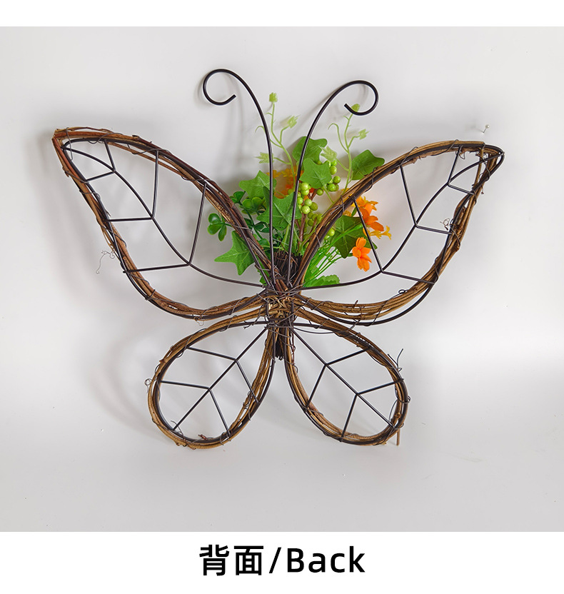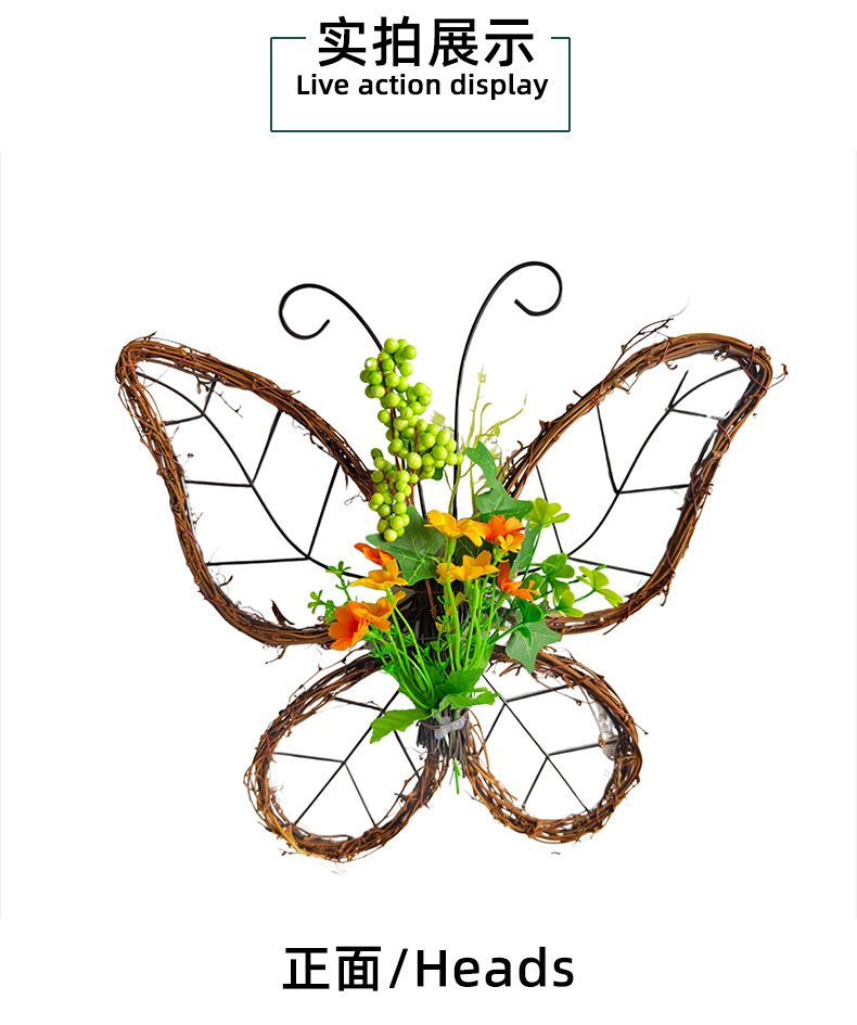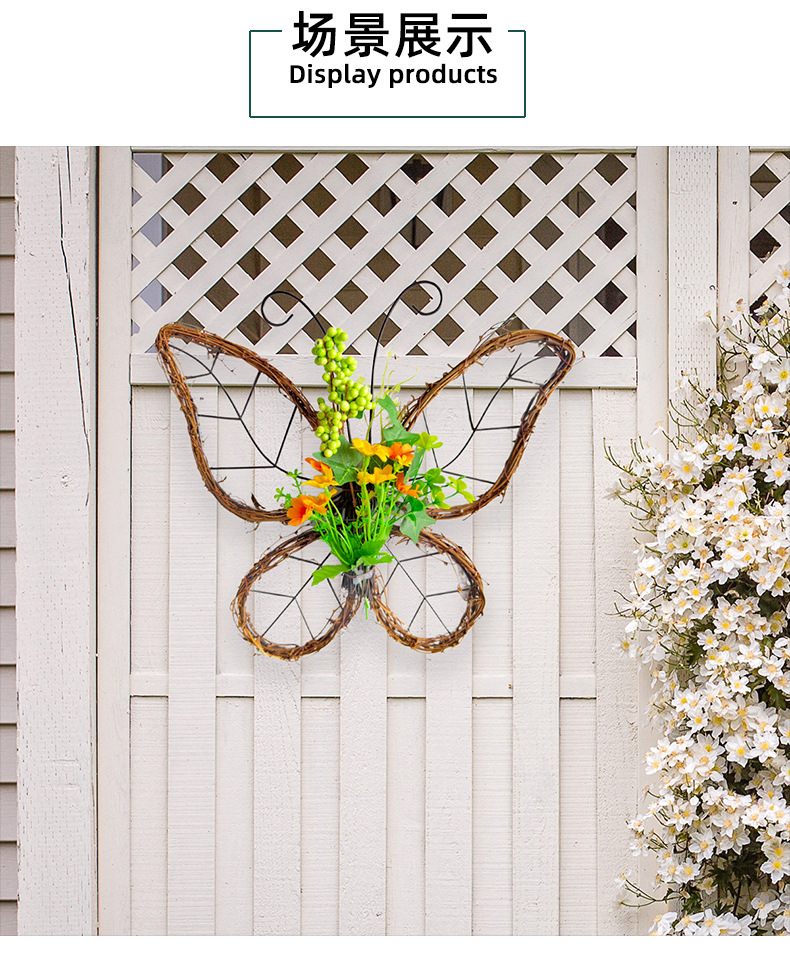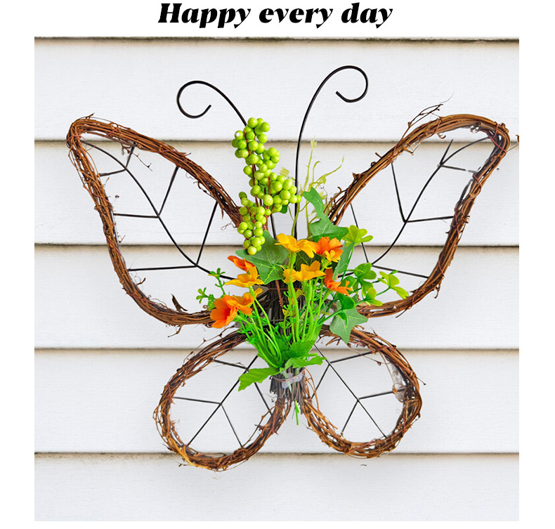 跨境枯枝蝴蝶花环门挂 春季仿真花铁艺藤圈门窗挂件家居派对装饰 投诉