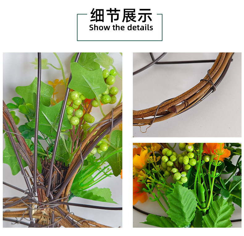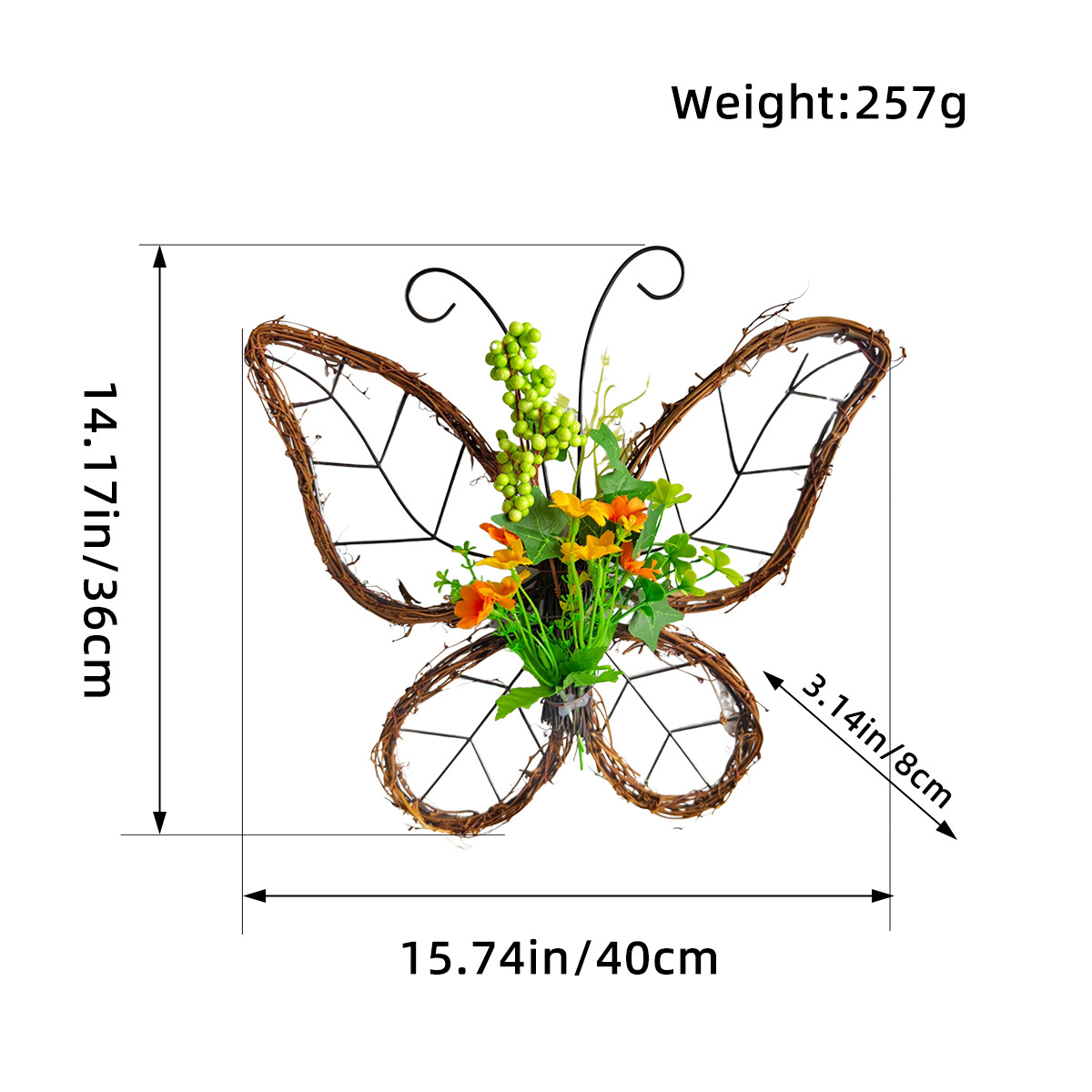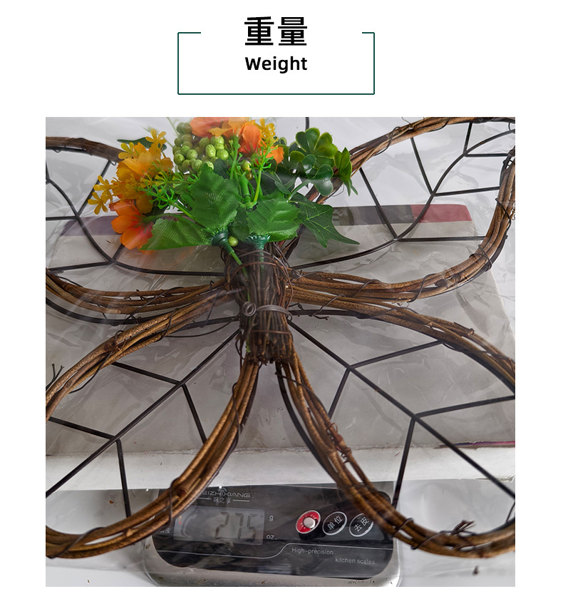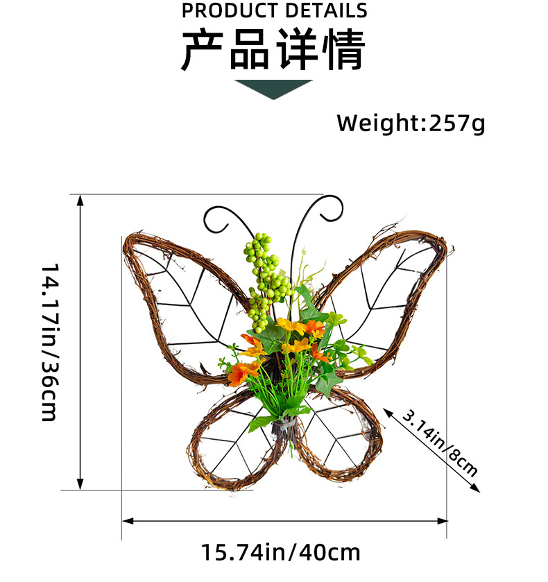 跨境枯枝蝴蝶花环门挂 春季仿真花铁艺藤圈门窗挂件家居派对装饰 投诉